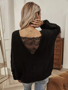 للنساء - سترة كبيرة الحجم بأكمام راجلان من الدانتيل المتباين