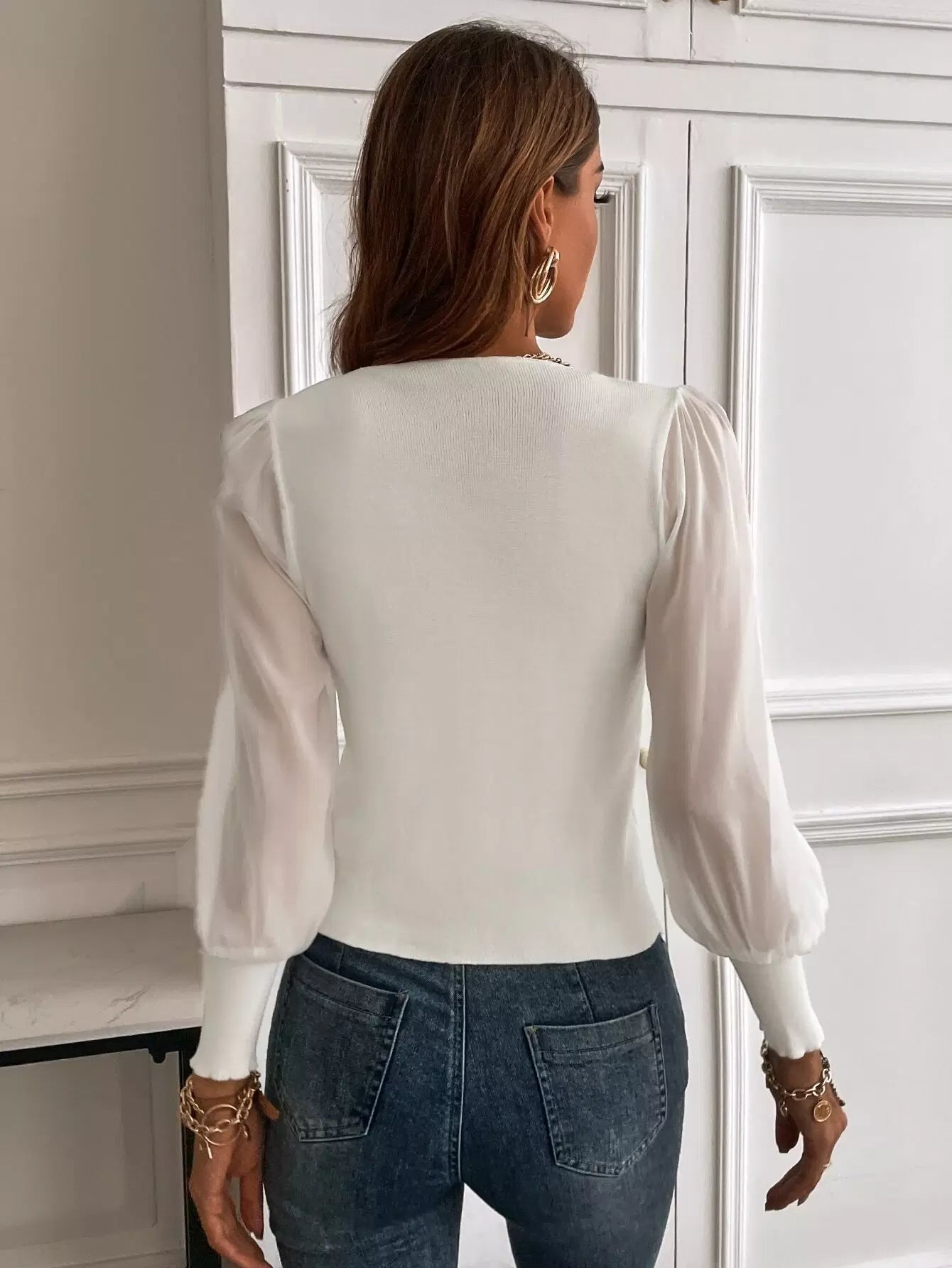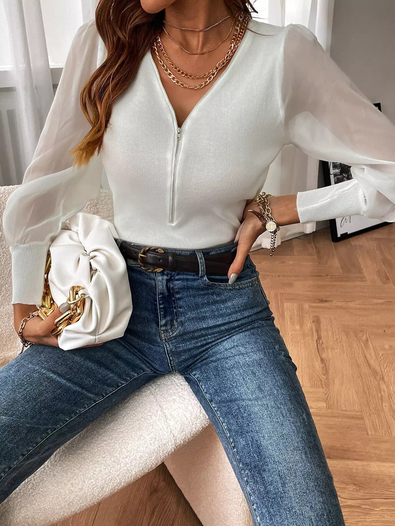 كنزة بأكمام بلون مغاير بأكمام نصف سحاب