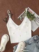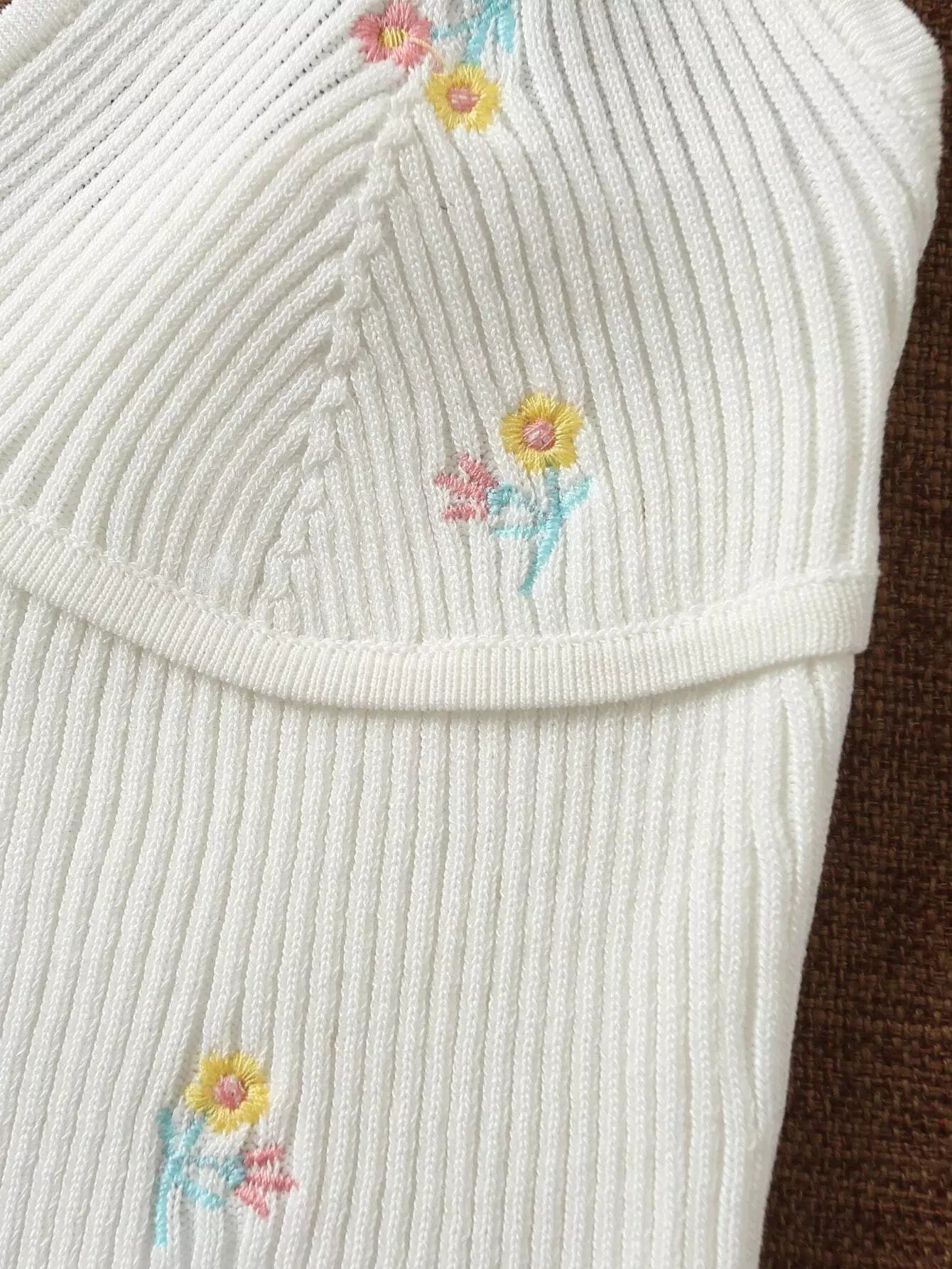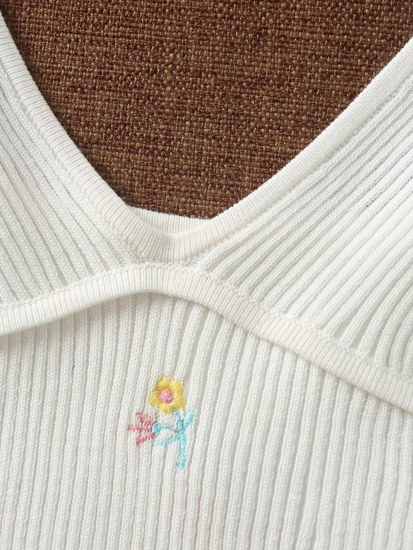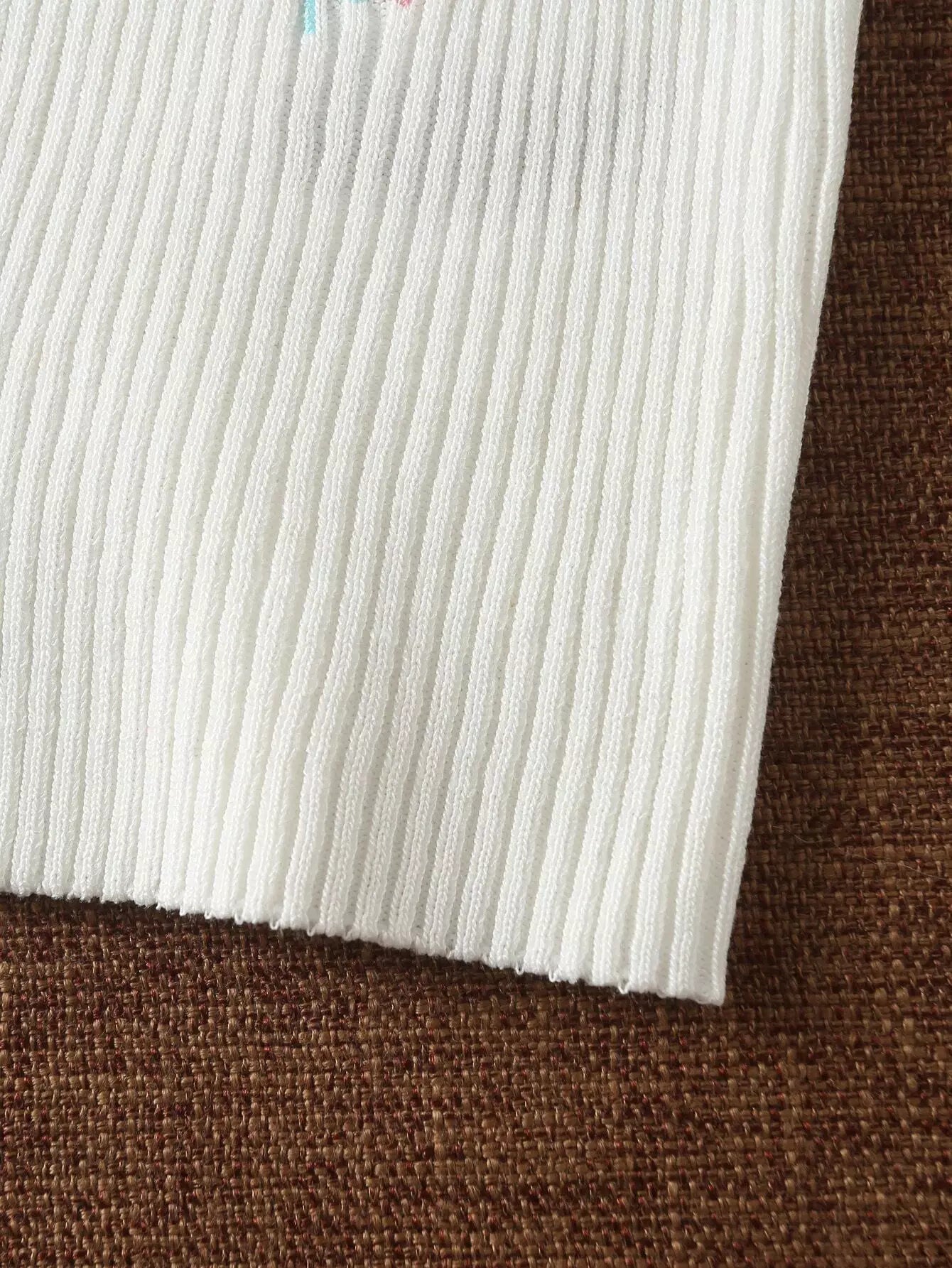 قميص قصير محبوك بنقشة زهرية مزركشة على شكل ضلع