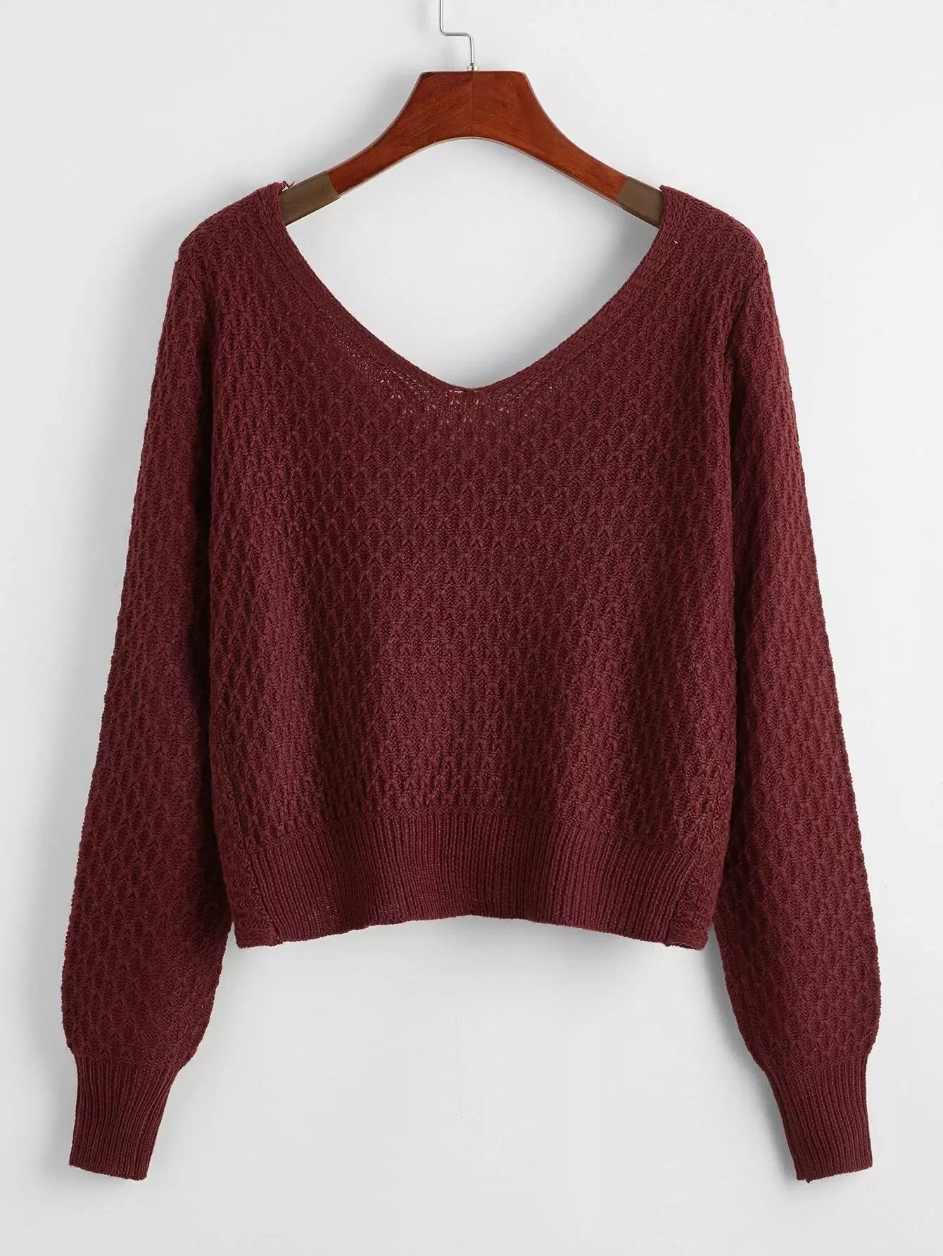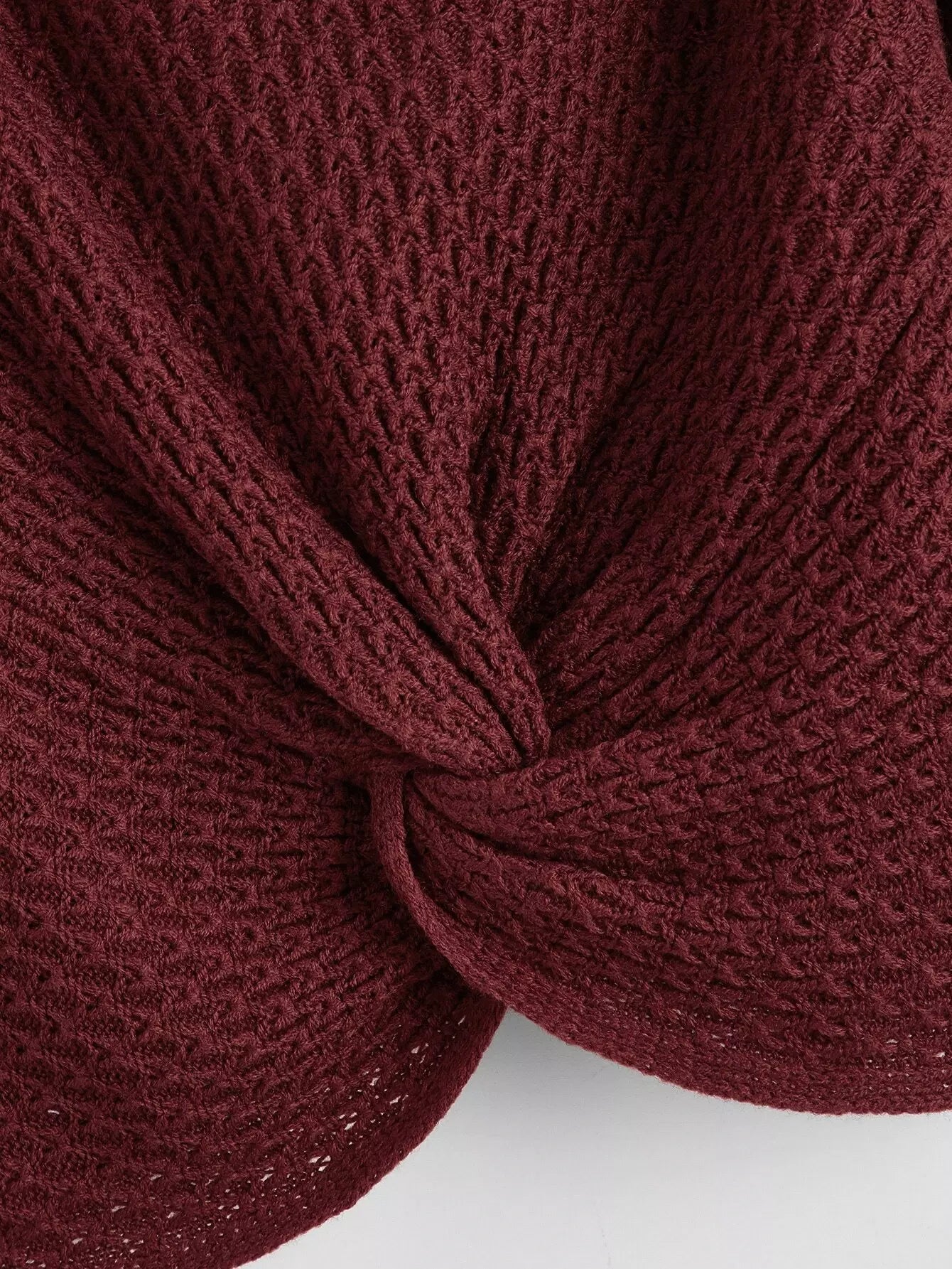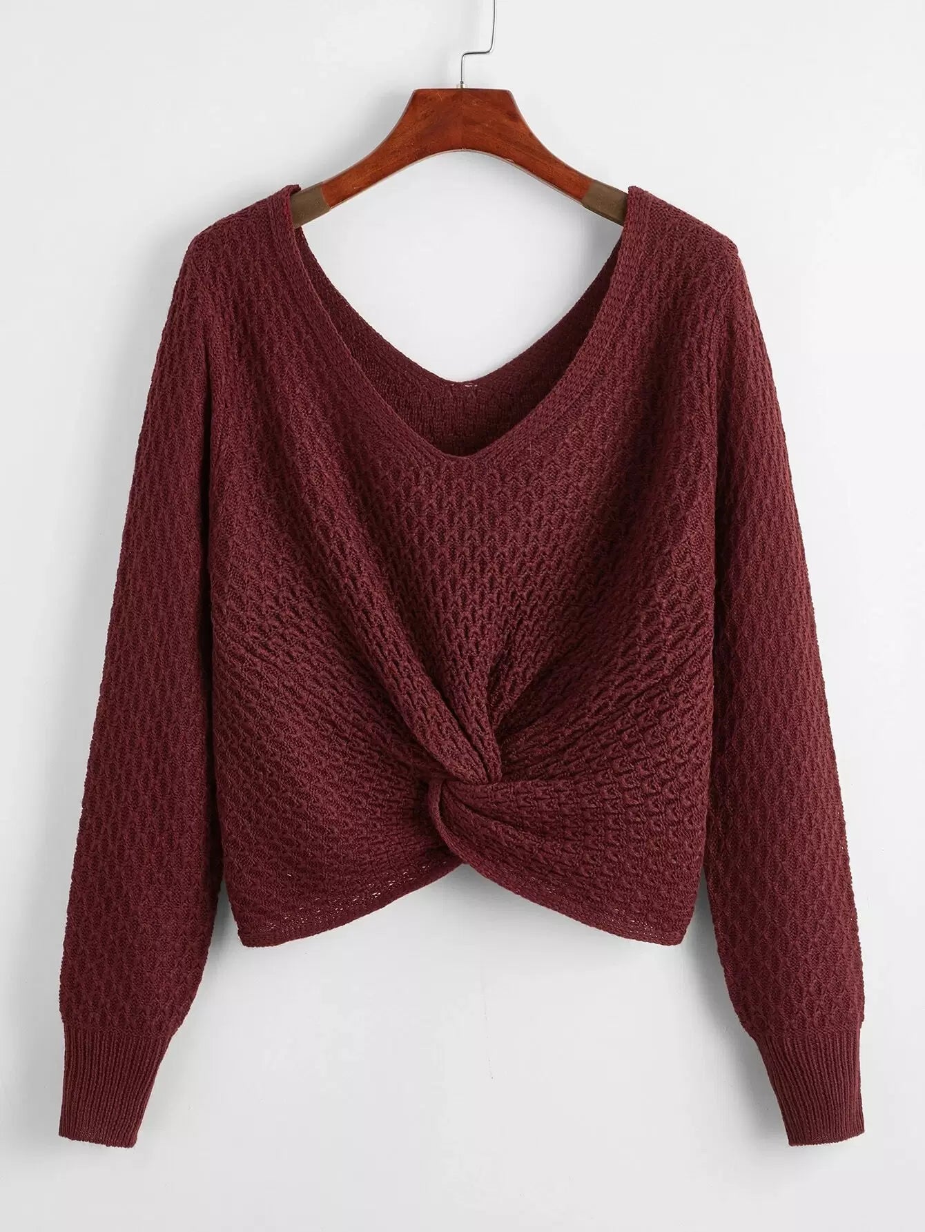 كنزة بياقة مزدوجة على شكل V بياقة أمامية ملتوية