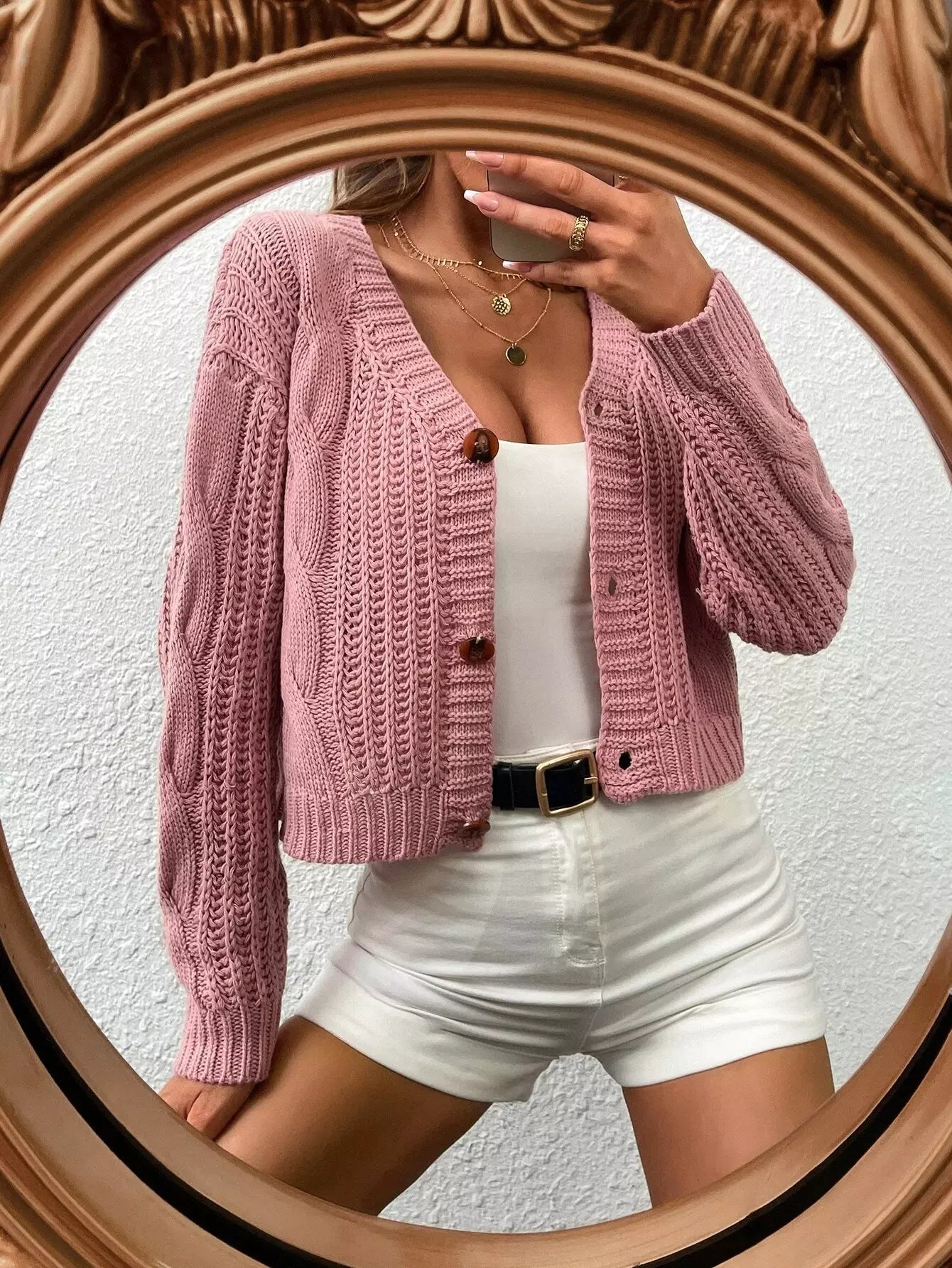 كارديجان صوفي منسدل الأكتاف محبوك بكابل محبوك
