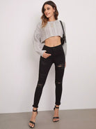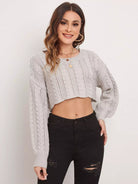 سترة منسدلة الكتفين محبوكة بكابل محبوكة قصيرة
