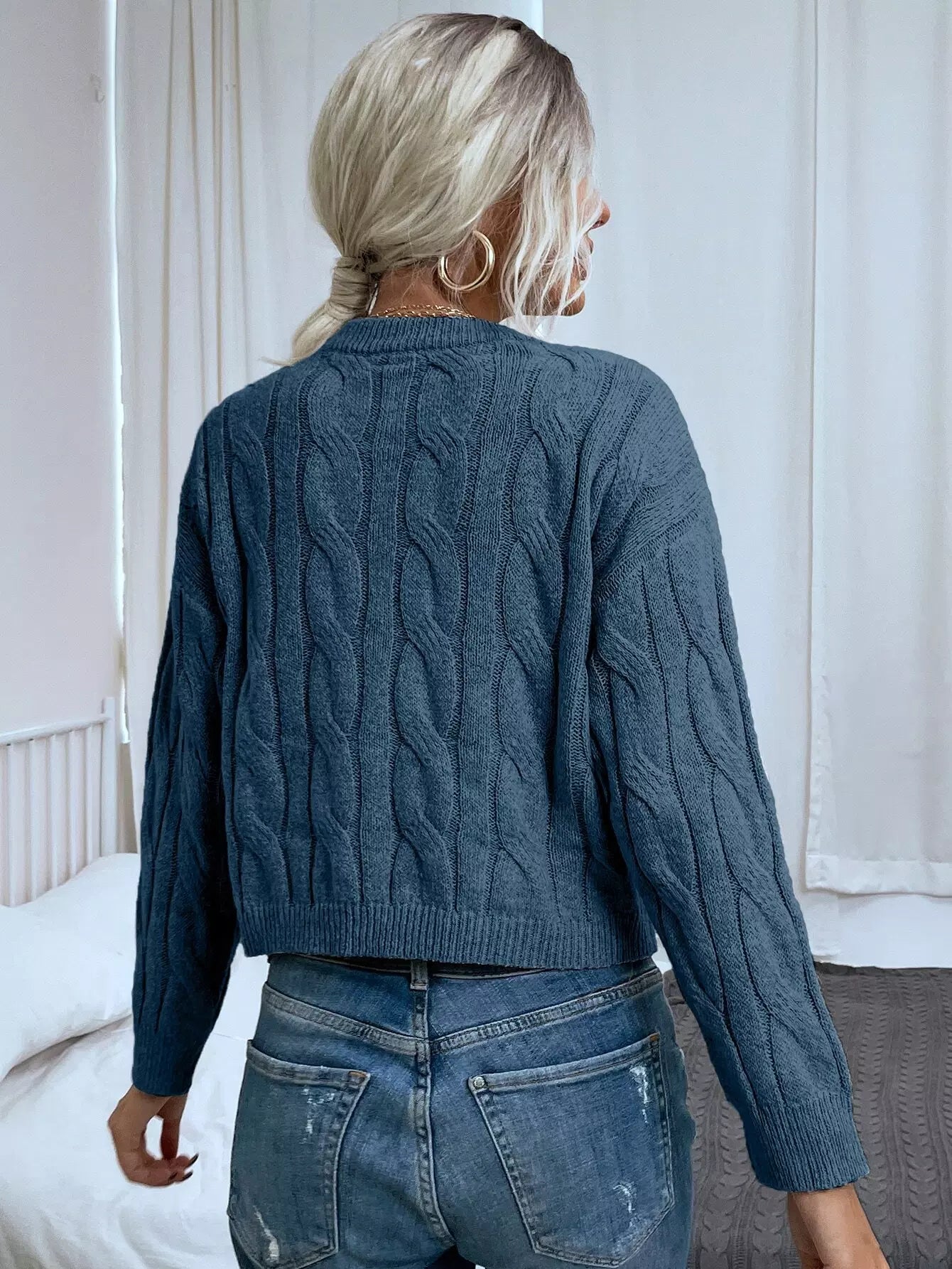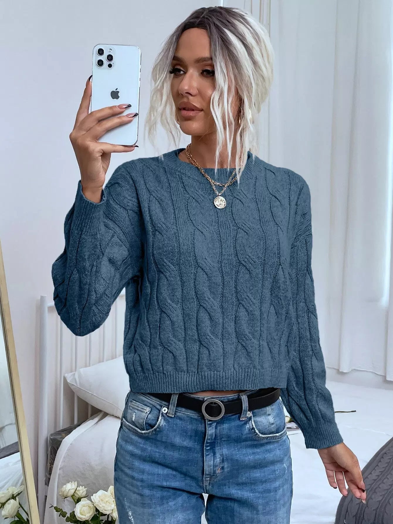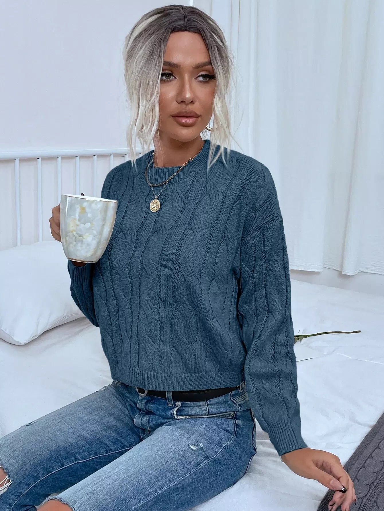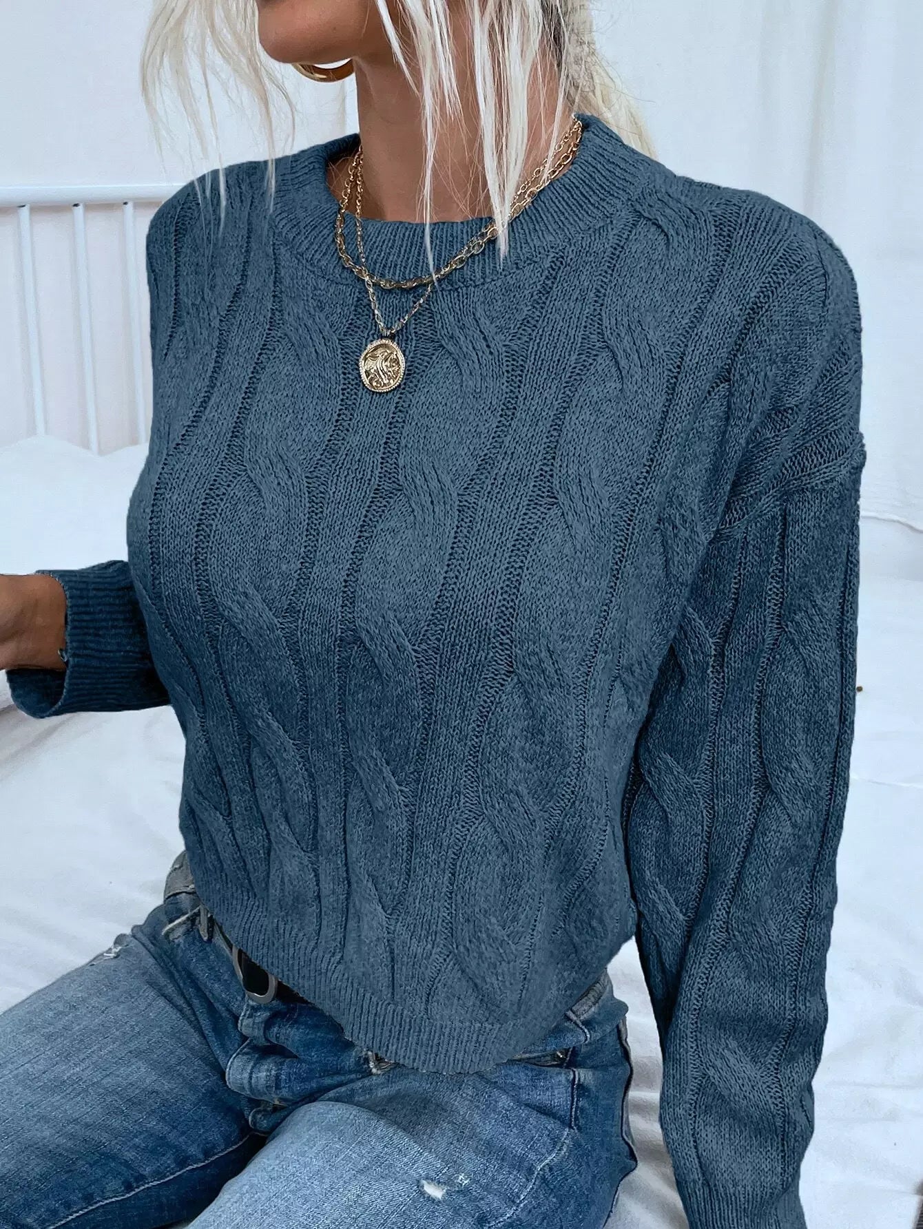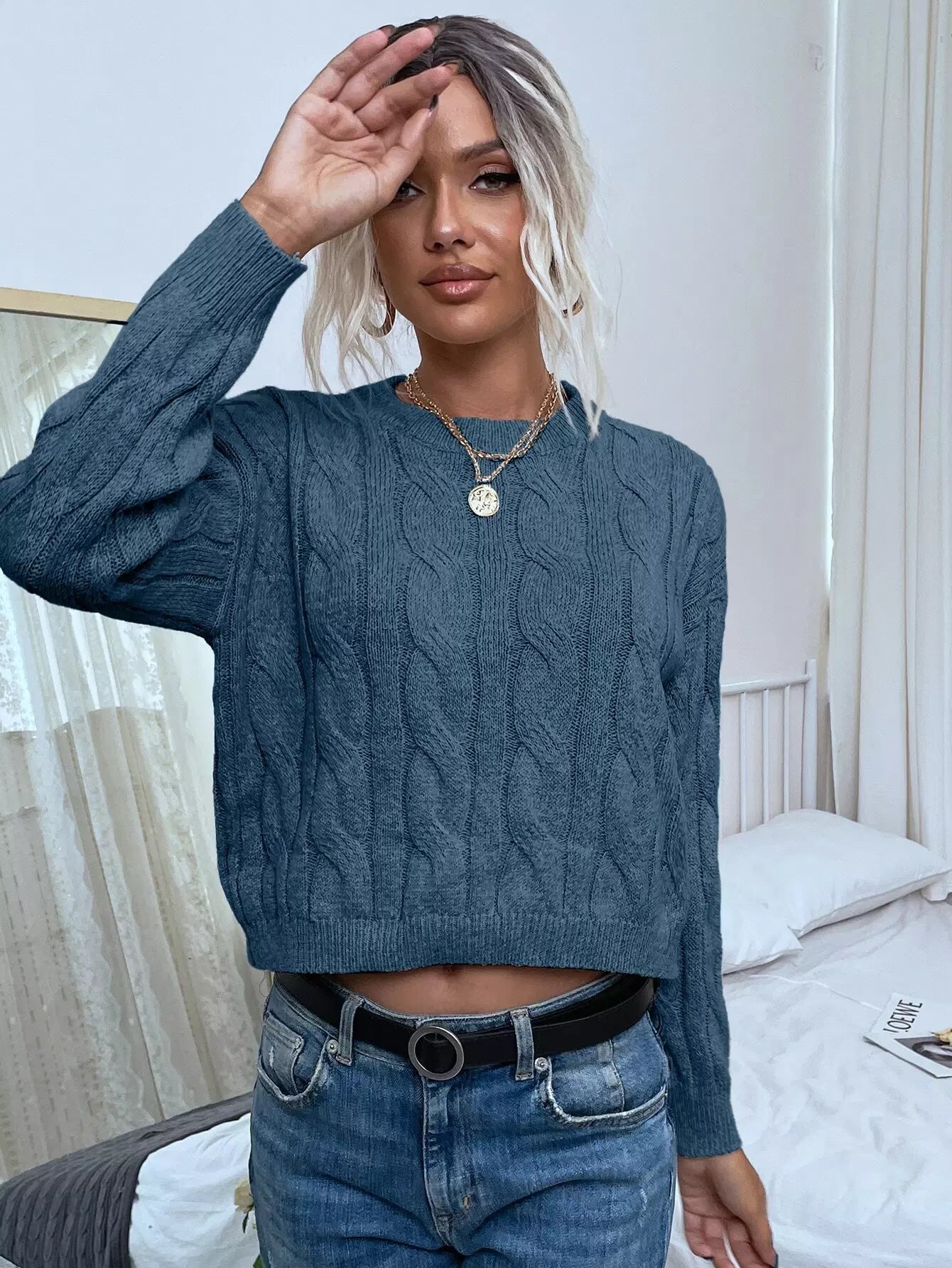 كنزة منسدلة الكتفين محبوكة بكابل محبوكة