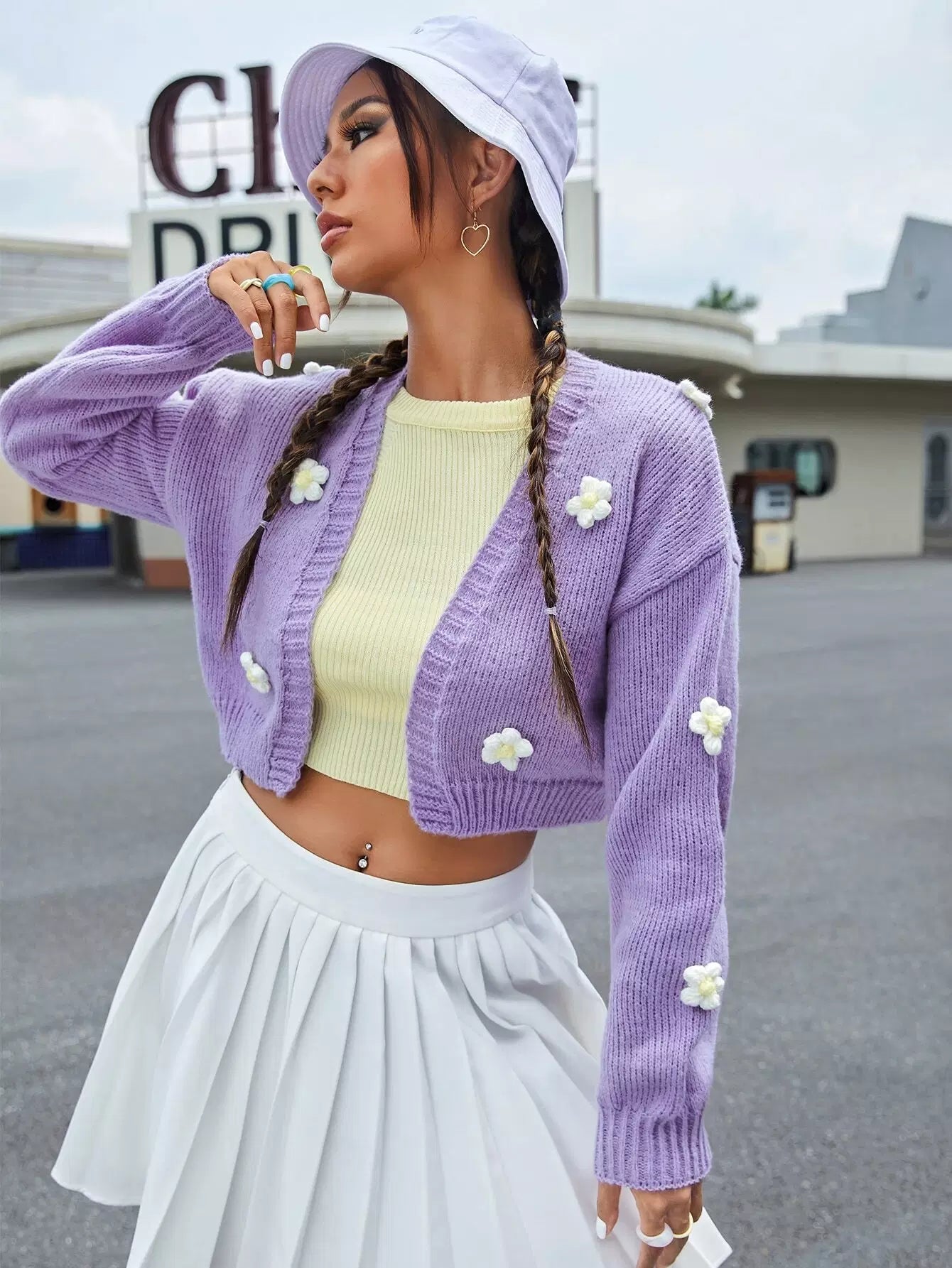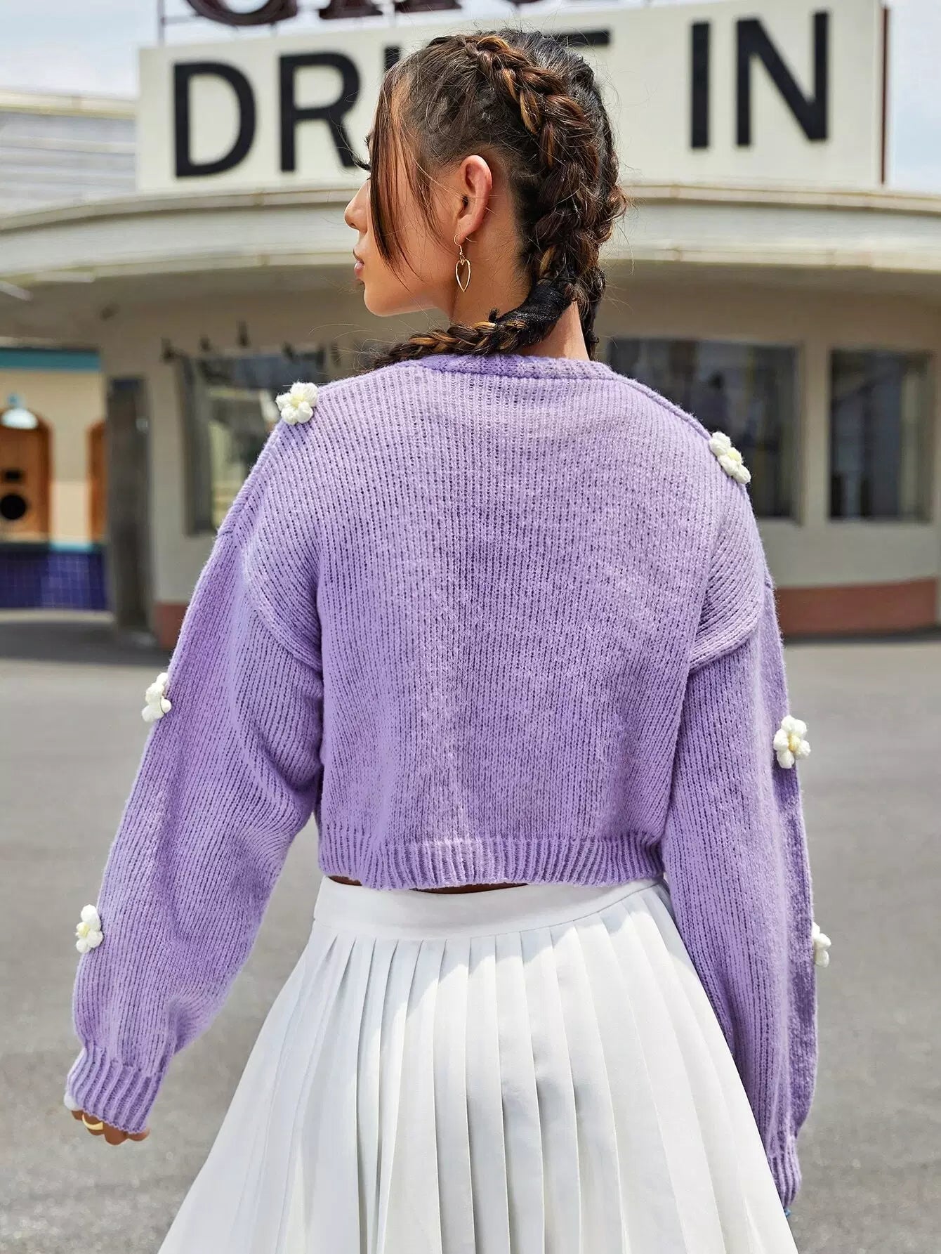 كارديجان مطرز بزخارف زهور منسدلة على الأكتاف