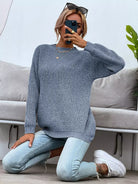 كنزة منسدلة الكتفين محبوكة منسدلة الكتفين