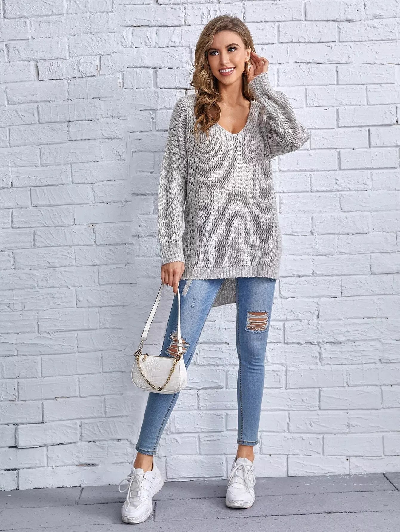 النساء - سترة منسدلة الكتف ومقسمة عالية ومنخفضة