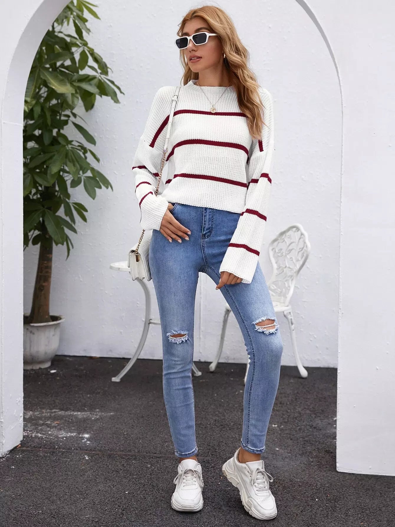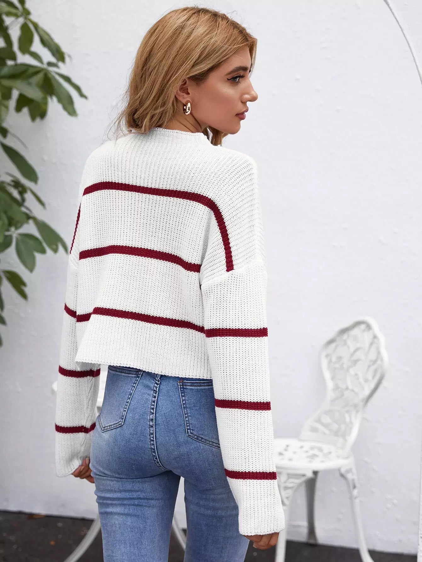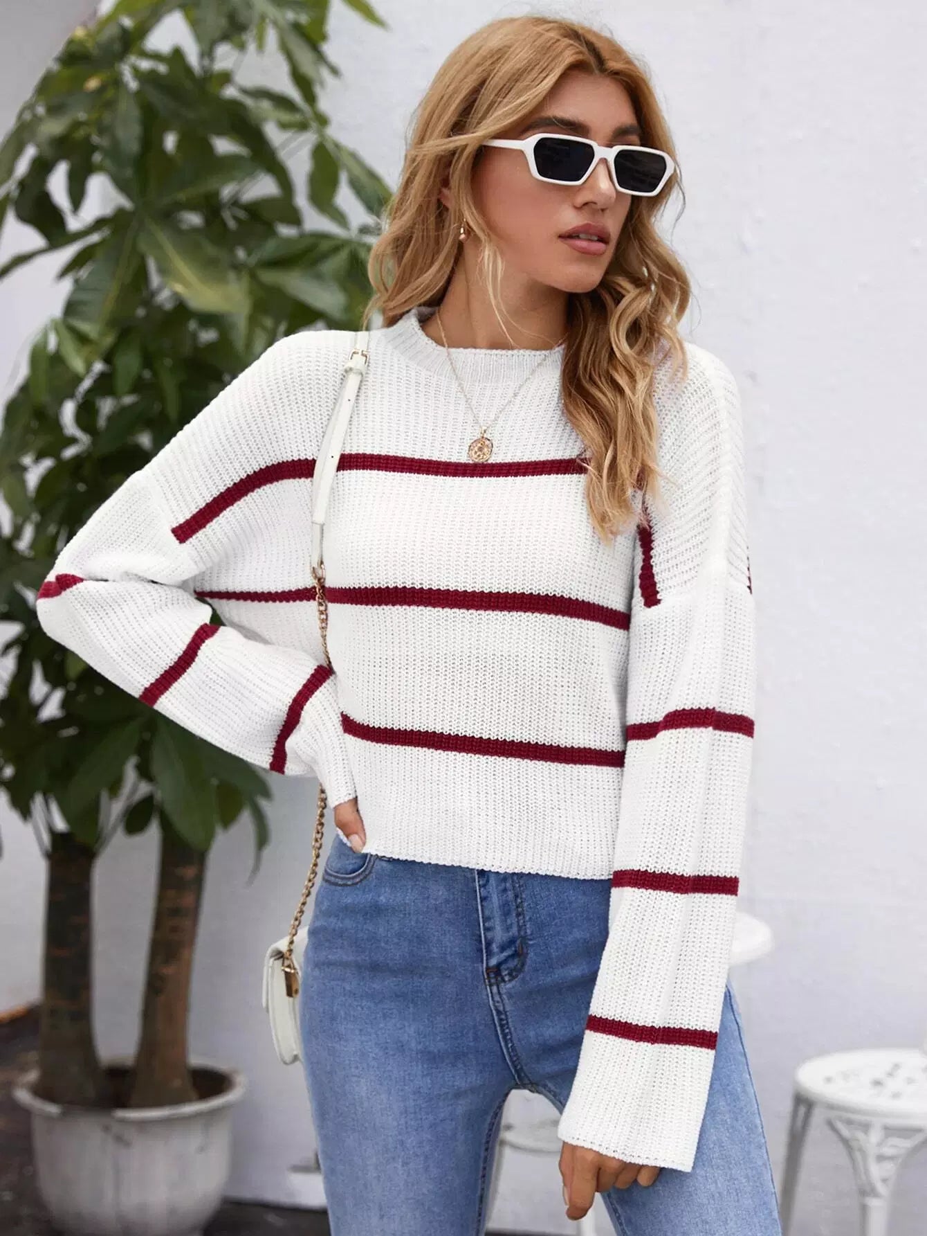 سترة قصيرة مخططة منسدلة الكتفين مخططة