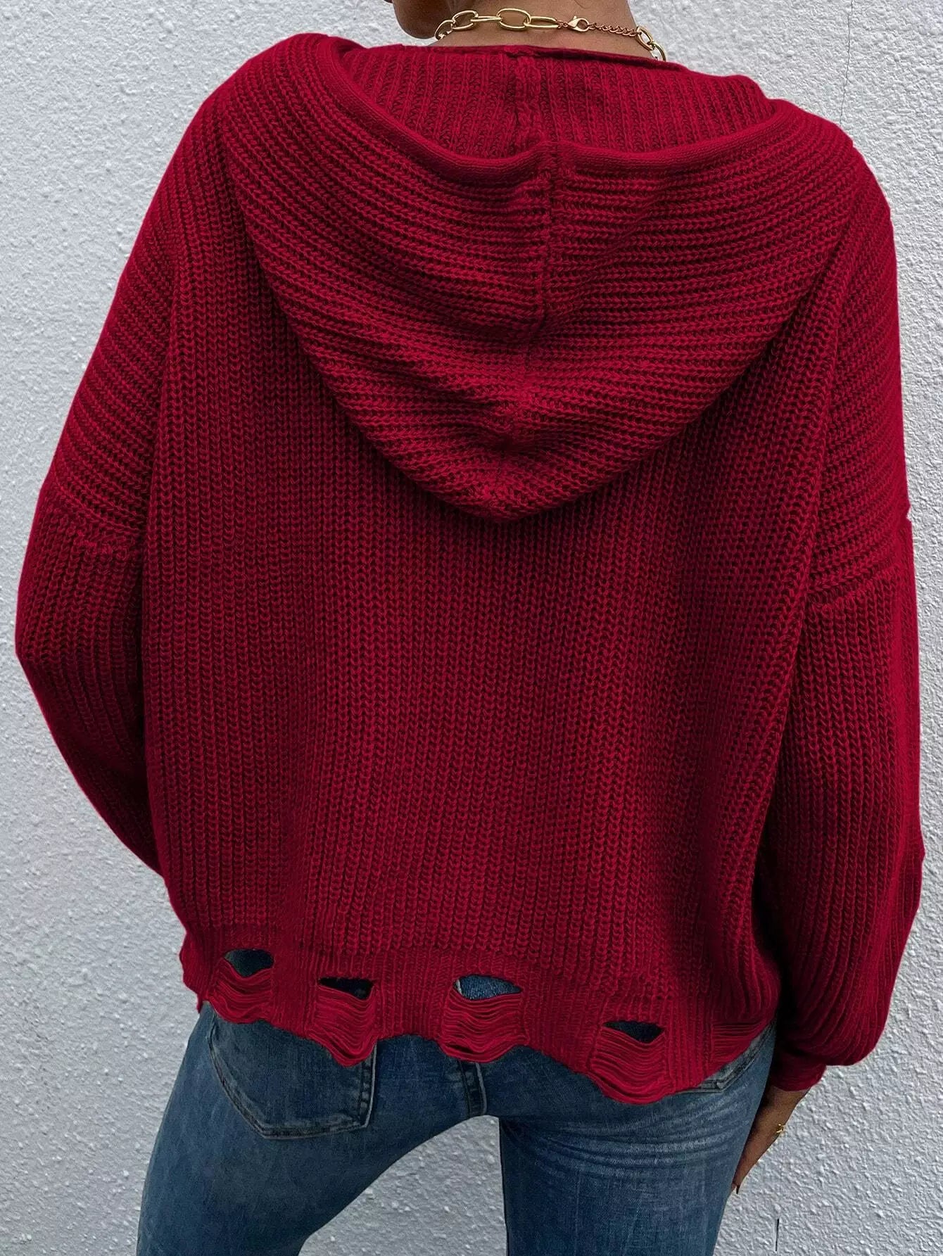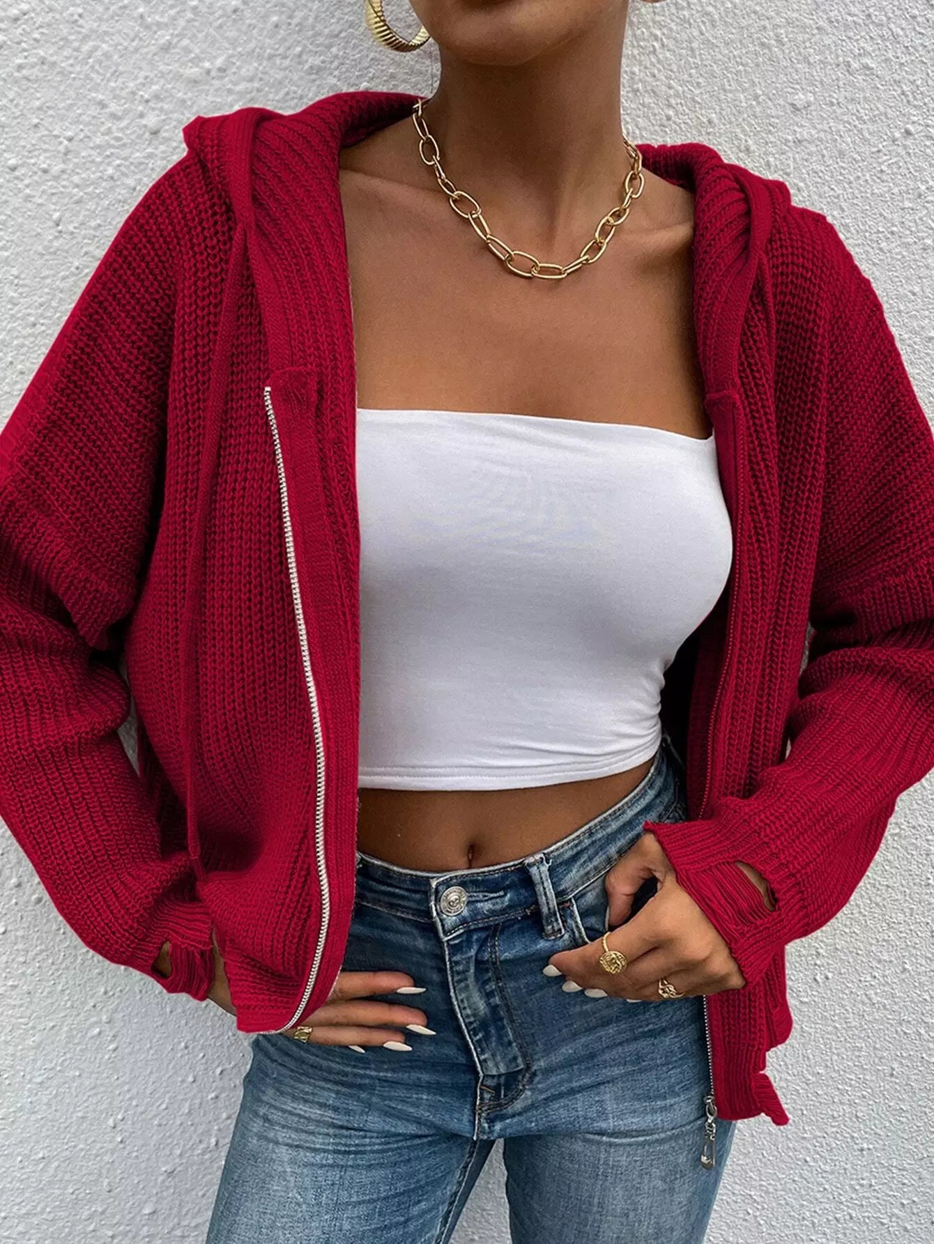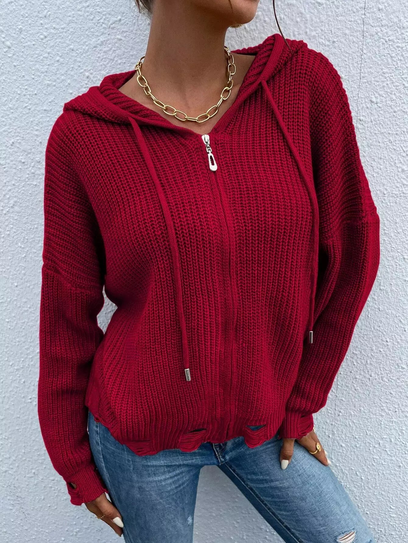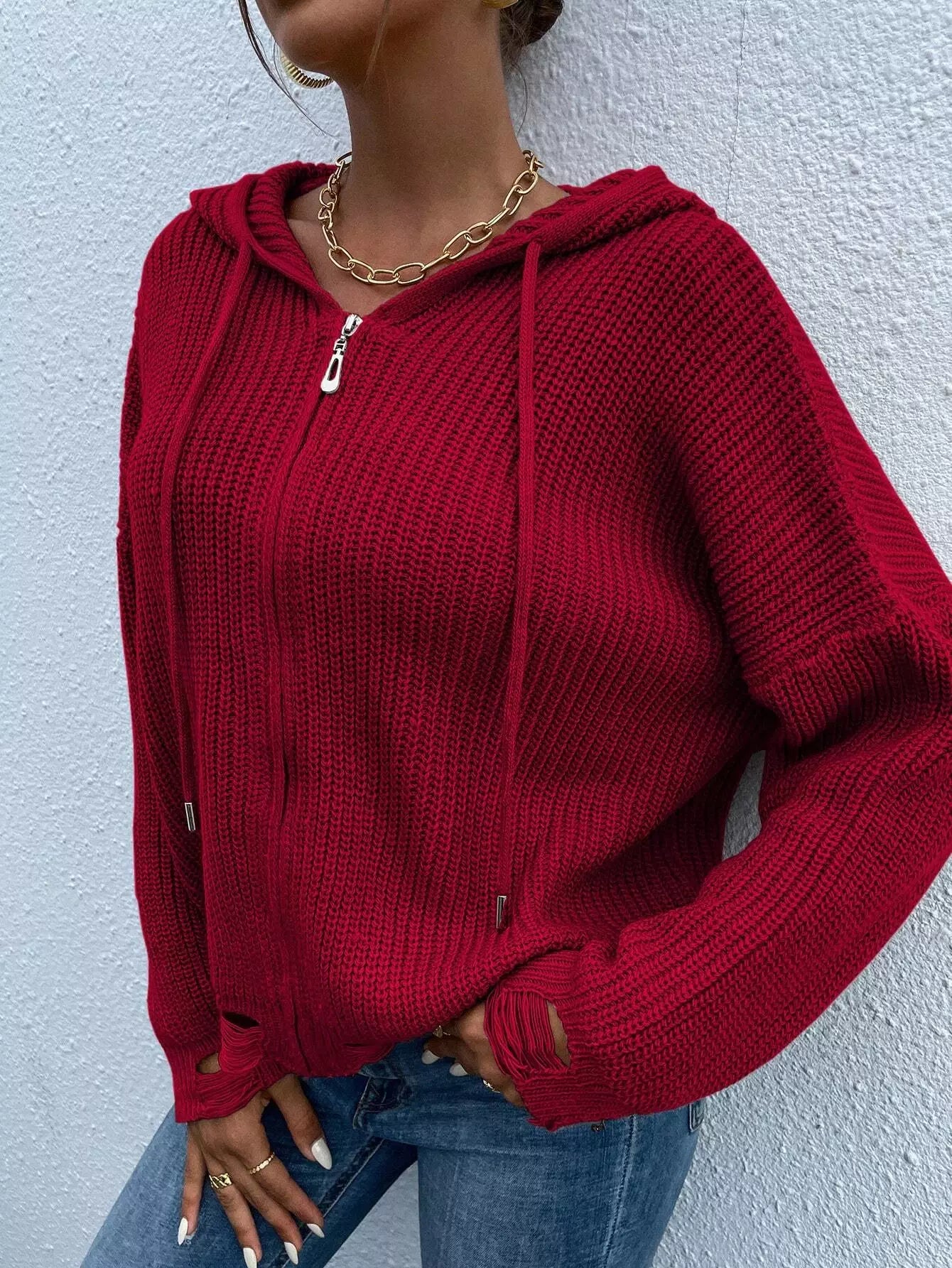 كارديغان منسدل الكتفين بسحّاب منسدل على الكتفين، برباط على شكل رباط