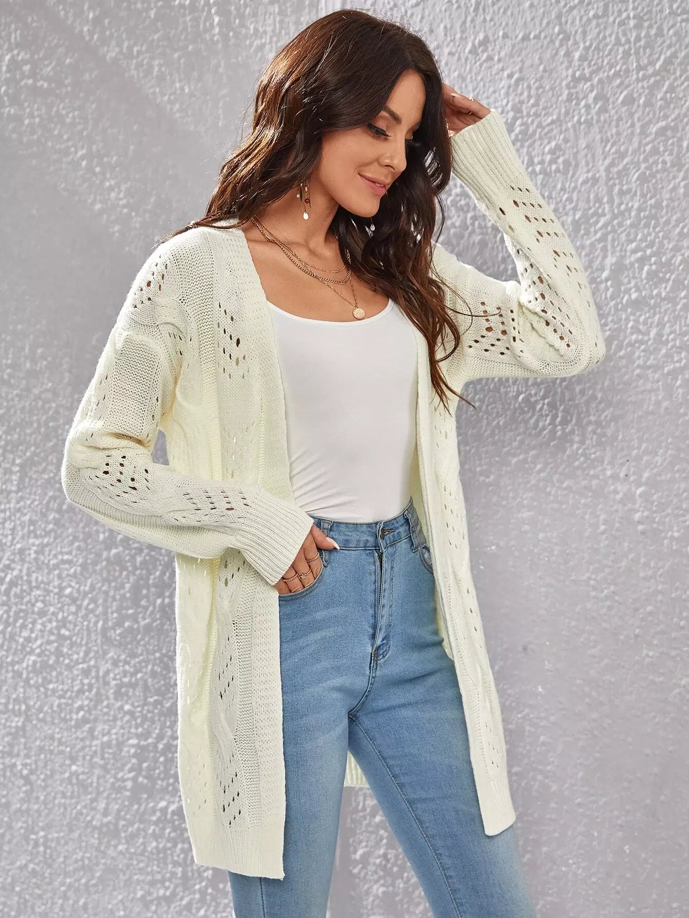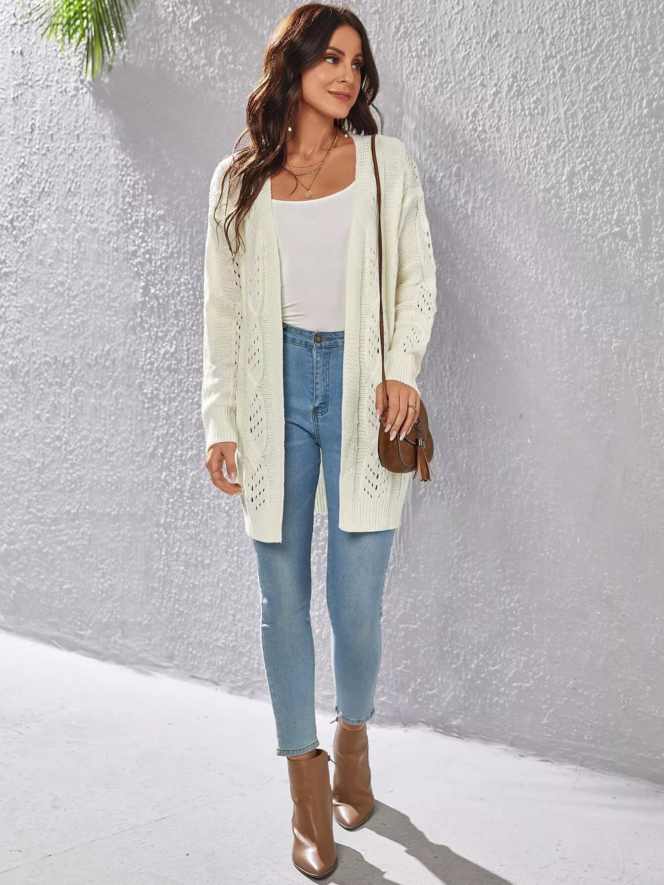 كارديجان مفتوح من الأمام بكتف منسدل وتفاصيل فتحات