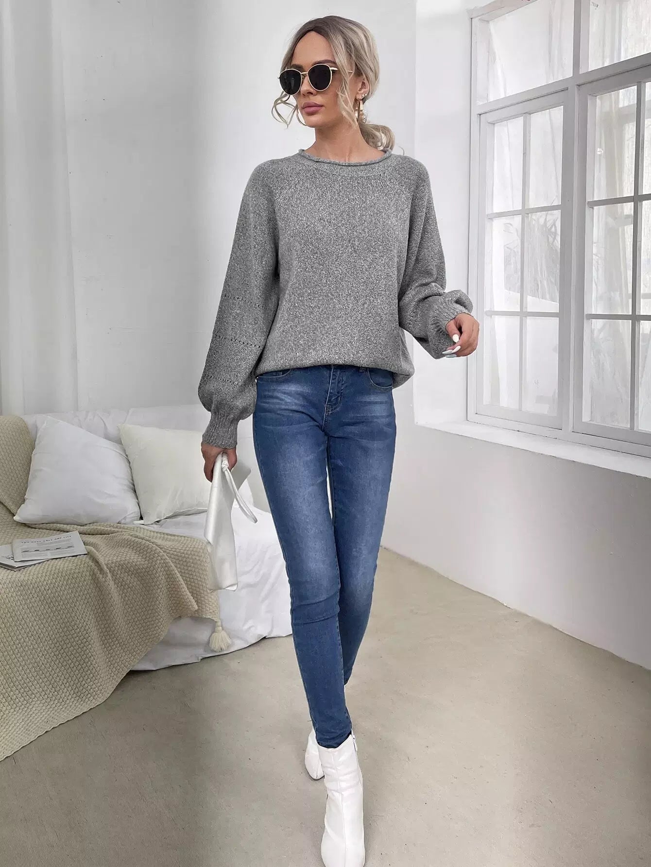 سترة بأكمام رالان بأكمام مزينة بفتحة عينيه