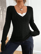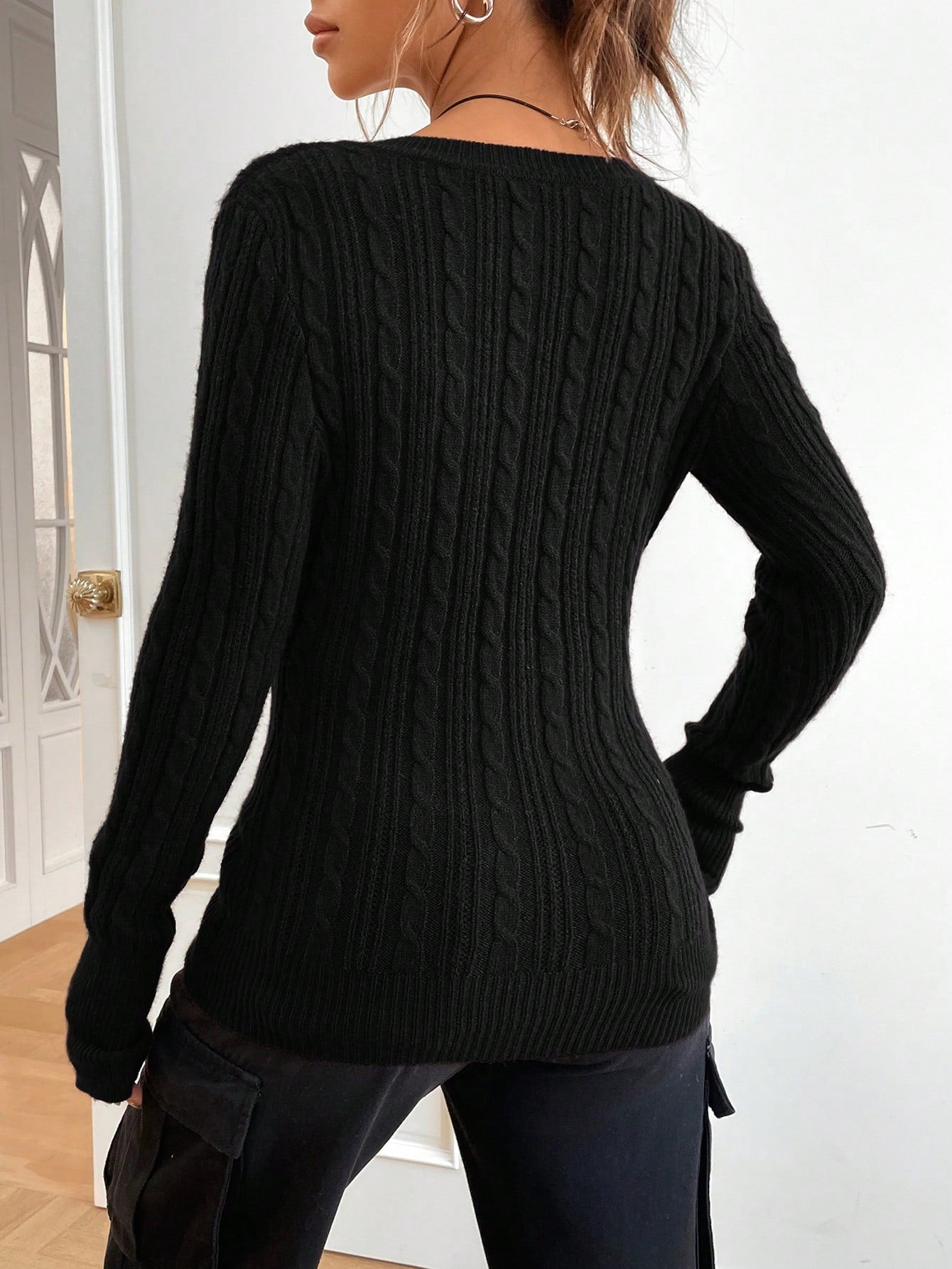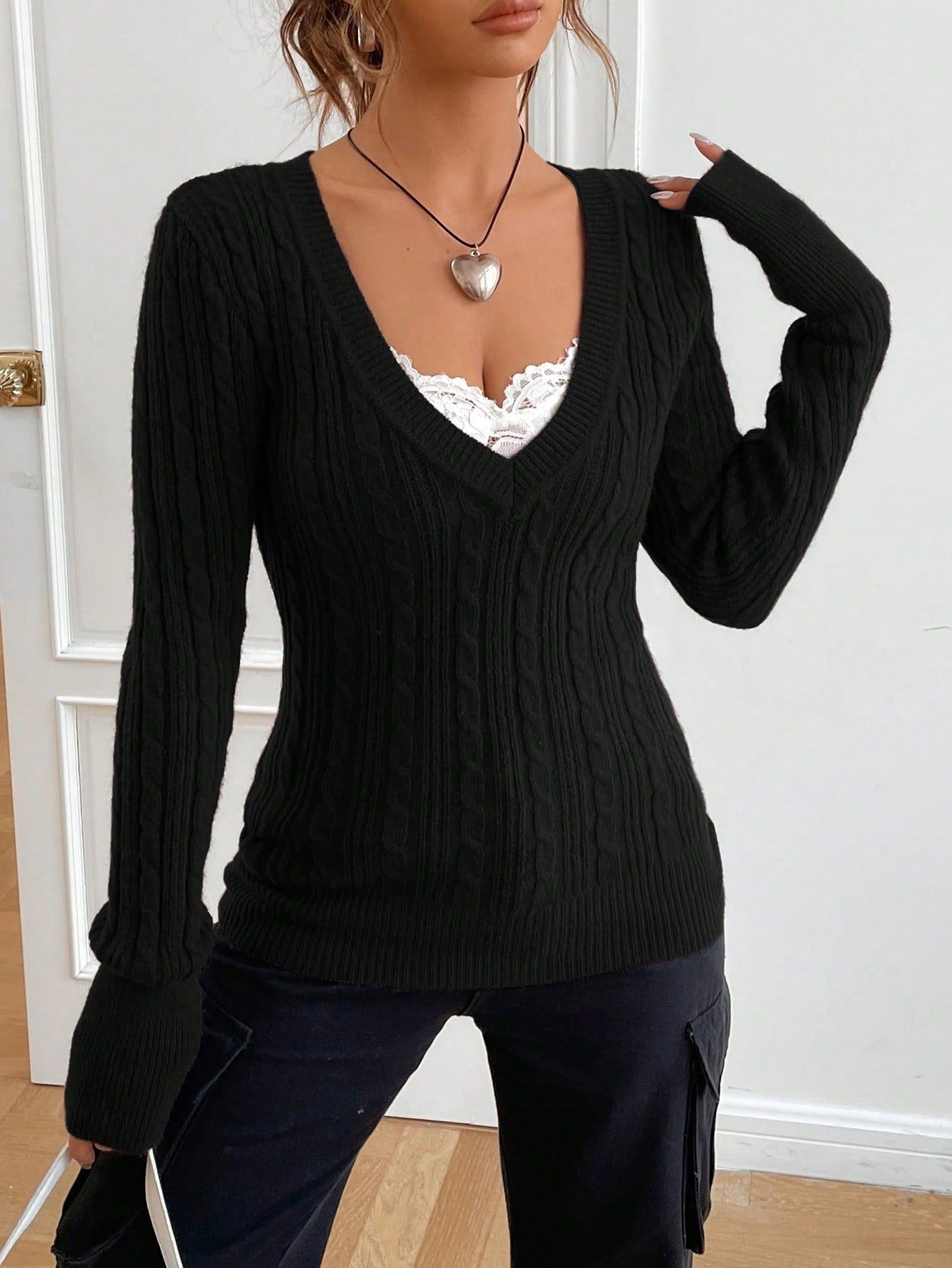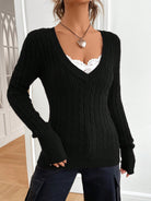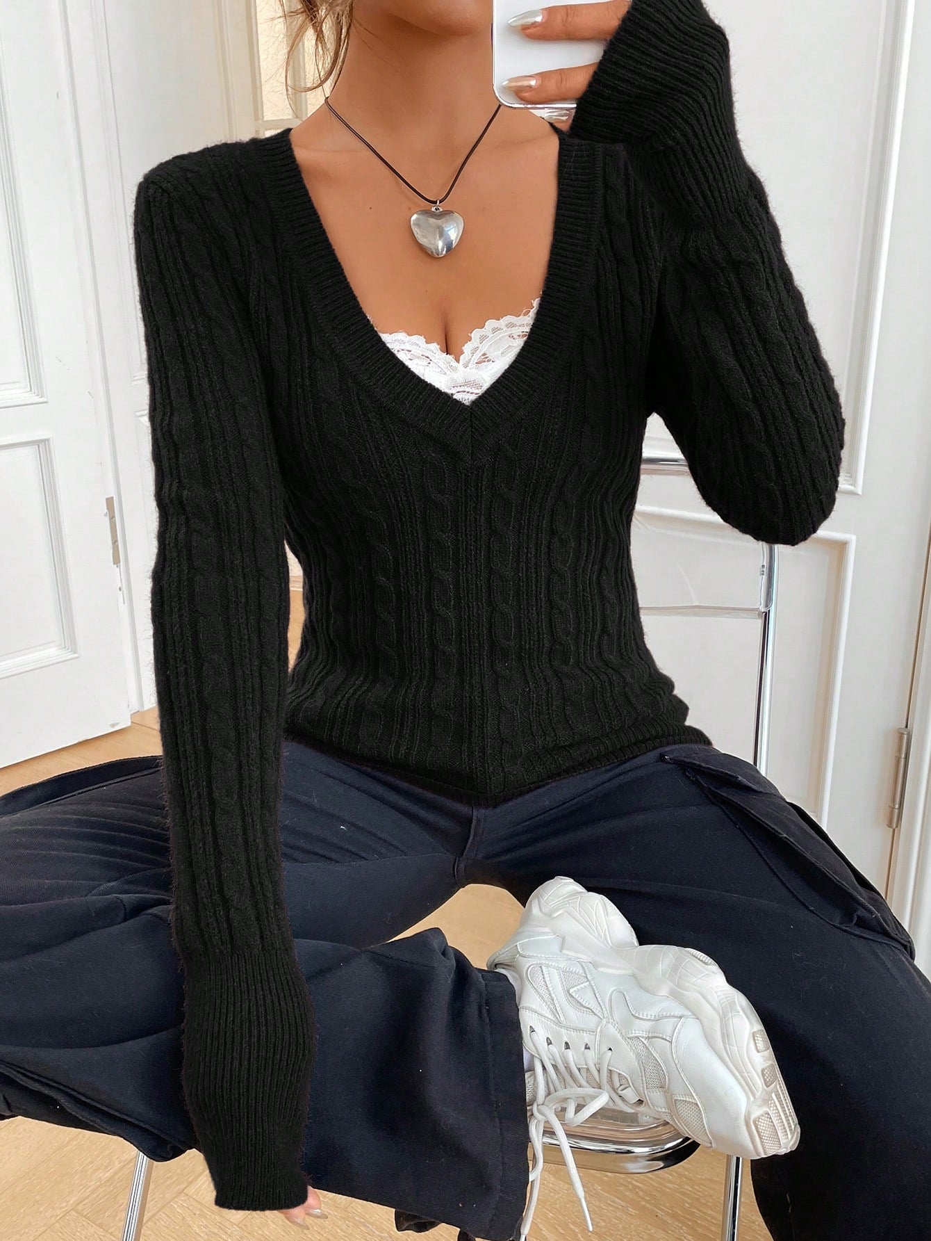 كنزة نسائية ربيعية أنيقة من إيزيوير، قطعة واحدة، بتصميم كابل محبوك، بياقة على شكل حرف V
