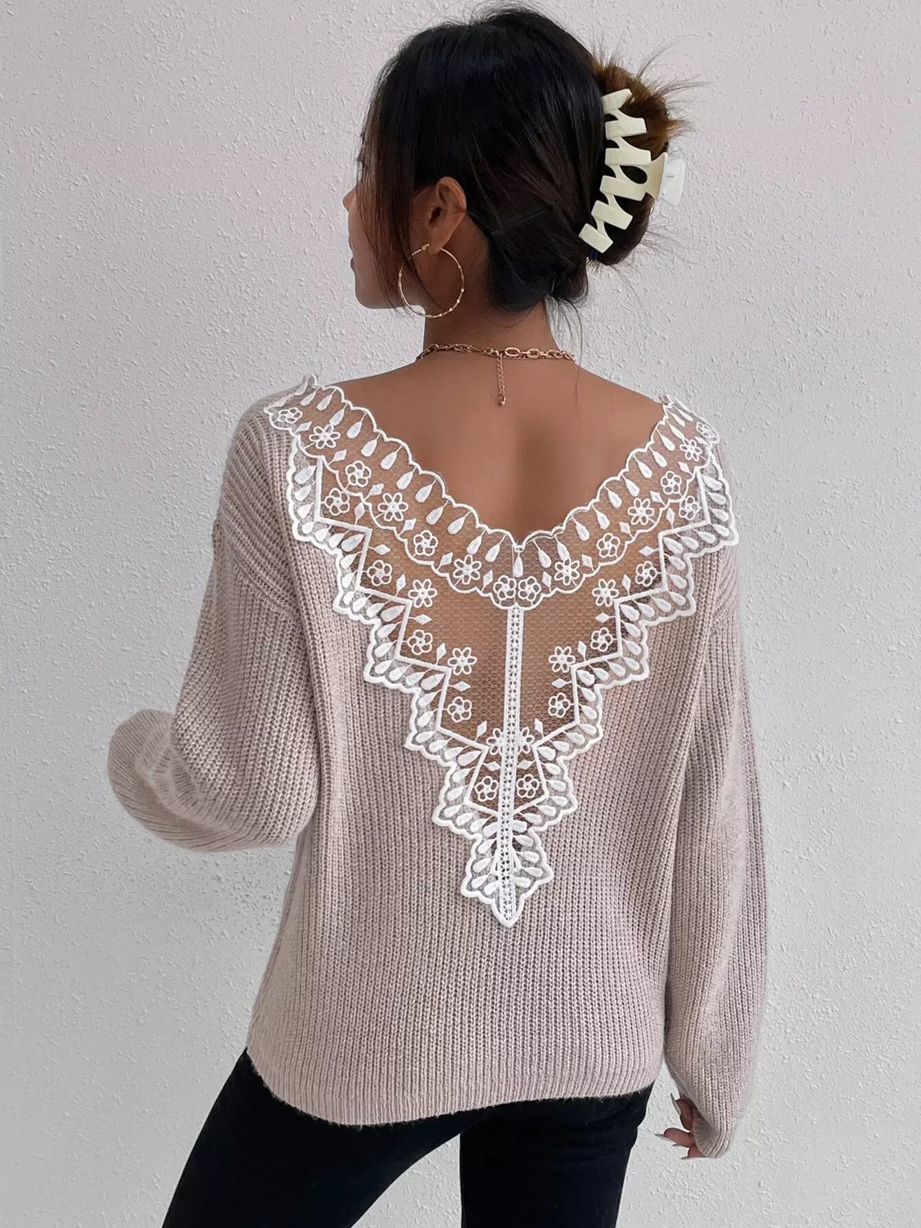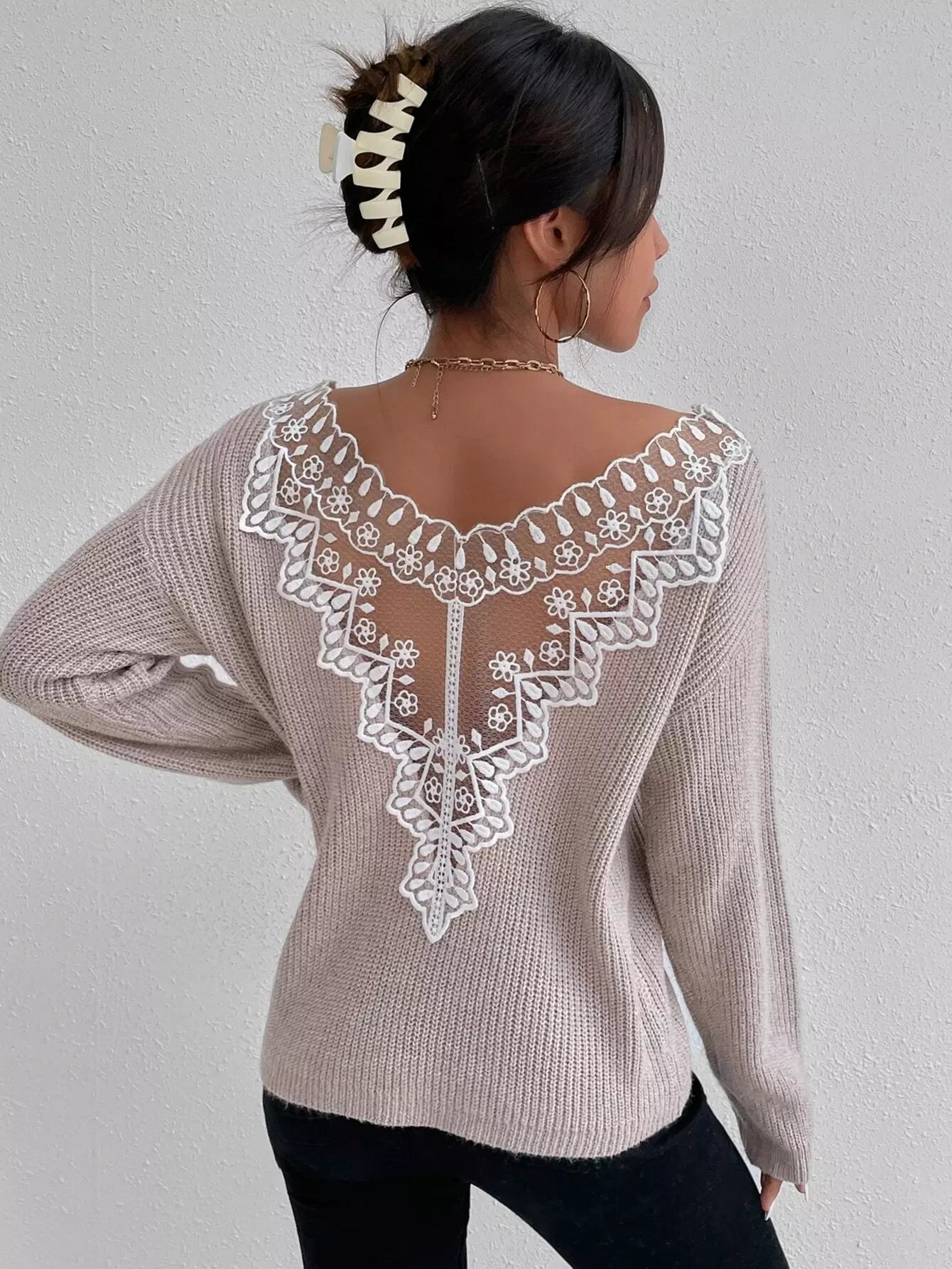 سترة منسدلة الكتف منسدلة الكتف مطرزة بتطريزات زهرية شبكية منسدلة من الخلف