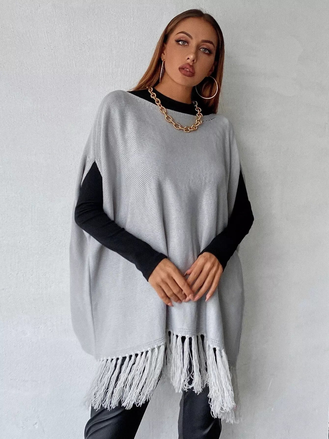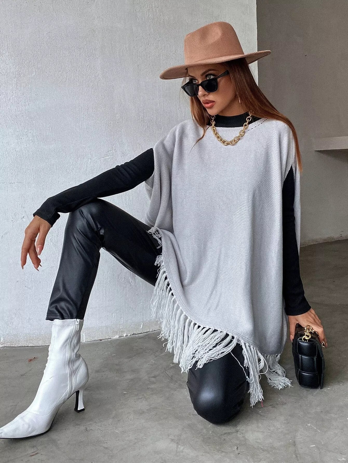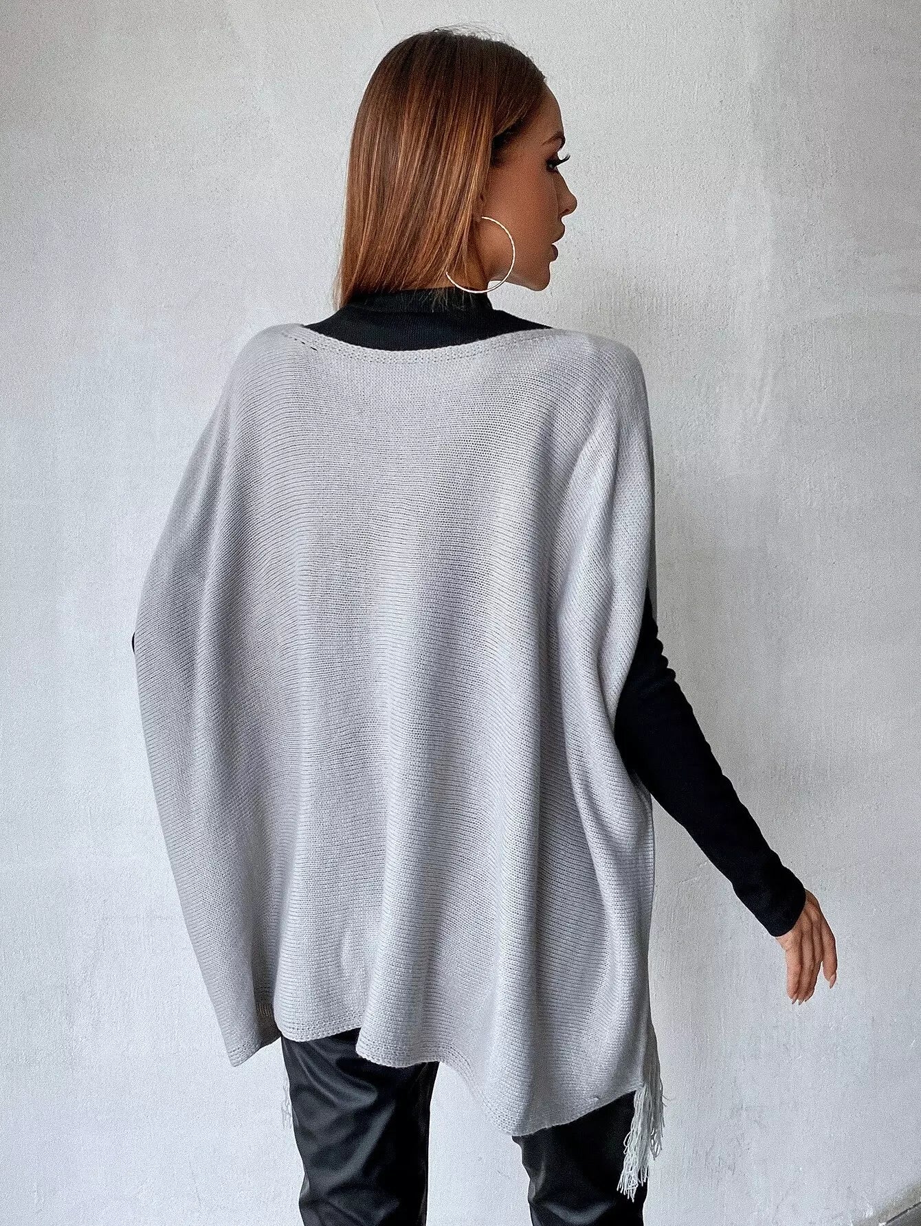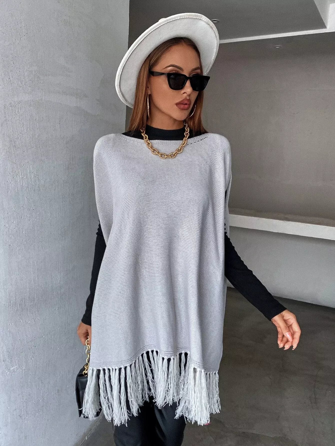 بلوزة متماسكة بأكمام مهدبة بأطراف مهدبة بدون قميص