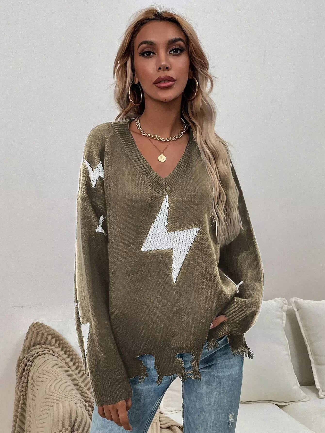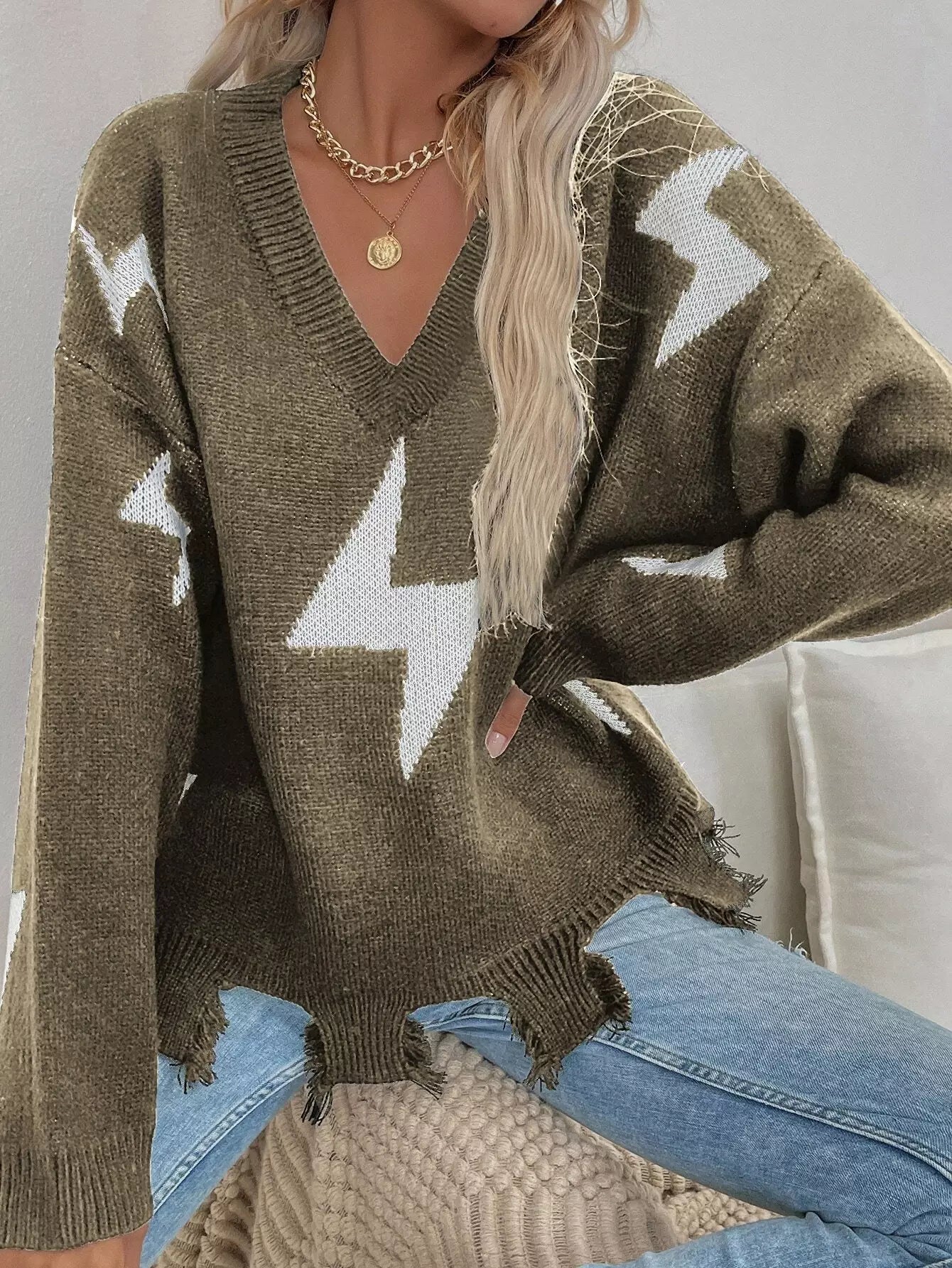 سترة منسدلة الكتفين بنقشة جيو منسدلة الكتفين