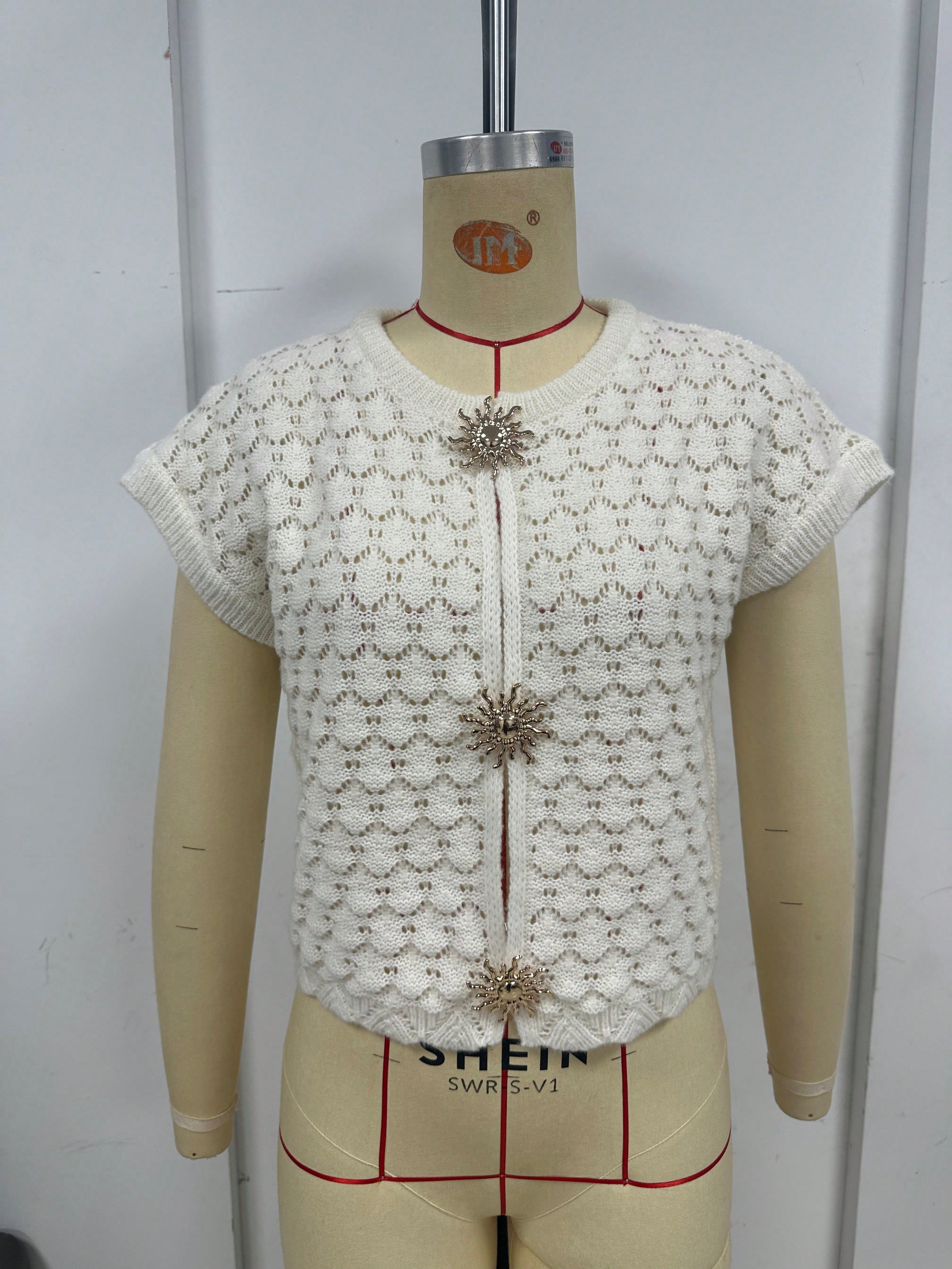 صدرية محبوكة بأزرار بتصميم مجوف - مناسبة للارتداء اليومي في فصلي الربيع والخريف