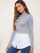 كنزة برقبة وهمية بحاشية بلون مغاير