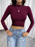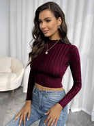 سترة برقبة وهمية بياقة ضلع محبوكة على شكل ضلع