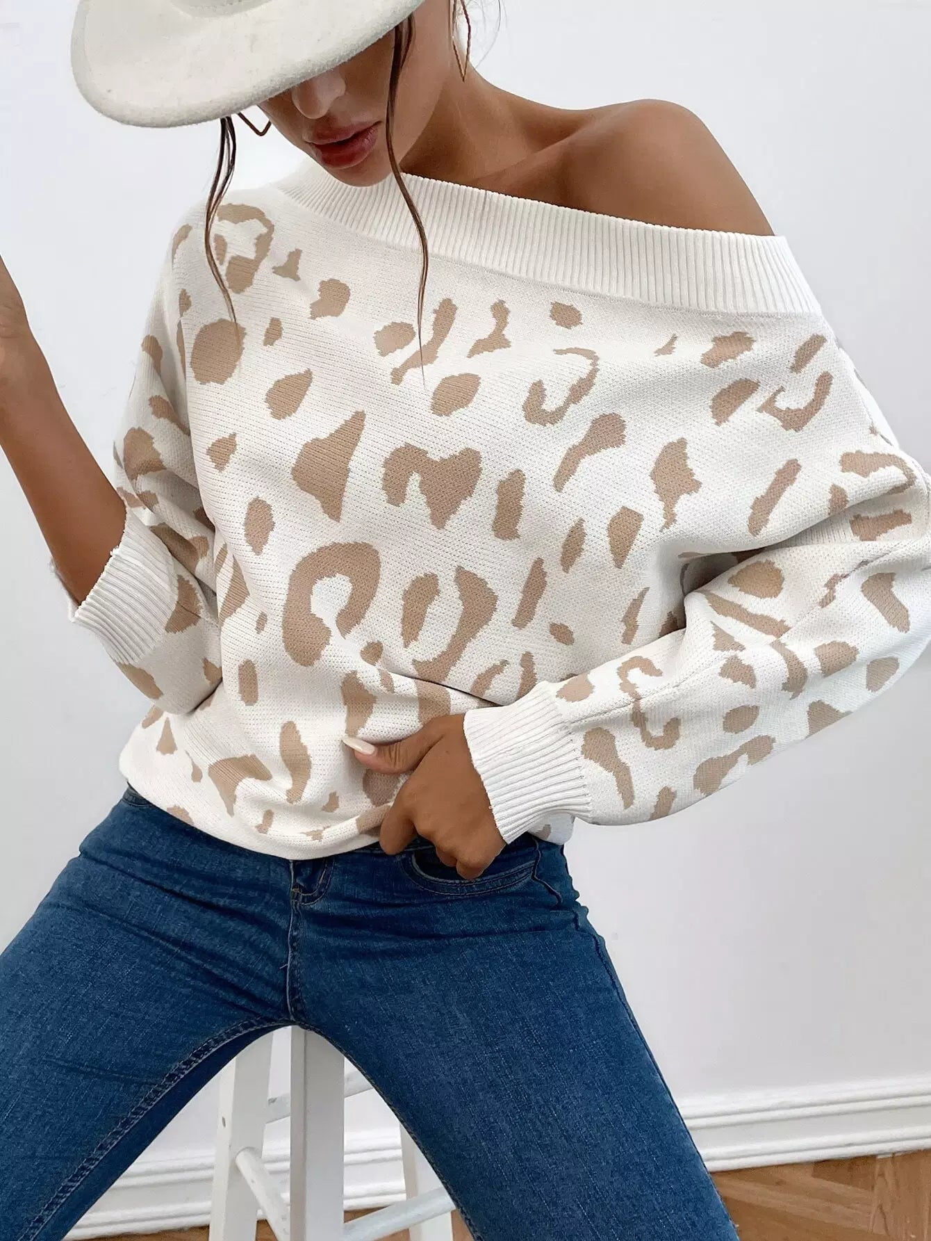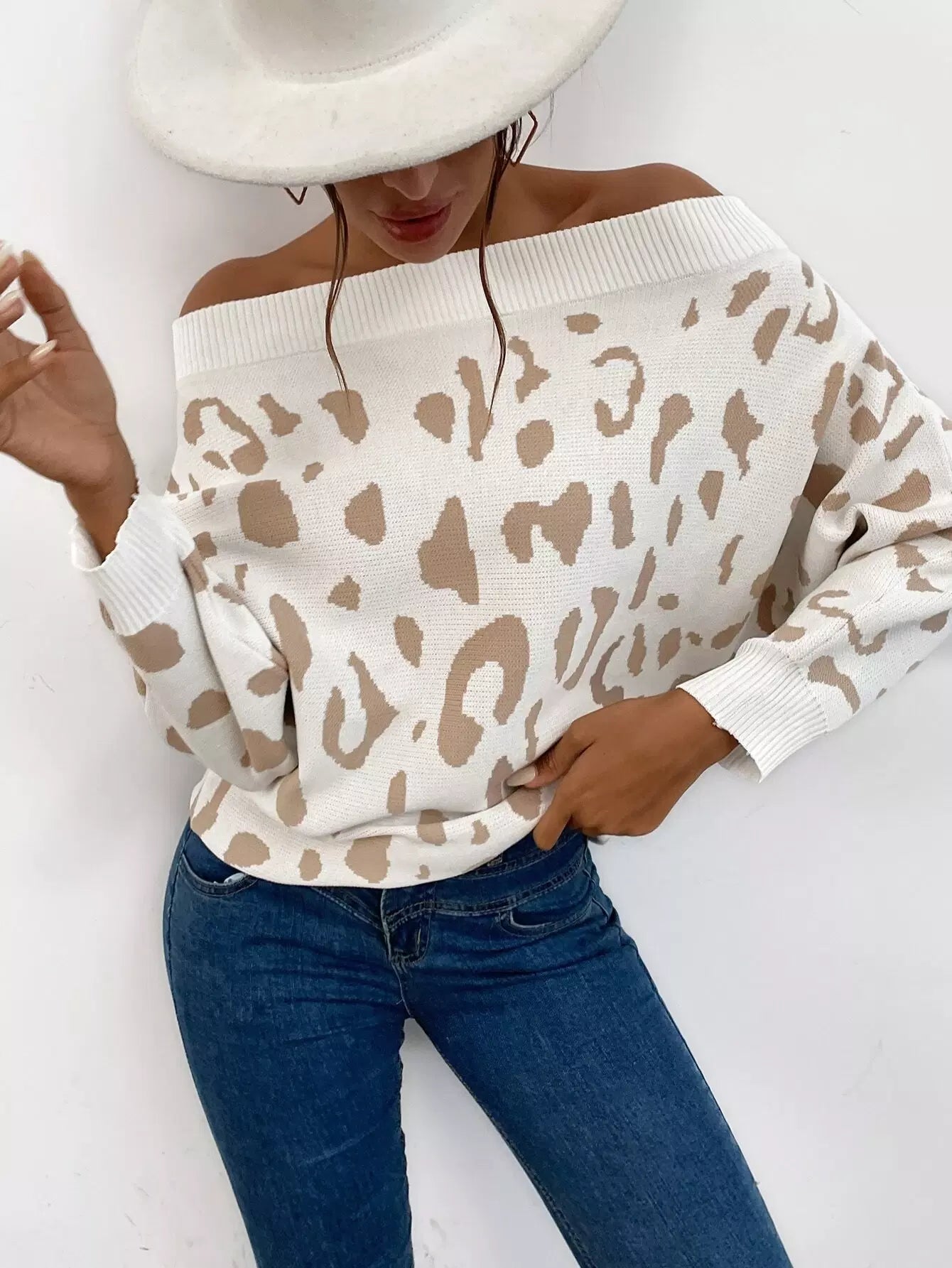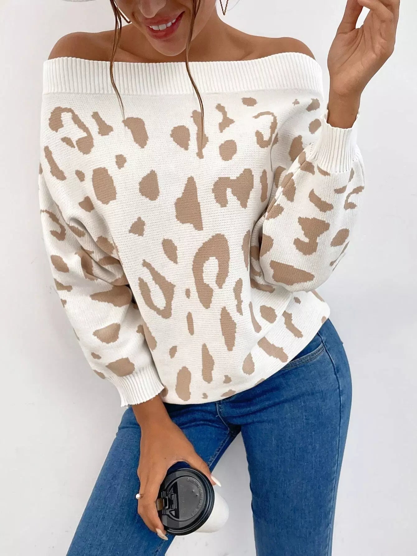 سترة جرافيك بأكمام مكشوفة الأكتاف بأكمام باتوينج