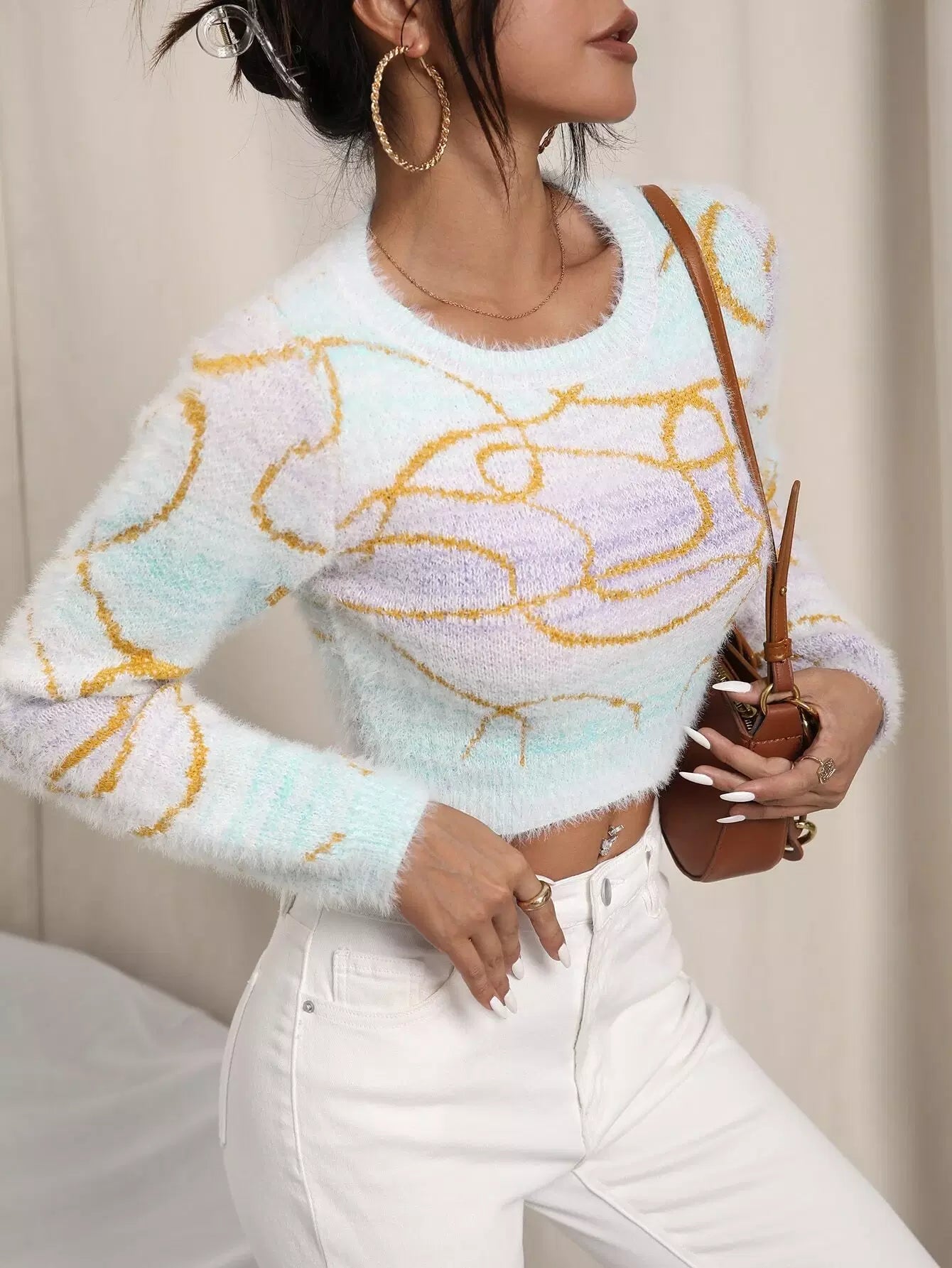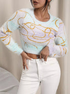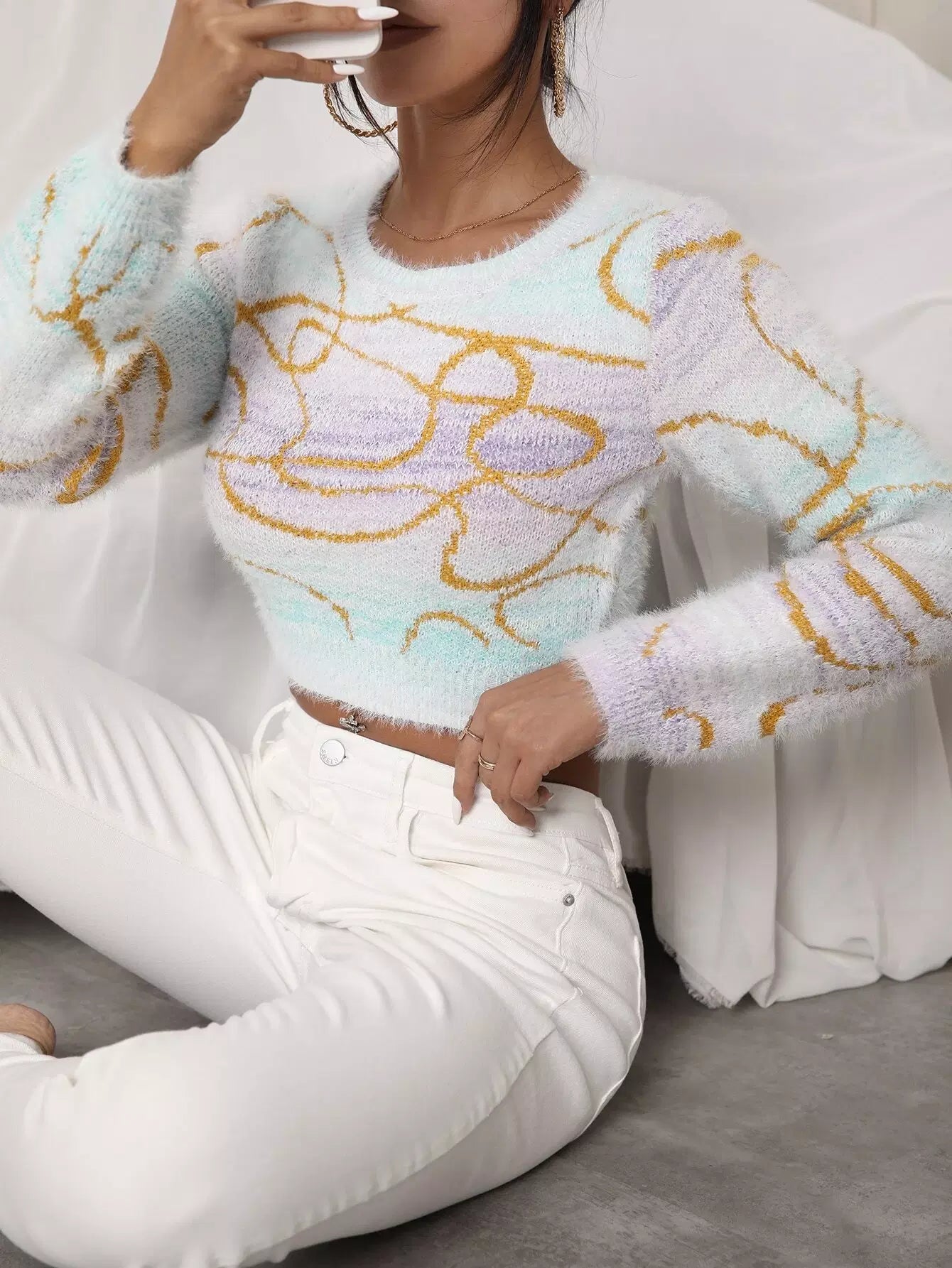 سترة منسوجة بنقشة جرافيك أومبيري منفوشة بنقشة جرافيك