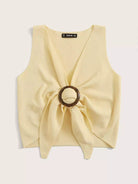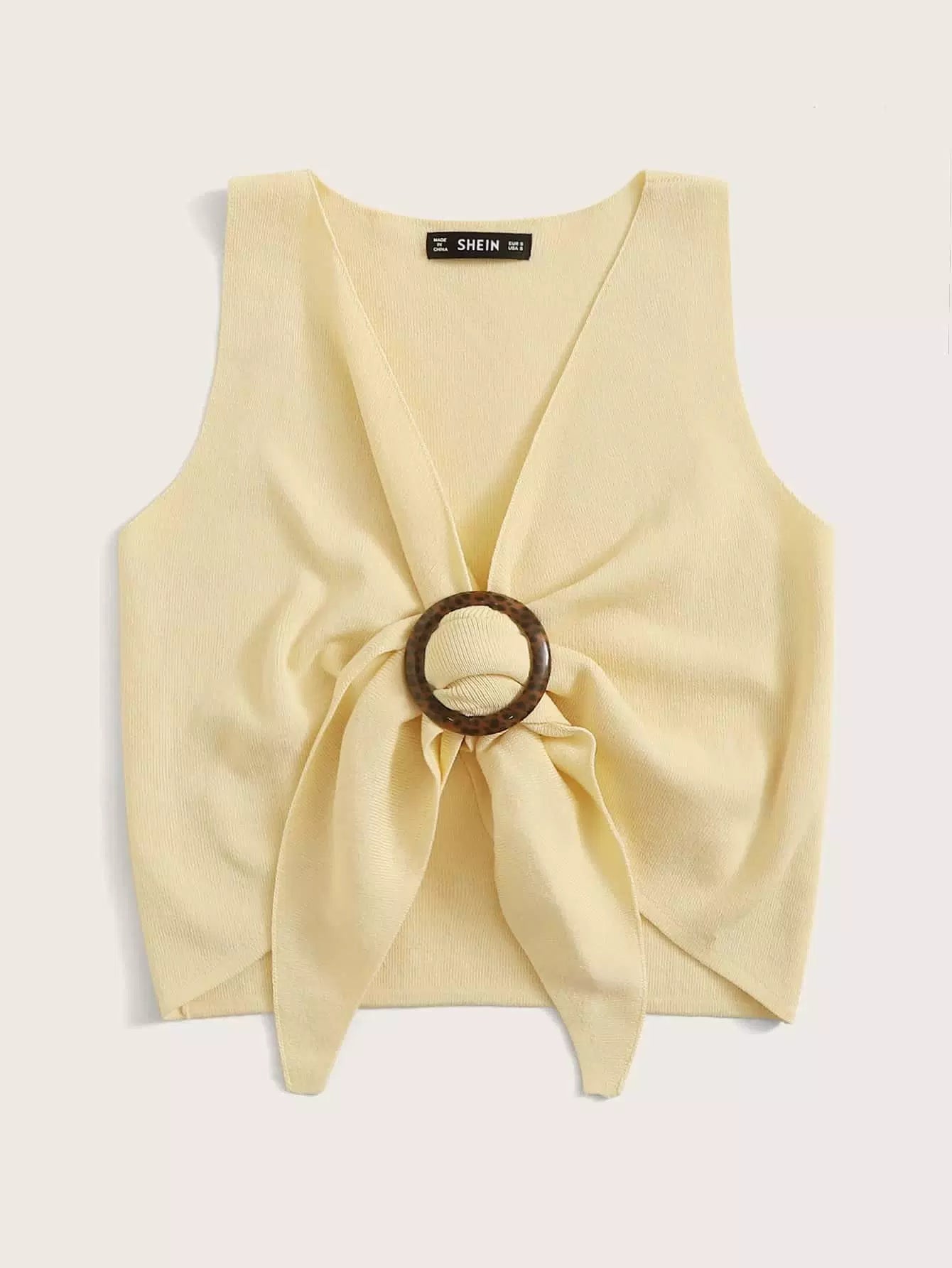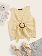بلوزة ضيقة مضلعة مضلعة على شكل حرف O ذات فتحة على شكل حرف O