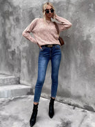 سترة بوينتيل محبوكة منسدلة الكتفين