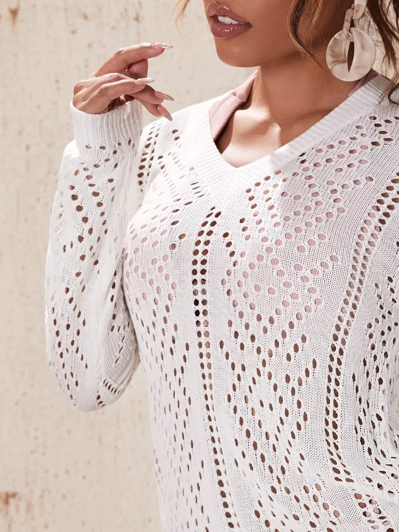 سترة بوينتيل محبوكة منسدلة الكتفين