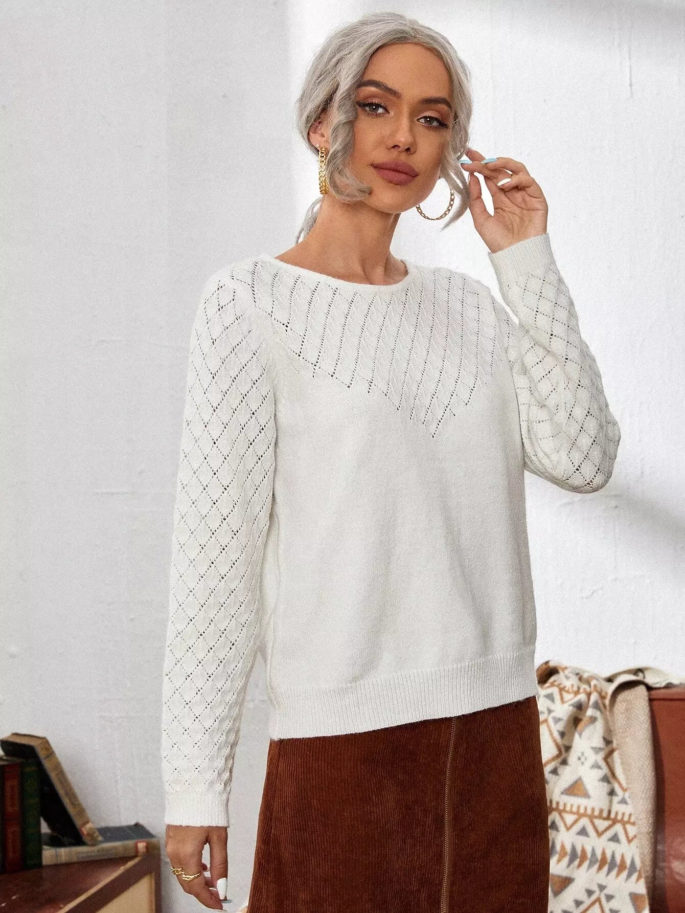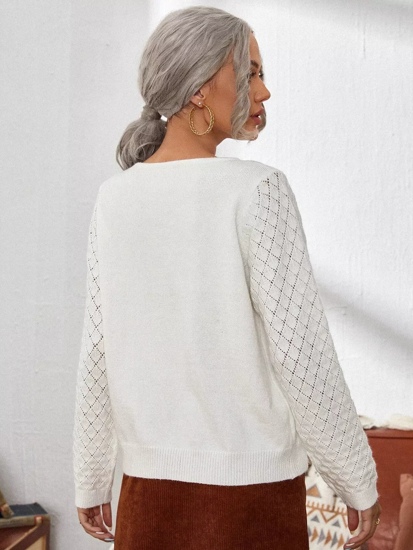 سترة سادة من نسيج محبوكة بنقشة بوينتيل