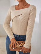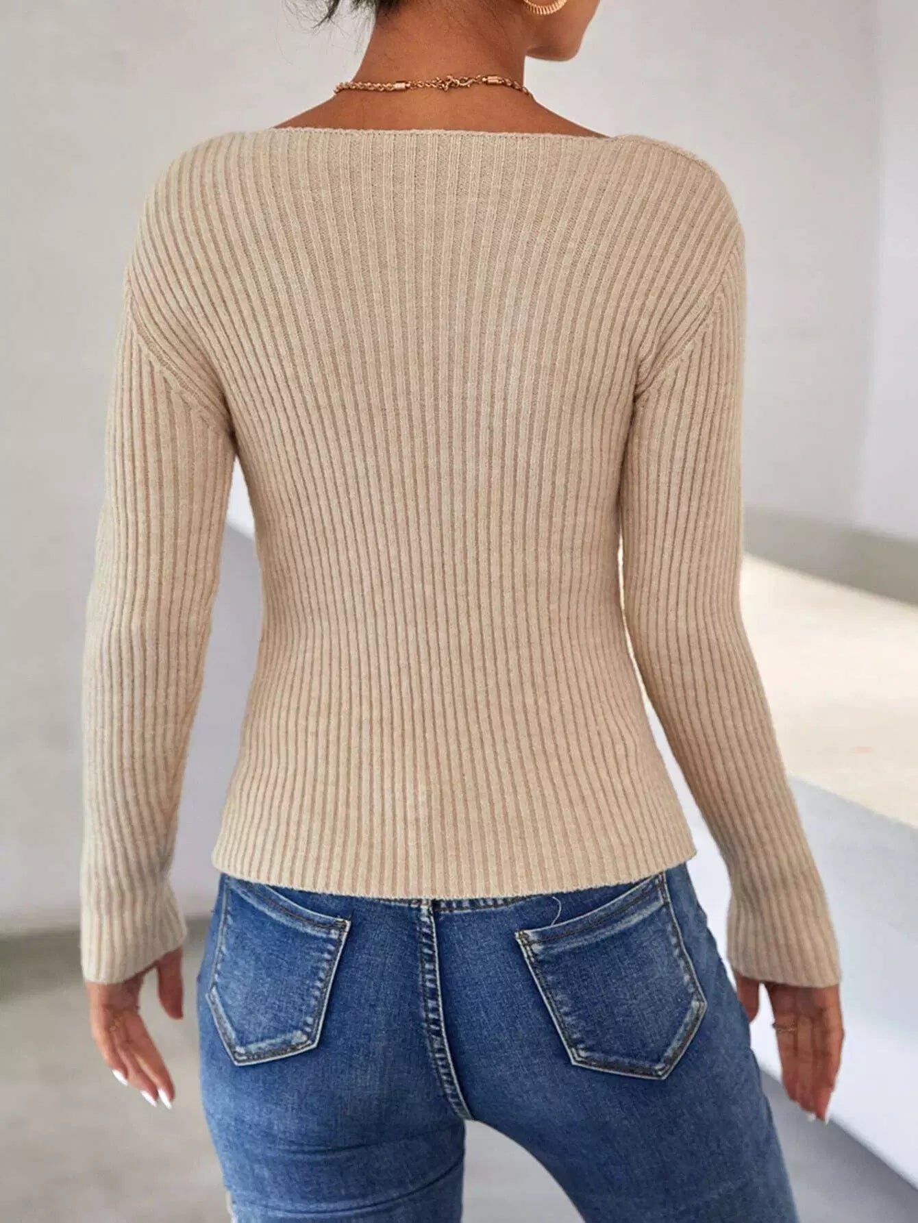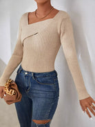 كنزة صوفية سادة ضلعية متماسكة ضيقة بقصة ضيقة