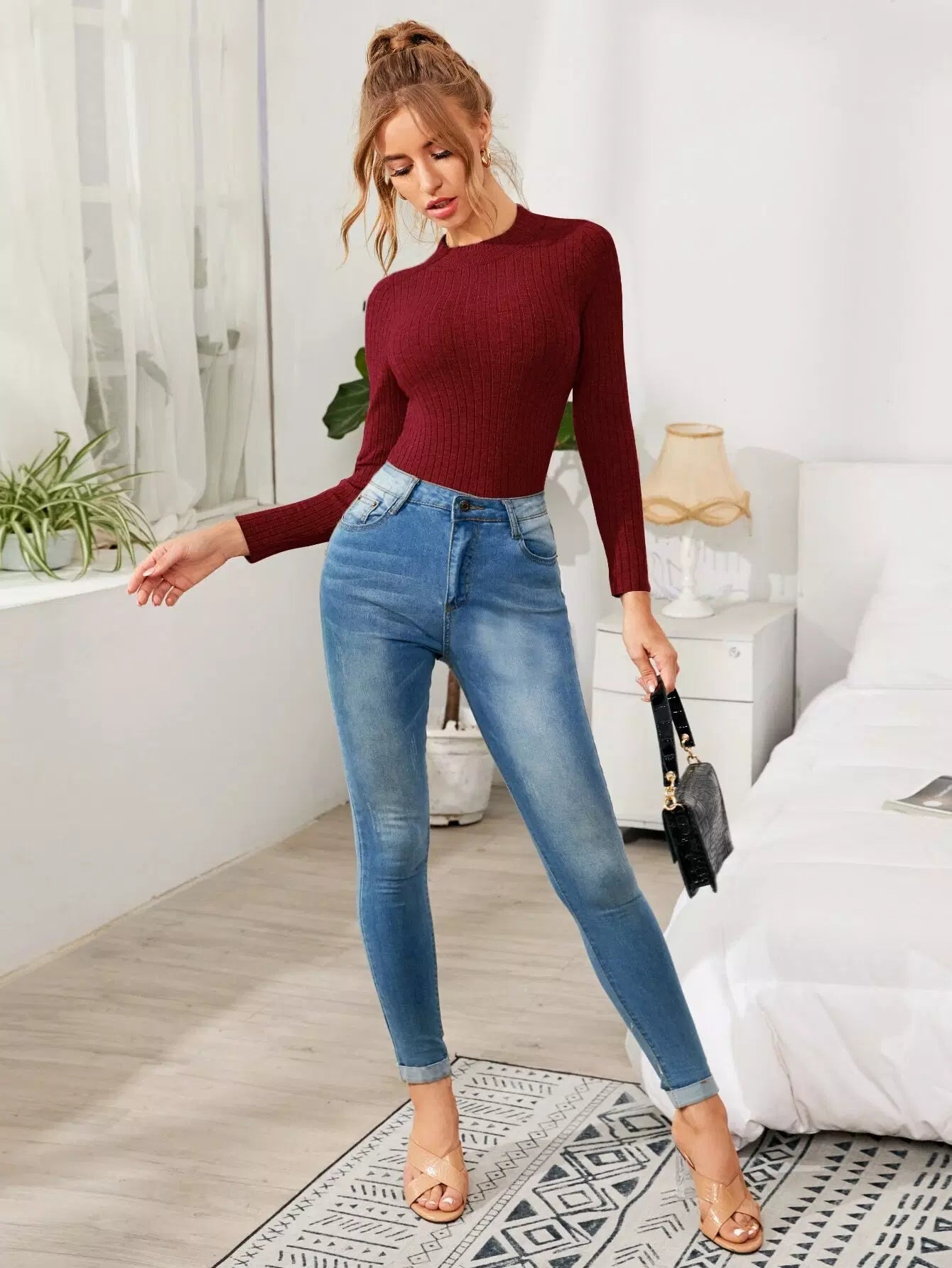 سترة برقبة مضلعة برقبة مضلعة على شكل ضلع