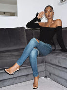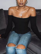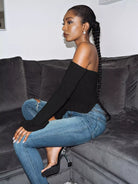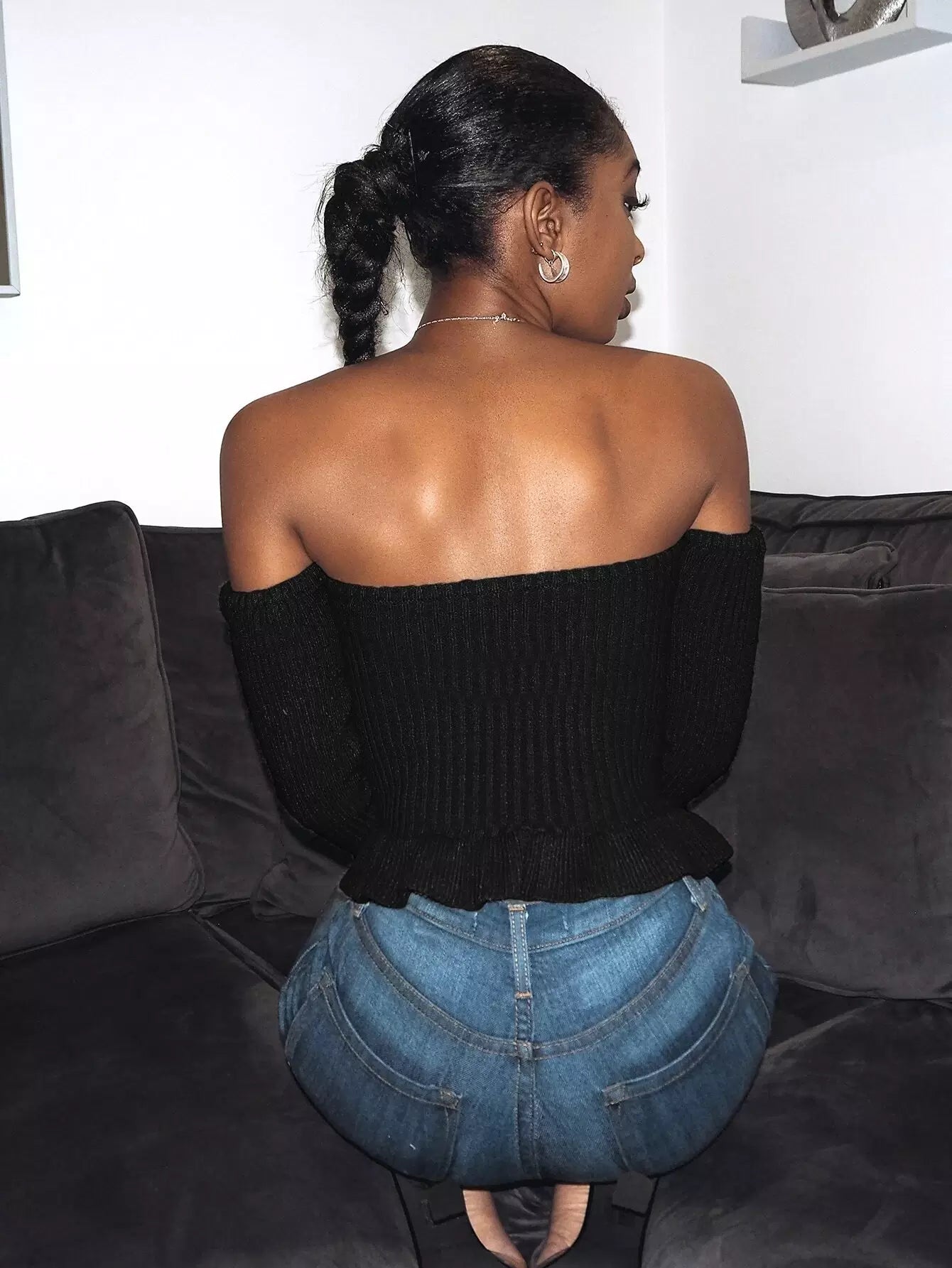 سترة مكشكشة مضلعة مكشكشة مكشوفة الكتفين