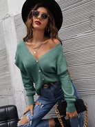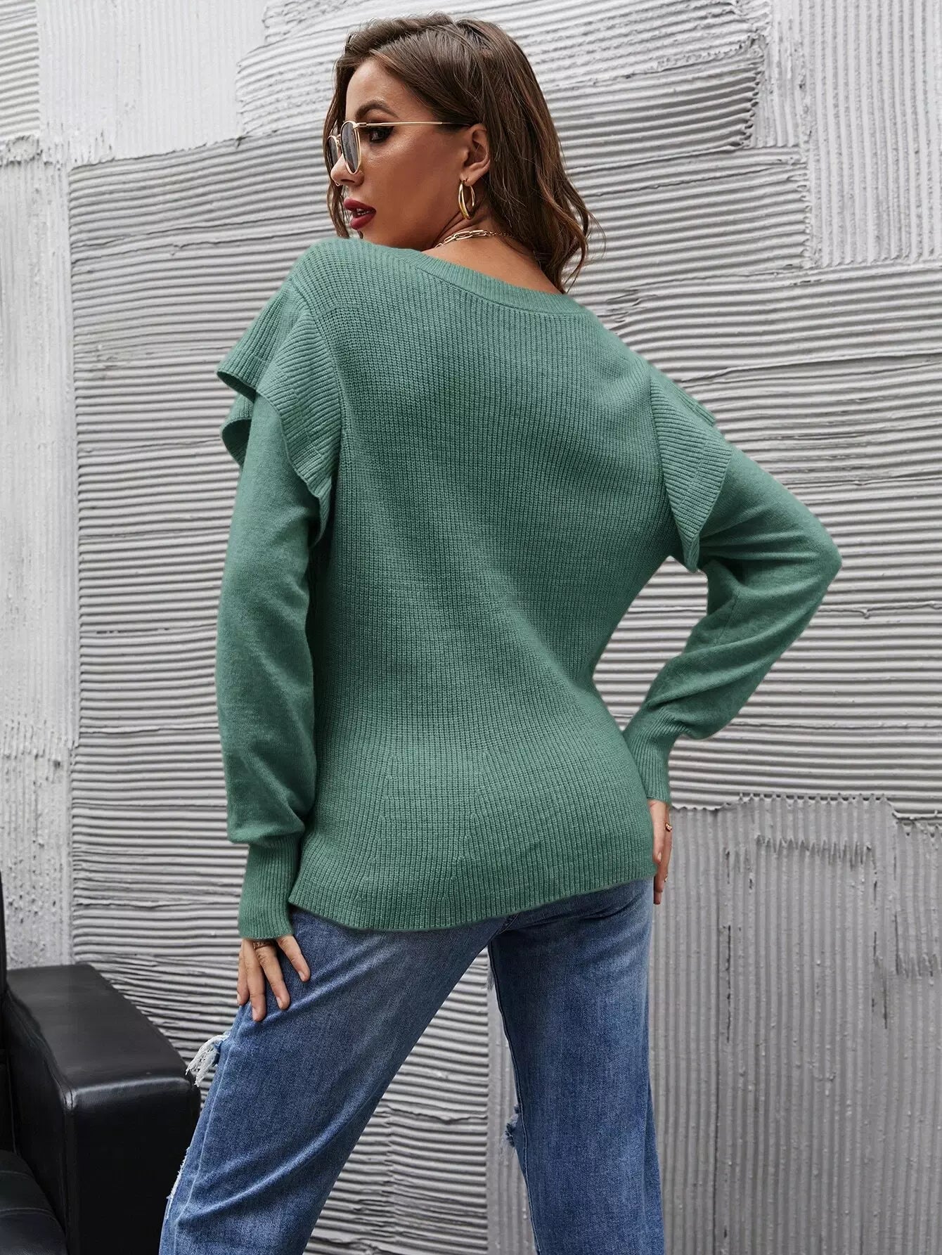 كارديغان بحواف كشكش بأزرار أمامية منسدلة منسدلة الكتفين