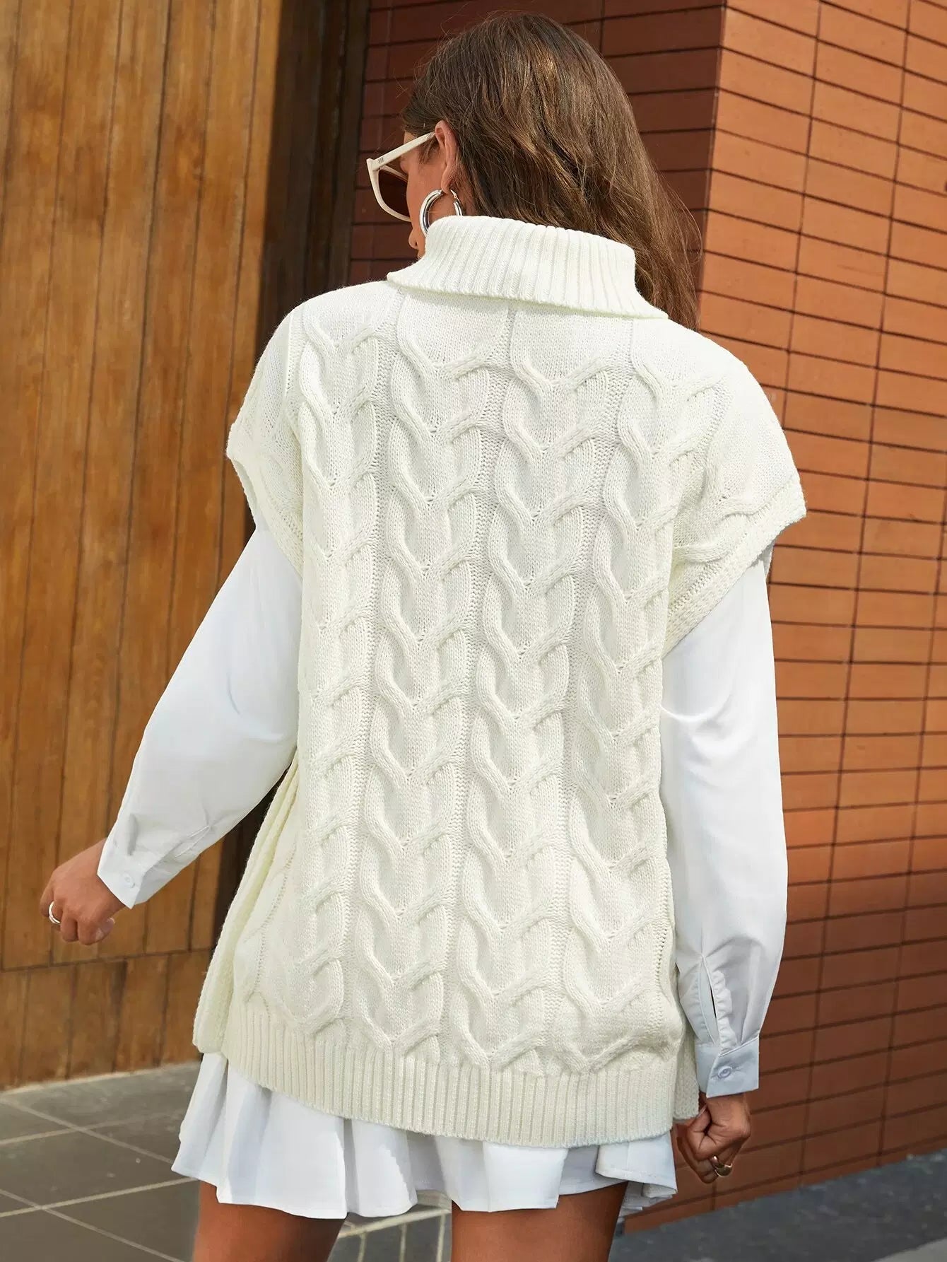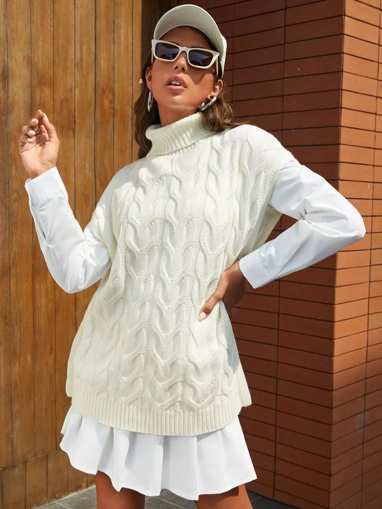 سترة سادة بأكمام كبلية متماسكة ذات أكمام باتوينغ بدون بلوزة