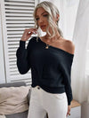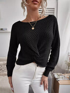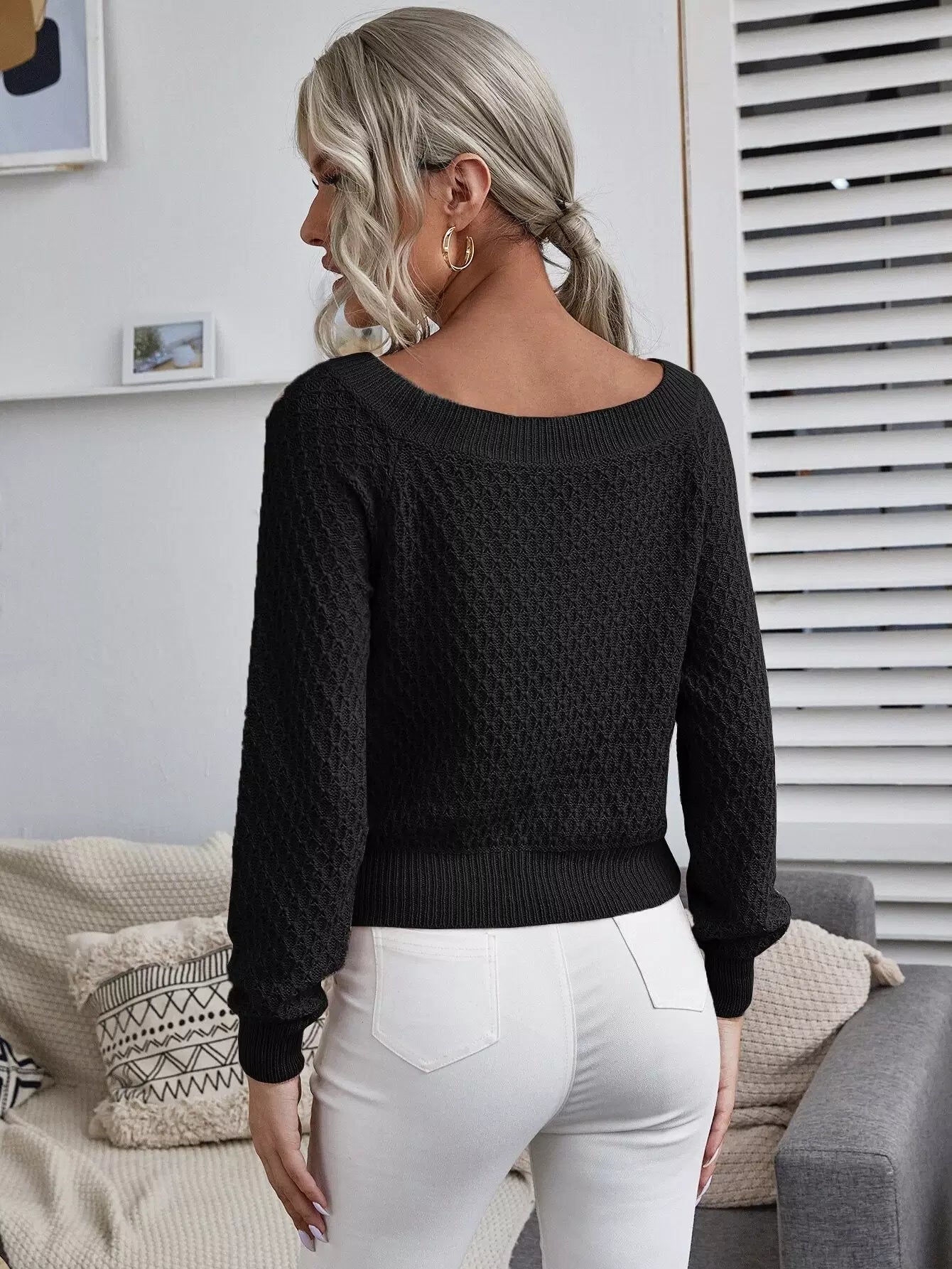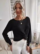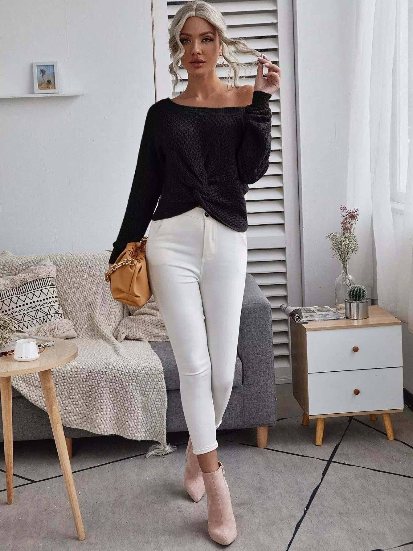 كنزة برقبة قارب بفتحة أمامية ملتوية سادة