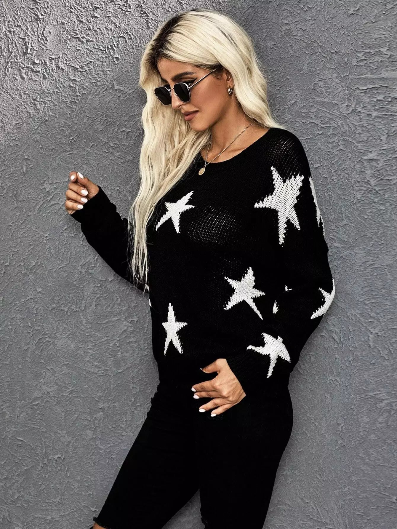 سترة منسدلة على الكتف بنقشة نجمة