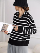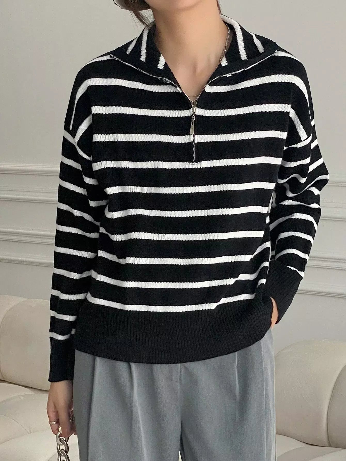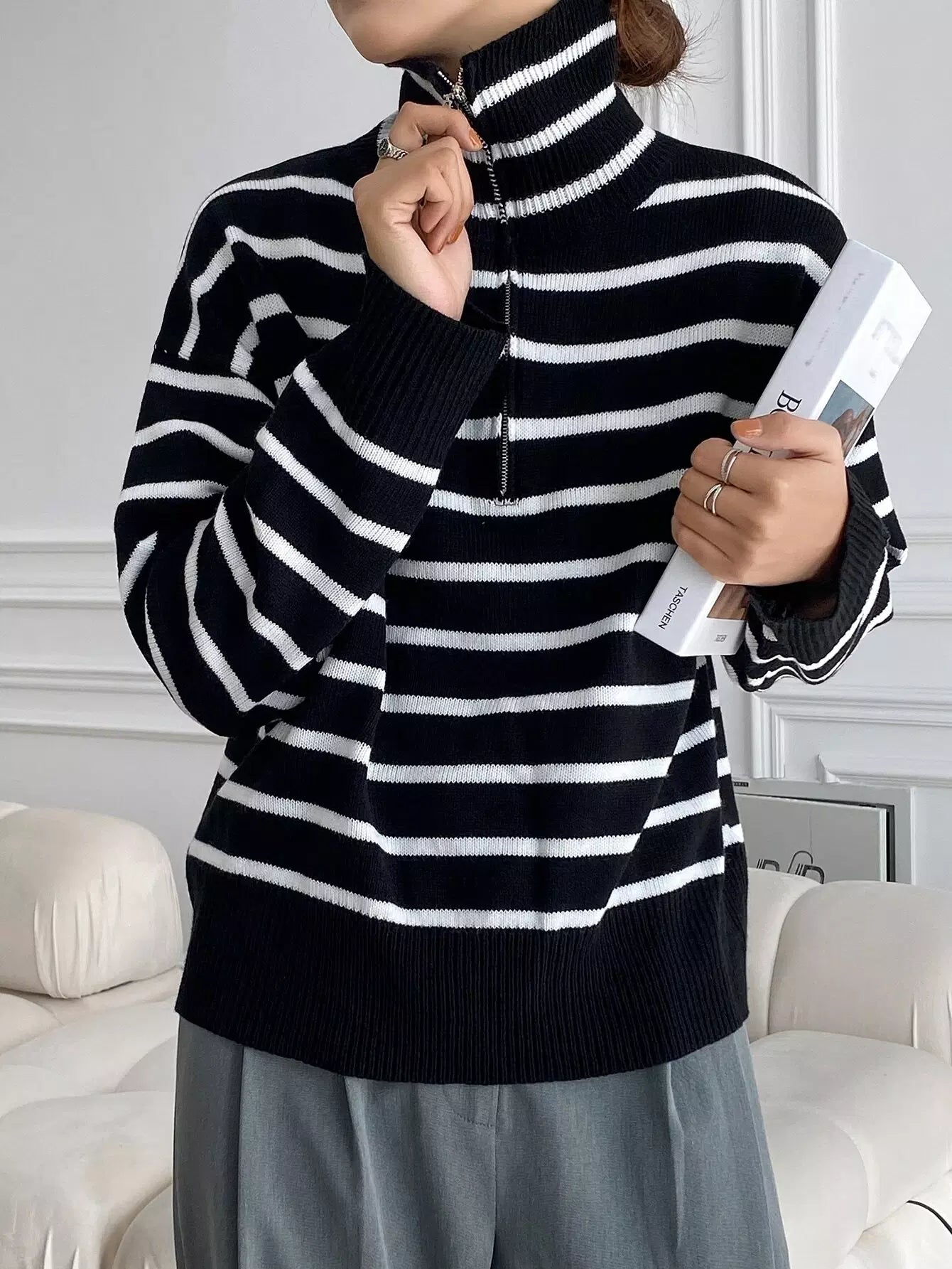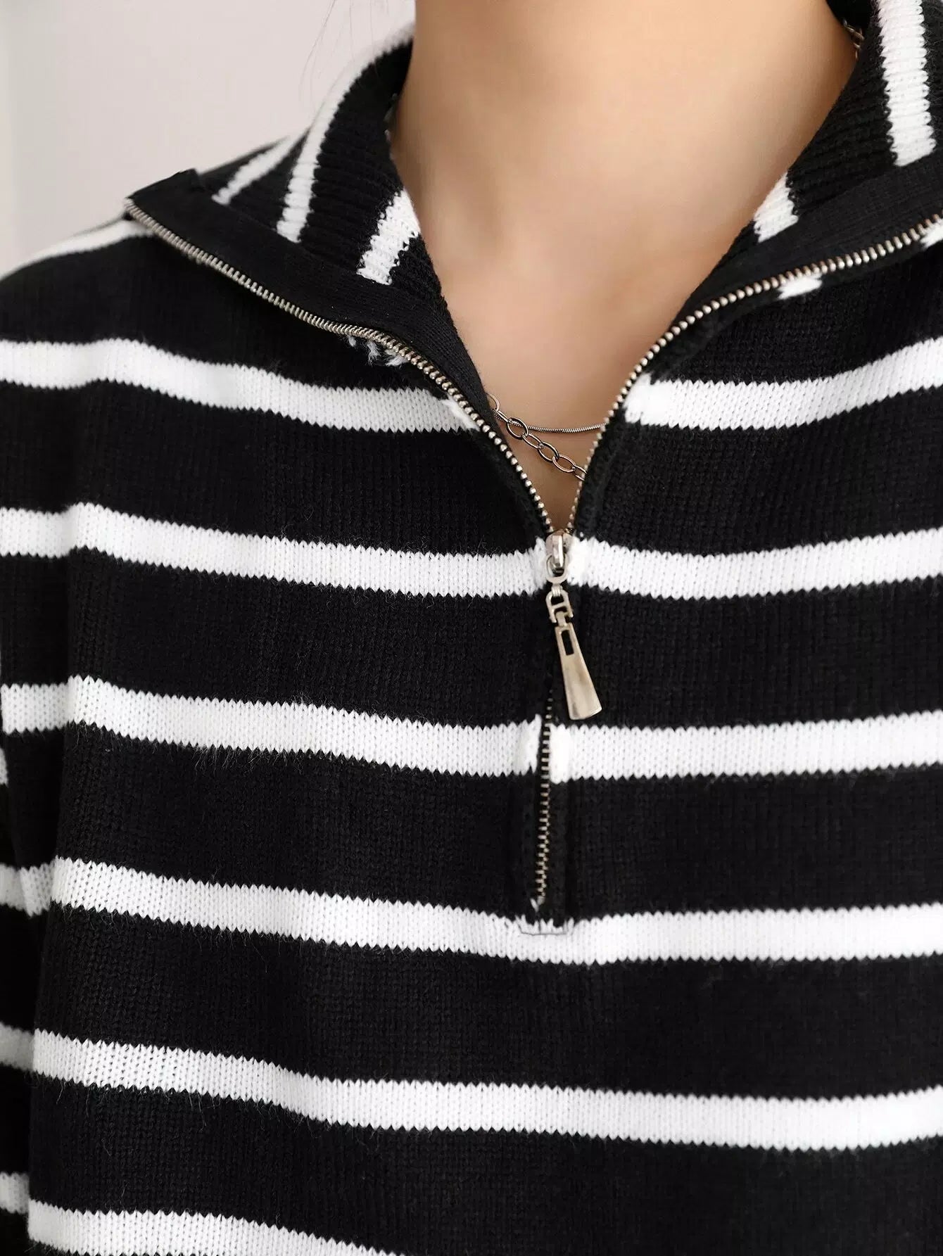 سترة بنقشة مخططة بنصف سحاب منسدلة الكتف بسحاب