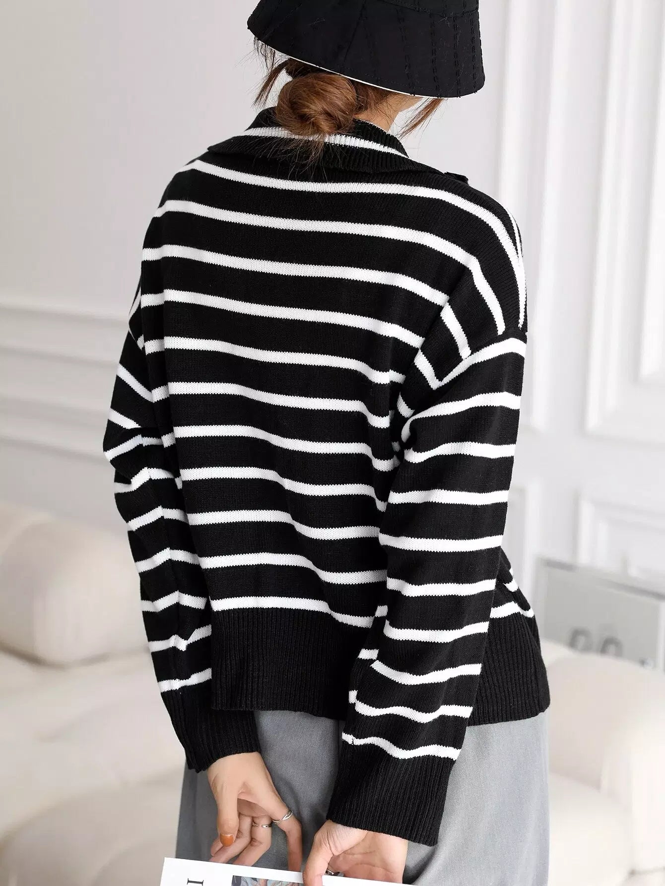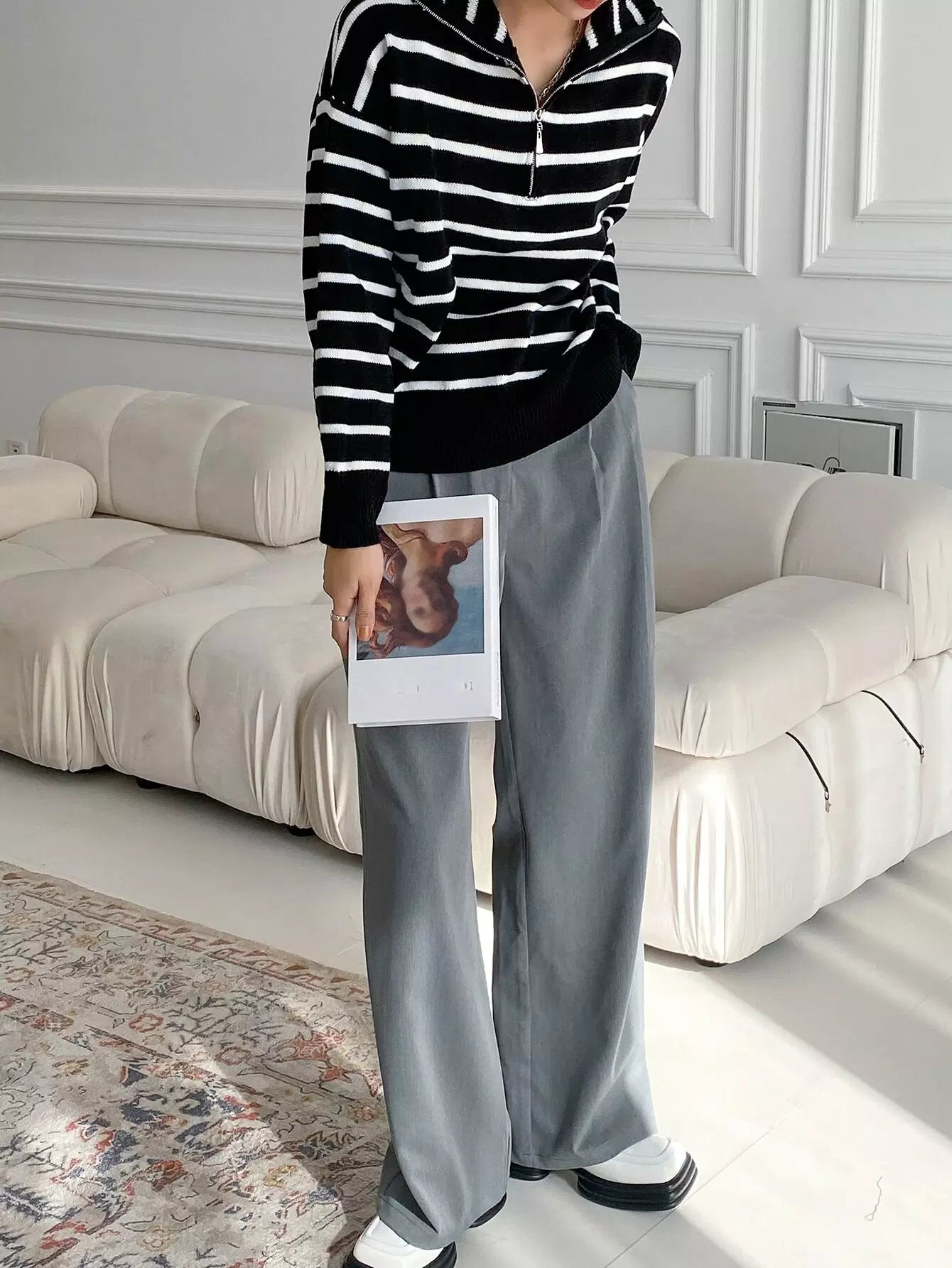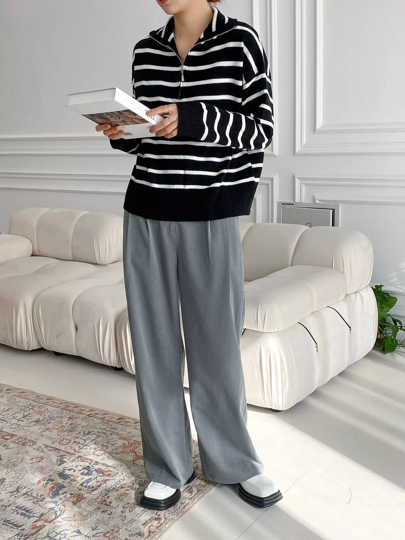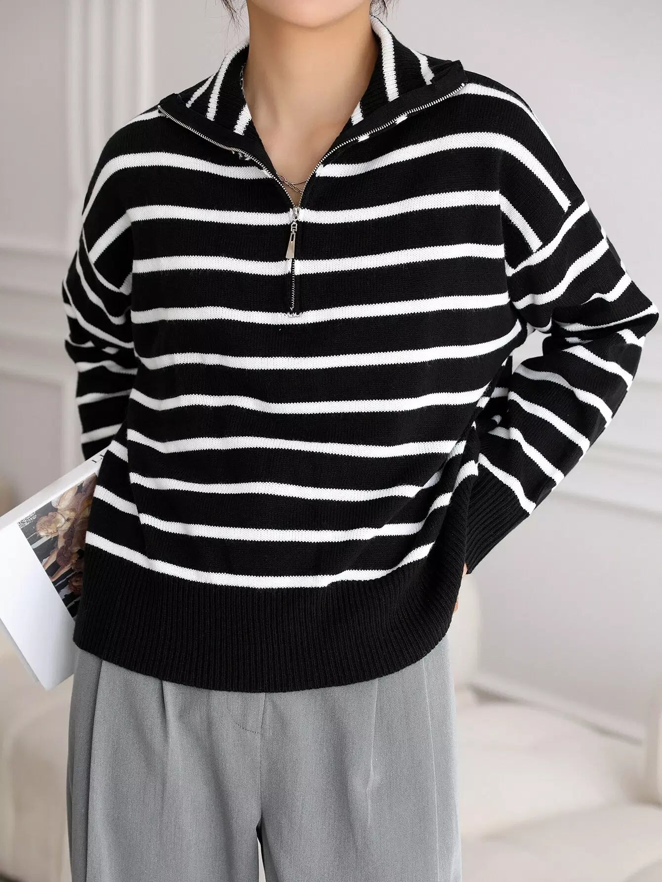 سترة بنقشة مخططة بنصف سحاب منسدلة الكتف بسحاب