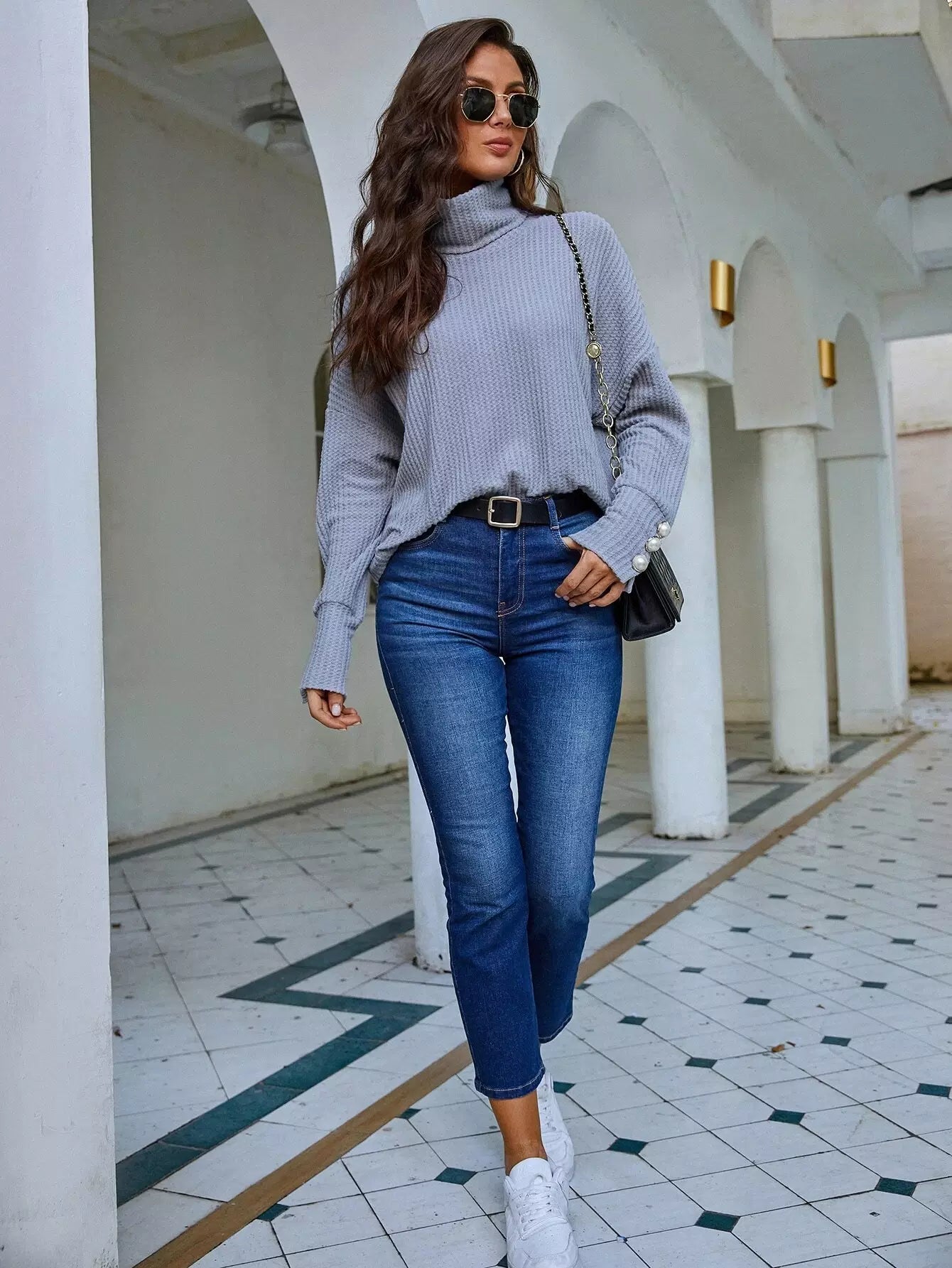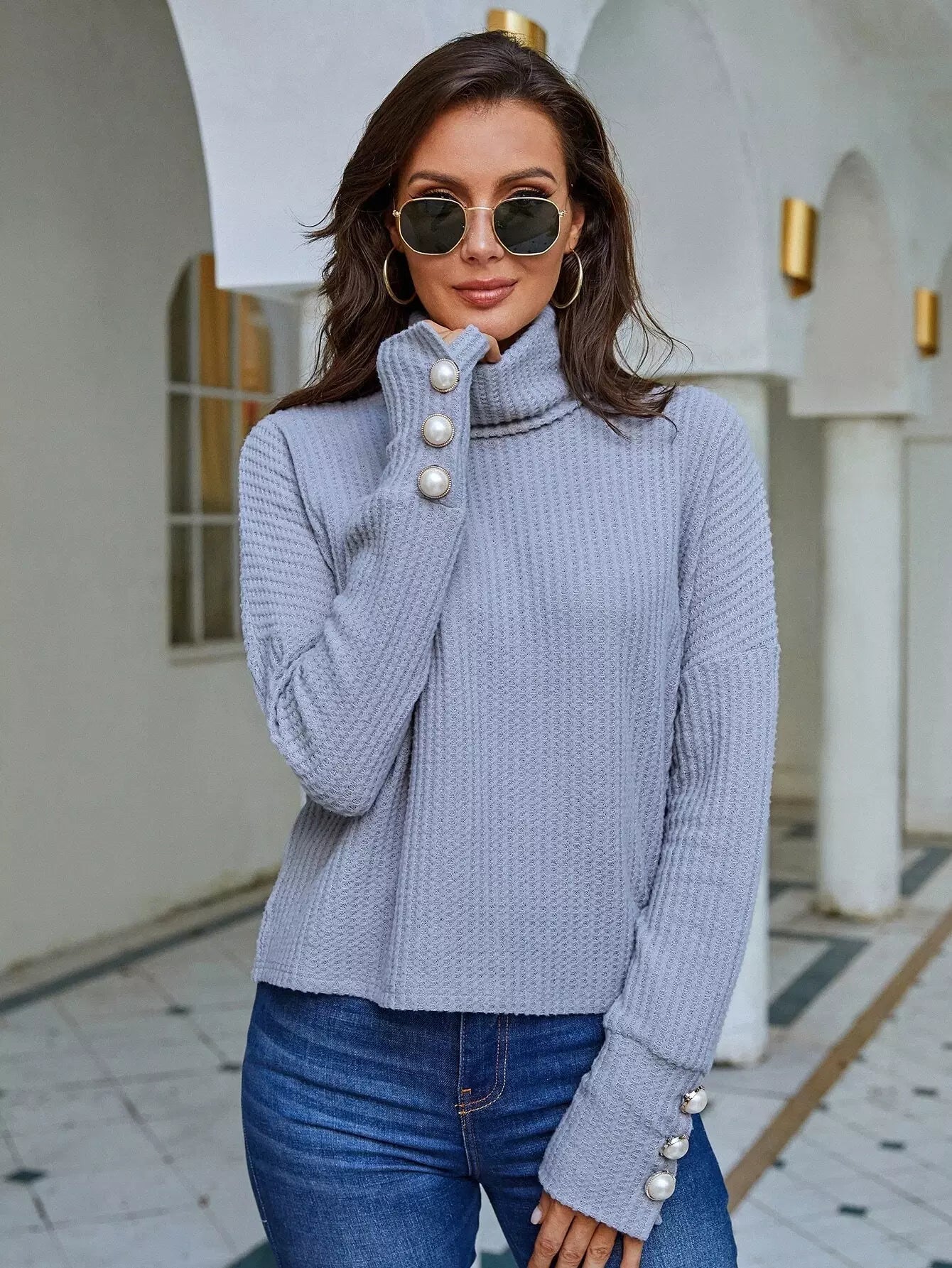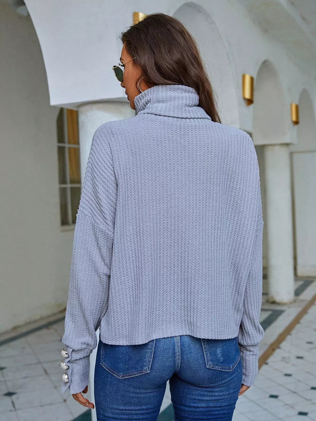 سترة برقبة سلحفاة منسدلة الكتف ذات أزرار منسدلة