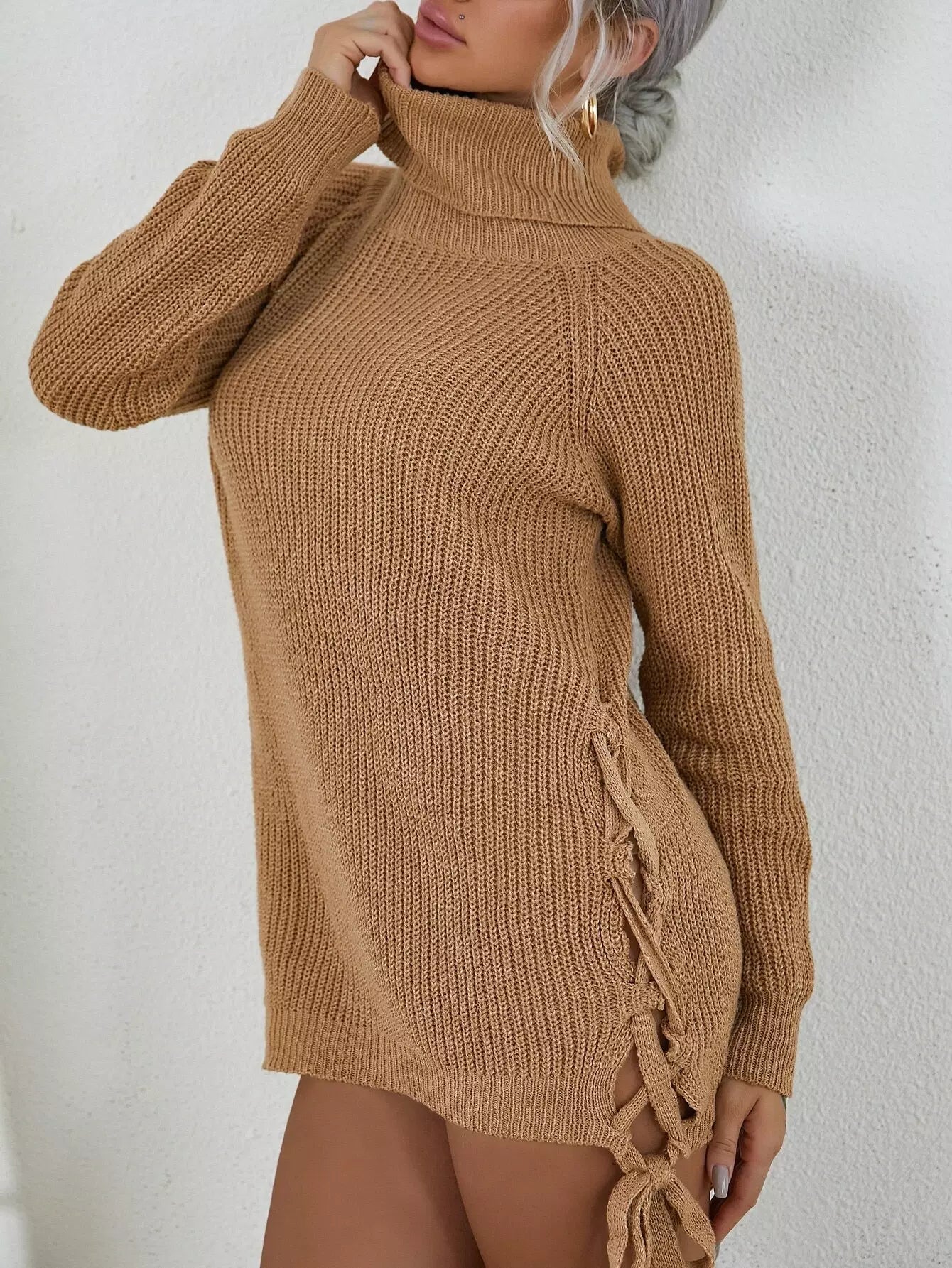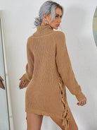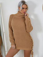 فستان سترة بياقة مدورة وأكمام راجلان وأربطة وعقدة بدون حزام
