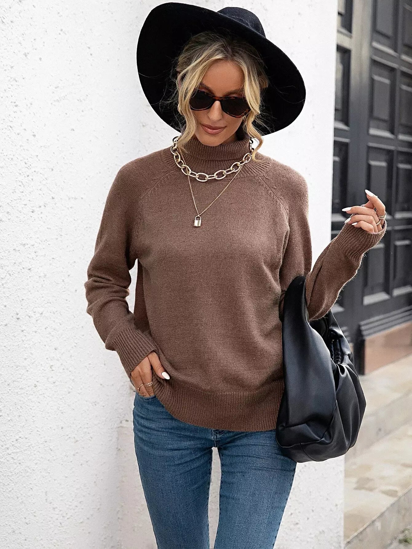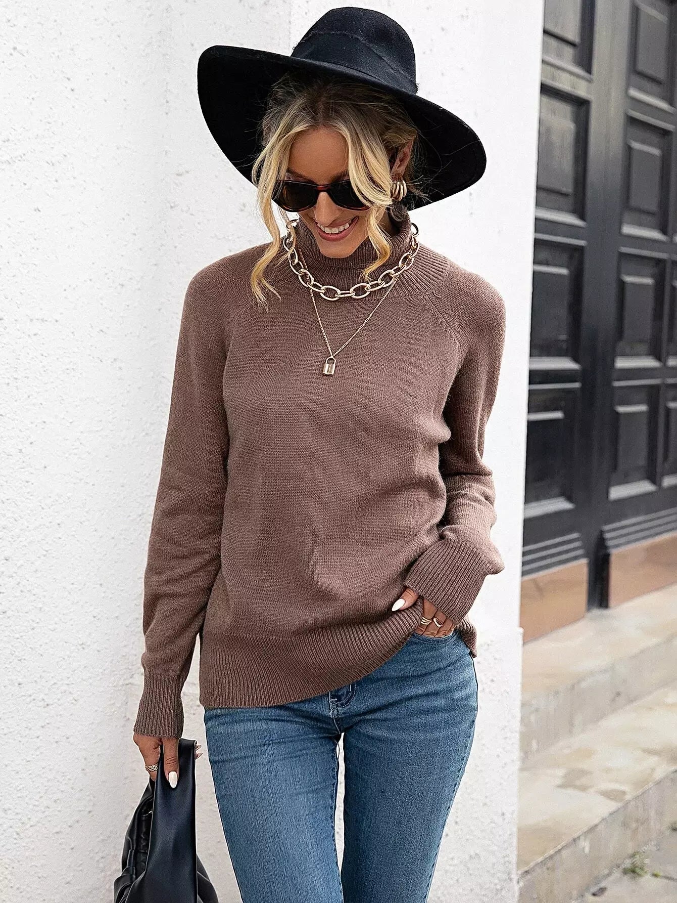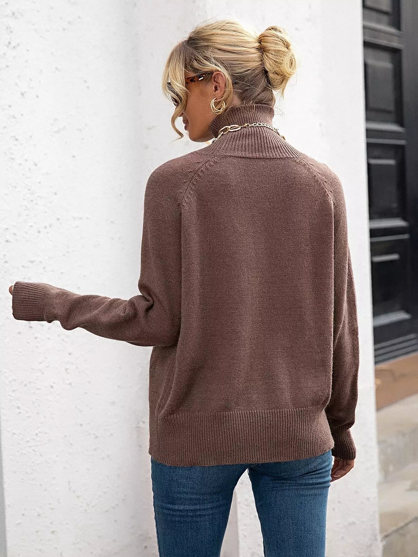 سترة بأكمام راجلان ذات ياقة مدورة
