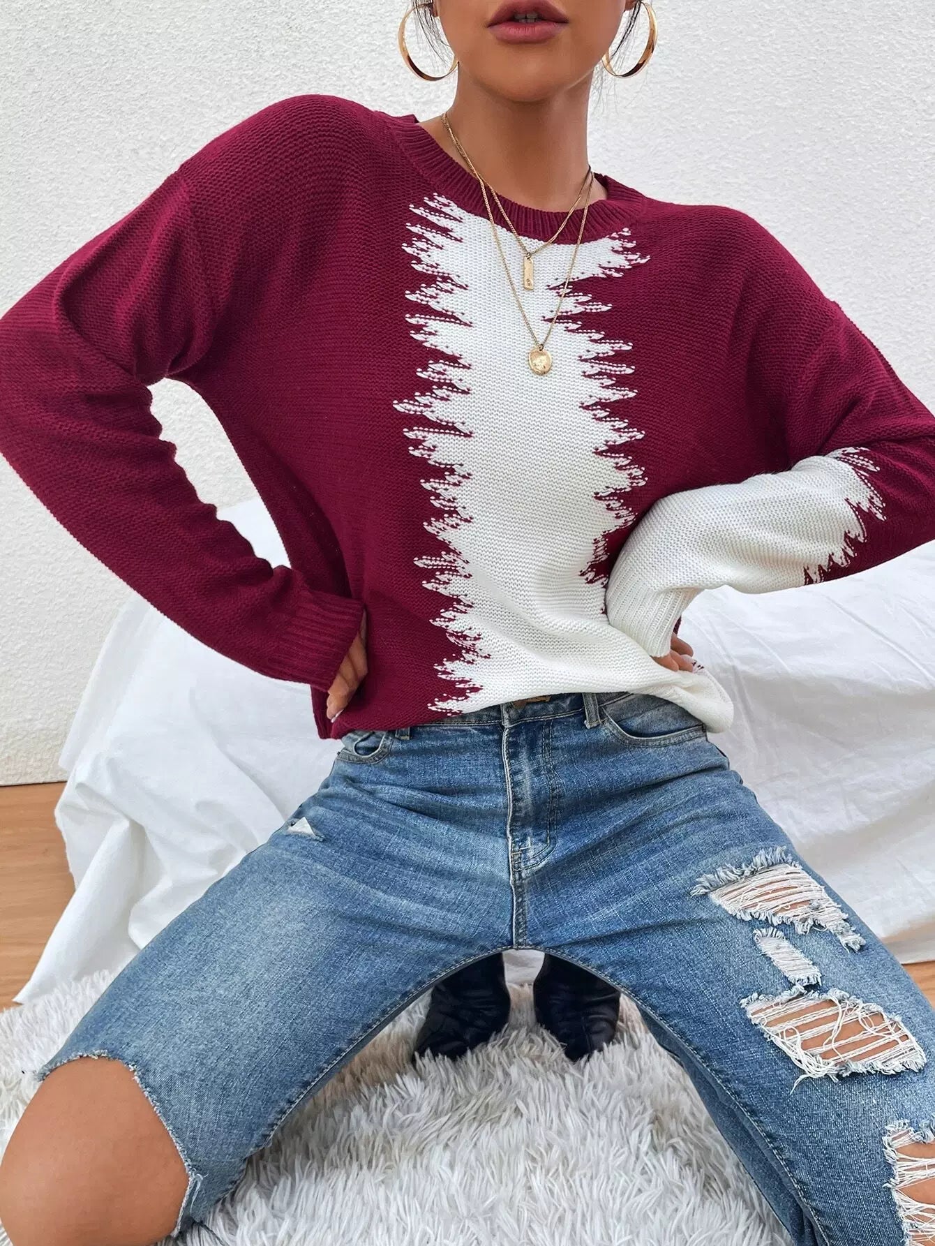 سترة منسدلة الكتفين بلونين