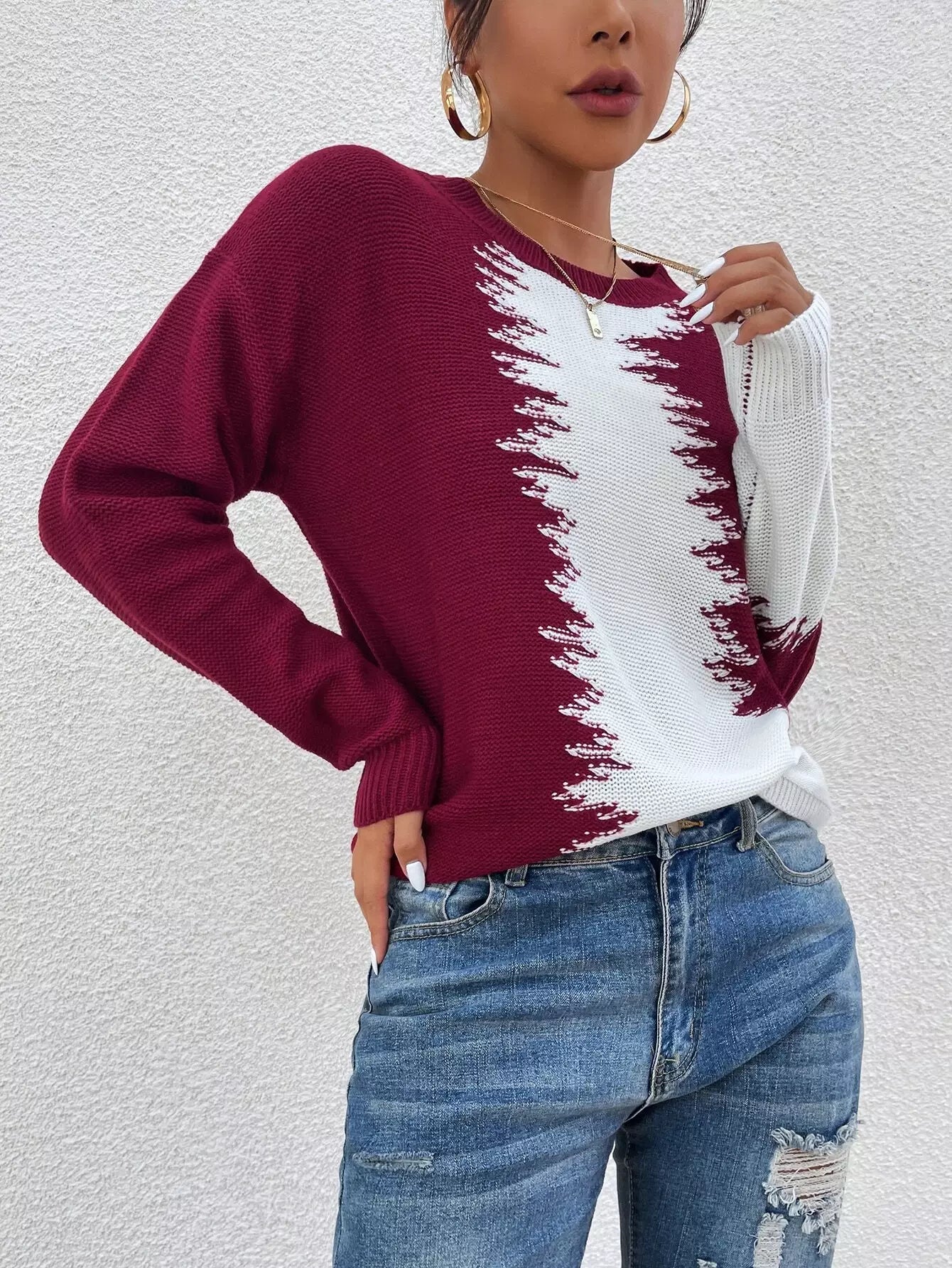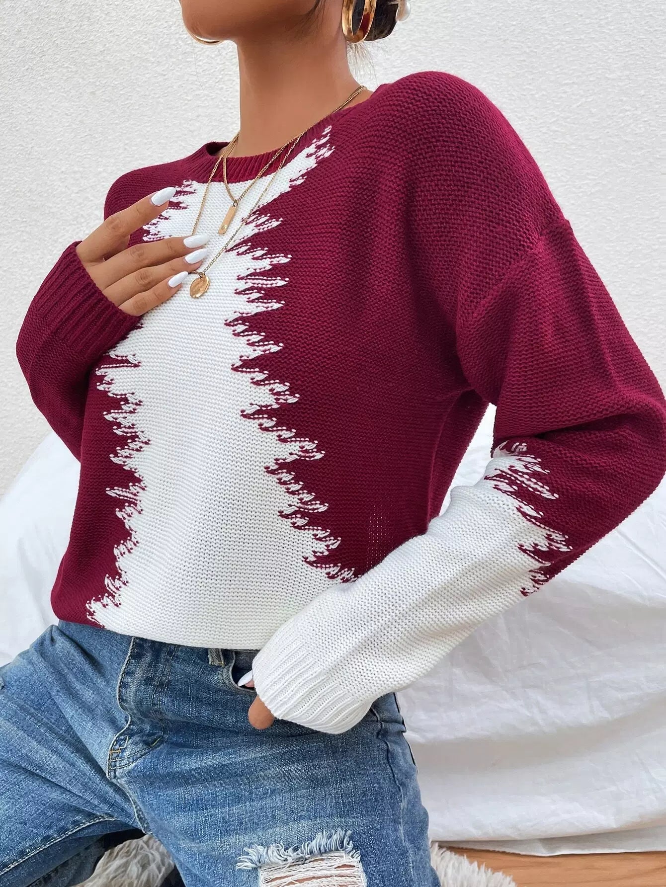 النساء - سترة ذات كتف منسدل بلونين