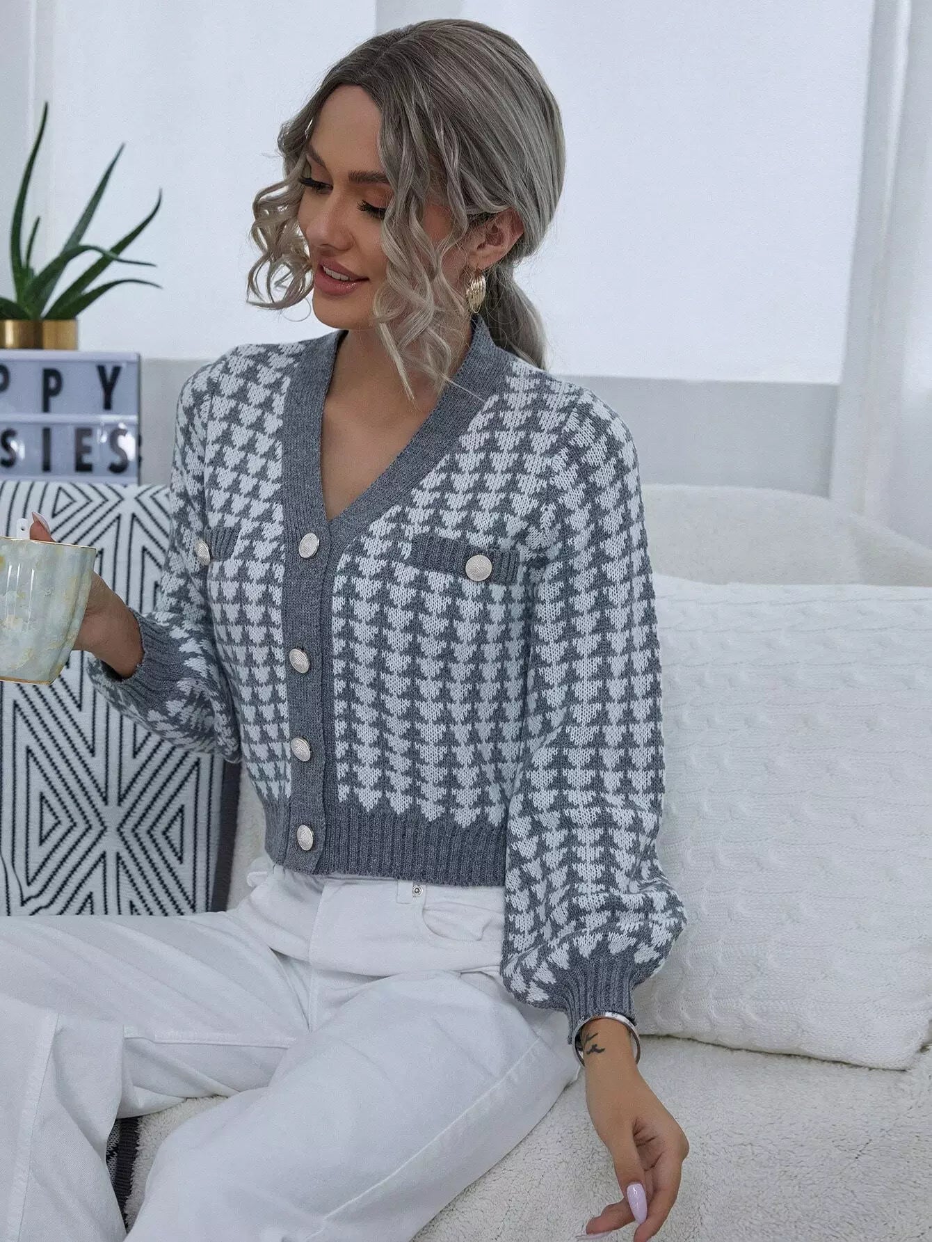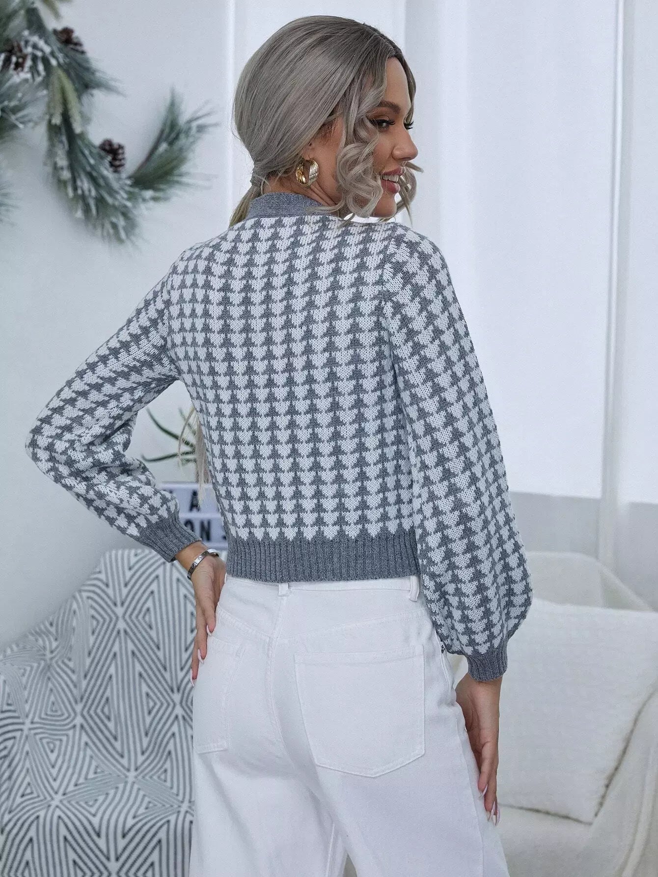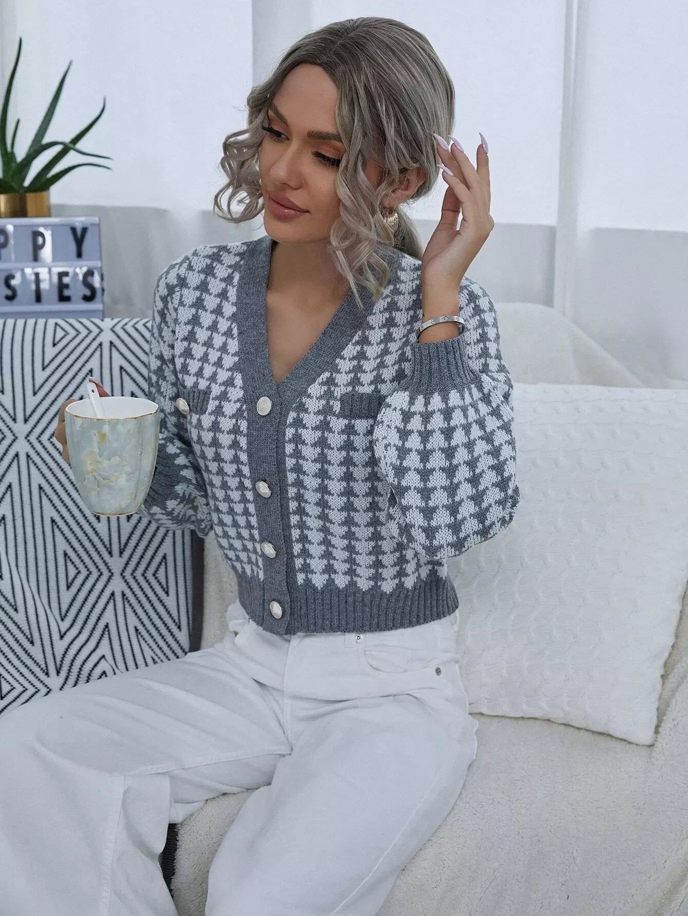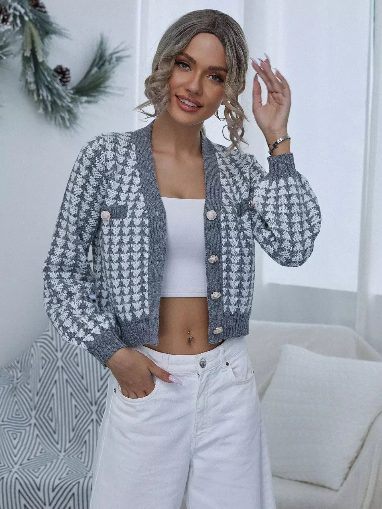 كارديجان قصير بنقشة هندسية وفتحة رقبة على شكل حرف V
