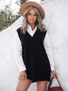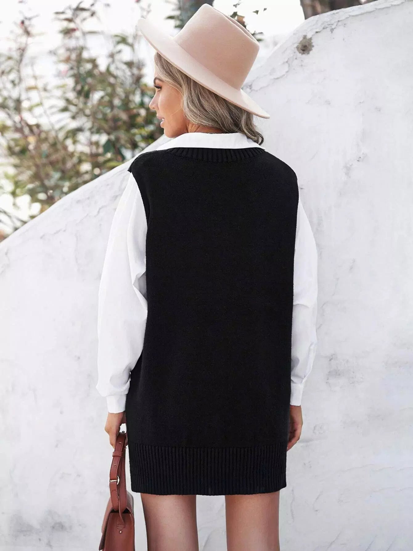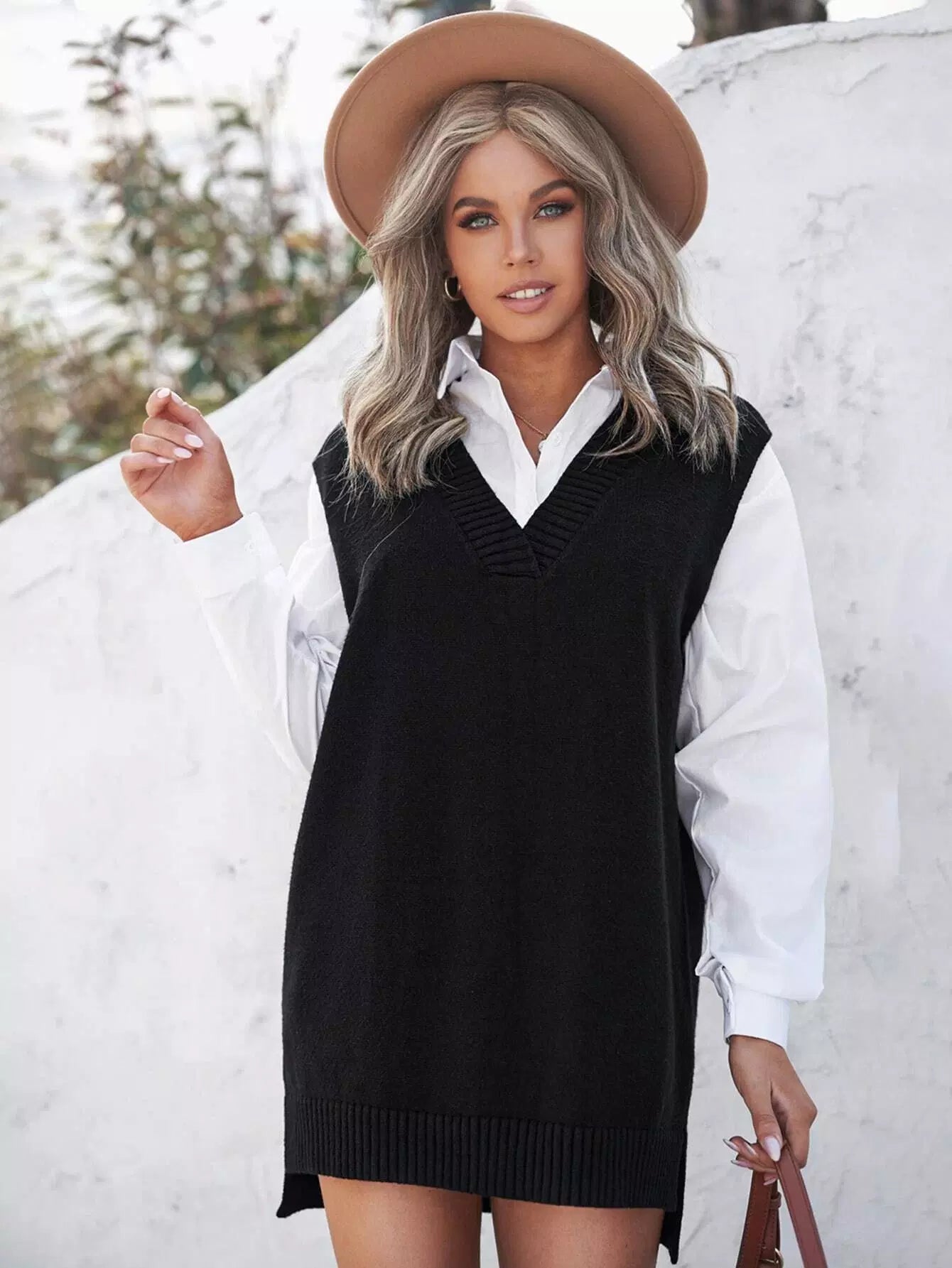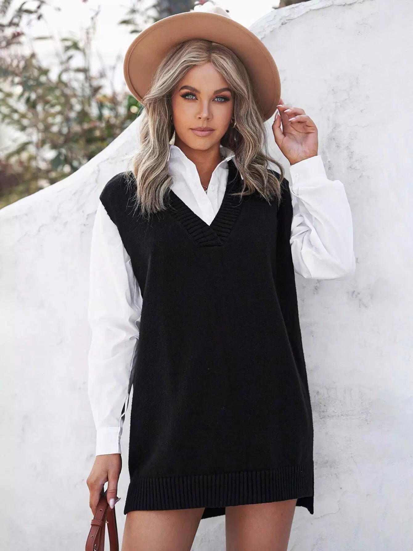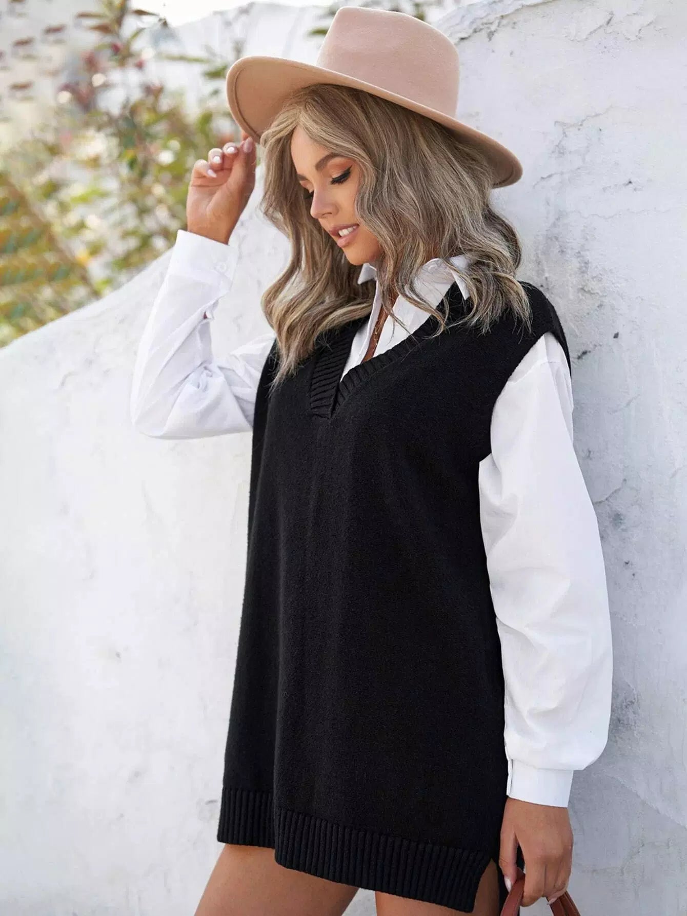 بلوزة محبوكة برقبة على شكل V بدون بلوزة