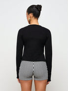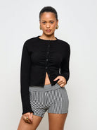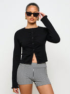 سترة كارديجان AiiRZ بأكمام طويلة ومضلعة وأزرار أمامية مكشكشة وقميص قصير مناسب للمكتب الاحترافي