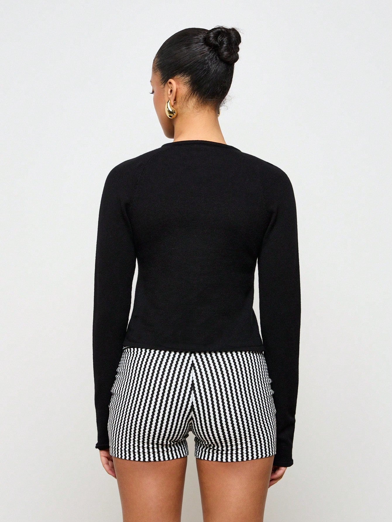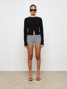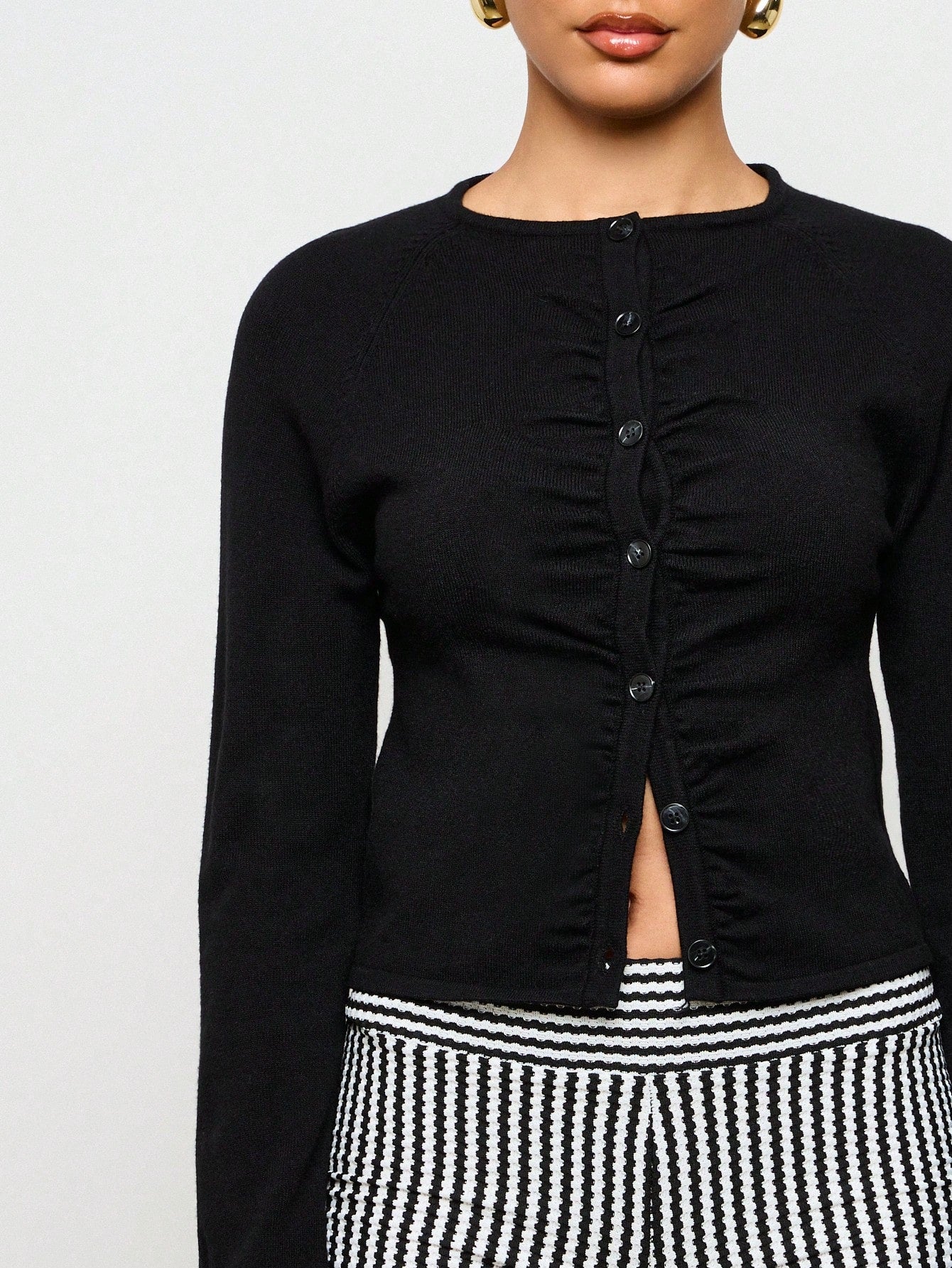 AiiRZ Ruched Front Button-Up Cardigan Sweater Long Sleeve Ribbed Knit Crop Top Professional Office Wear