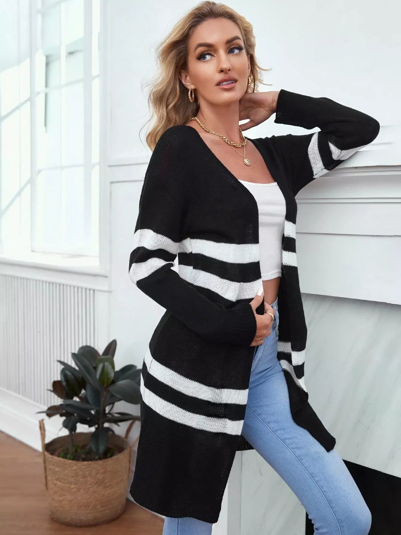 كارديجان مخطط بسترة صوفية بسترات مخططة