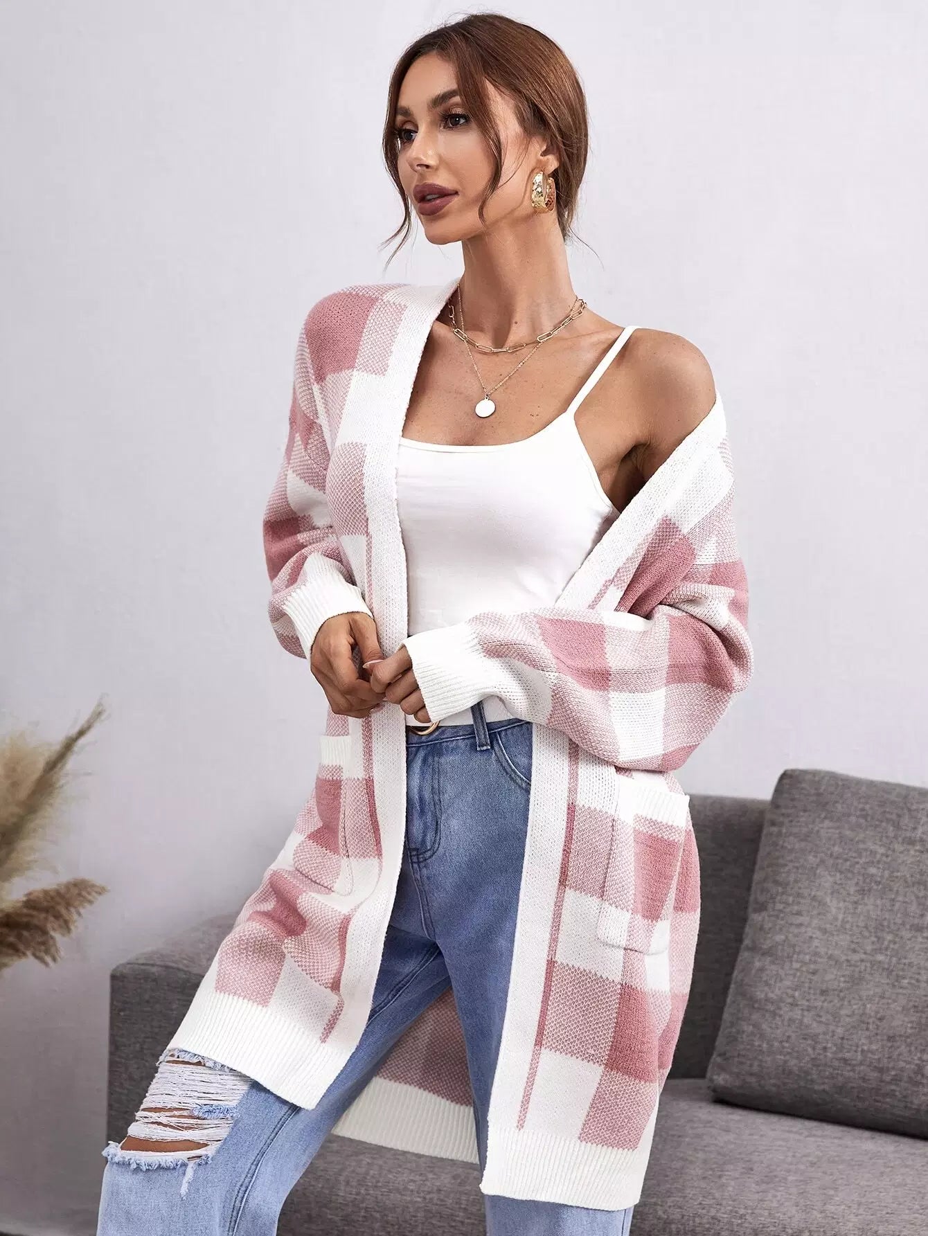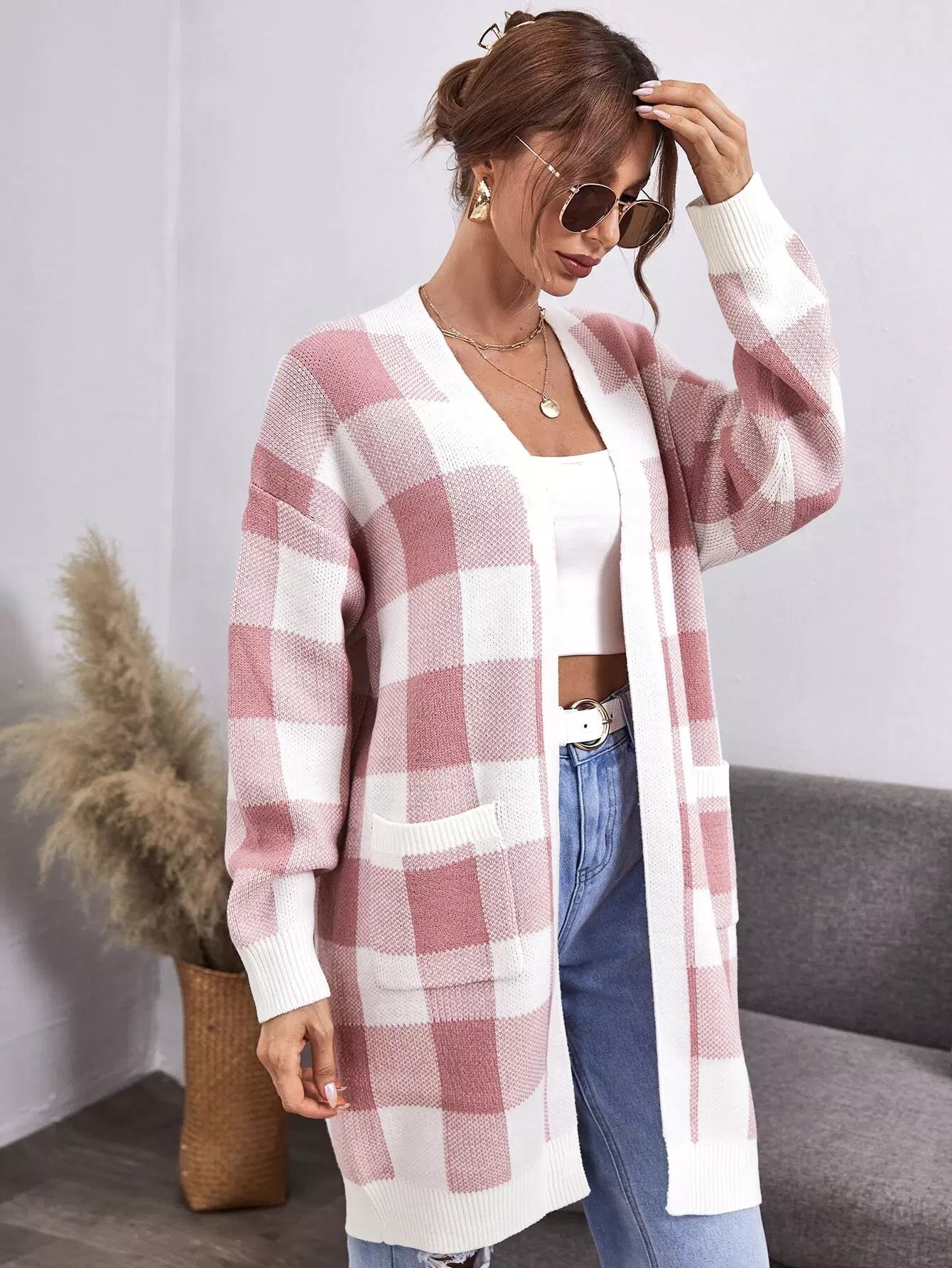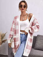 كارديغان منقوش بنقشة بوفالو منسدل الكتف بجيبين