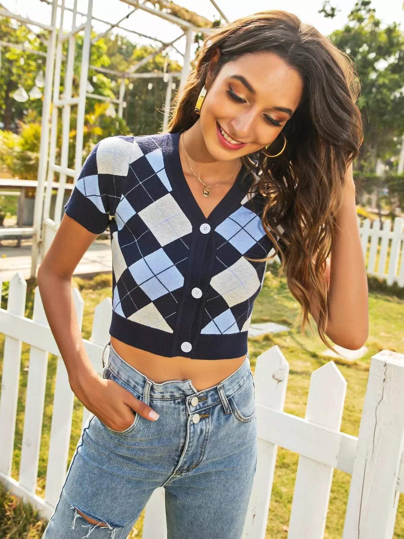 سترة صوفية بنقشة أزرار أمامية بأزرار