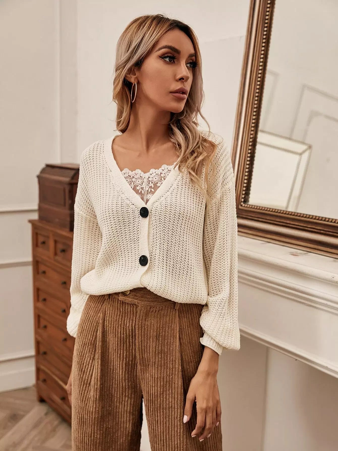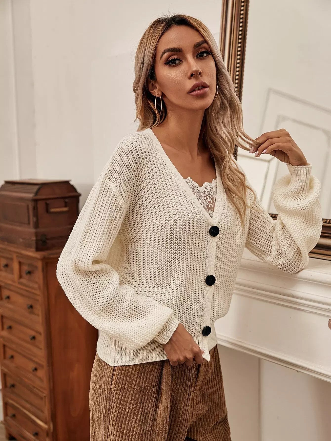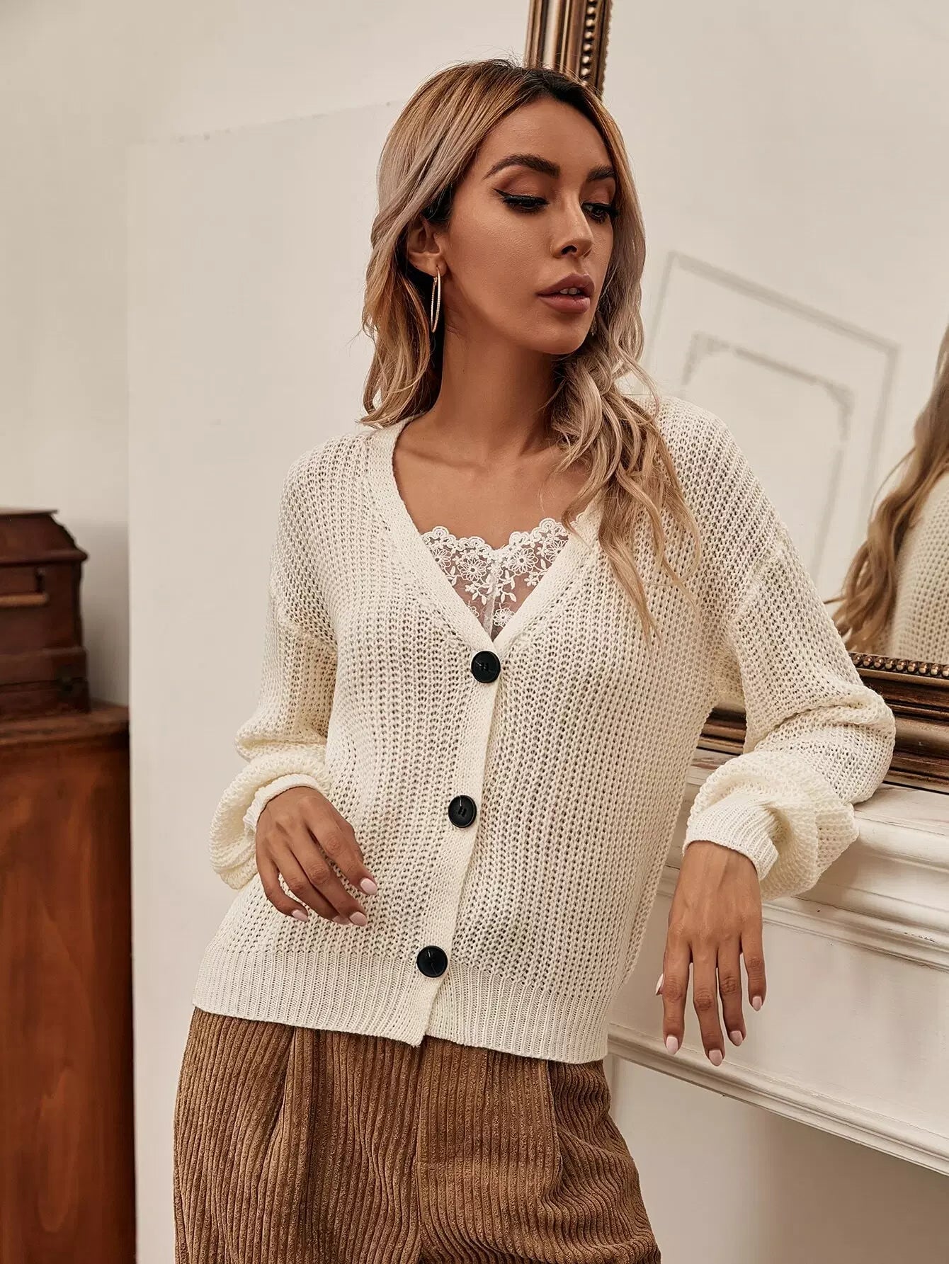 كارديجان بأزرار أمامي منسدل الكتف بأزرار