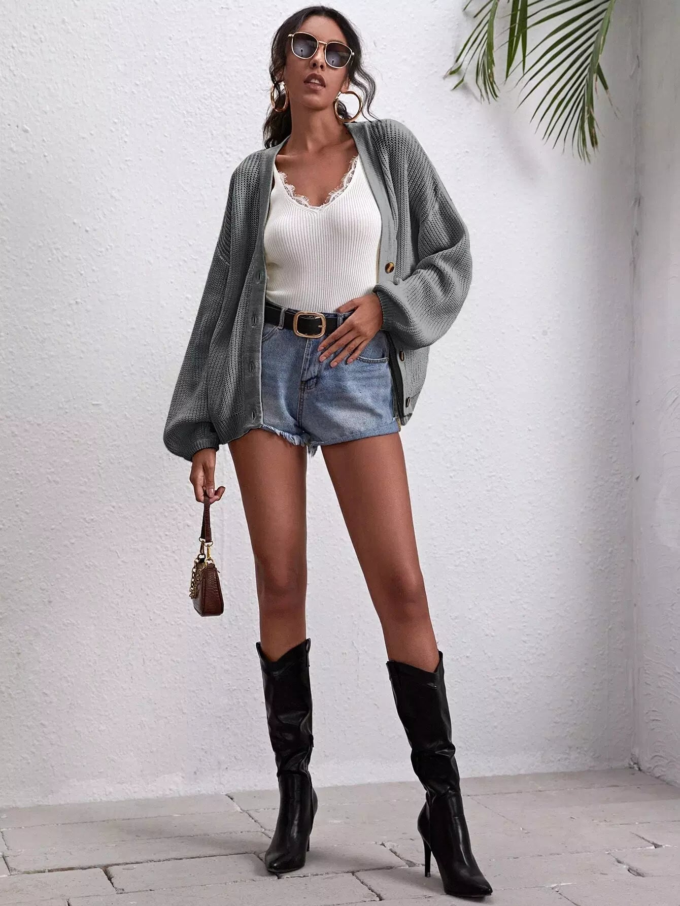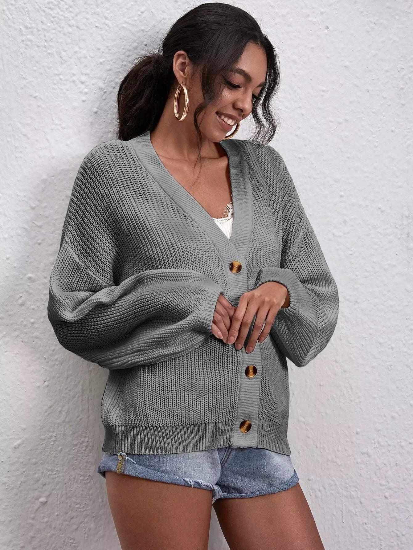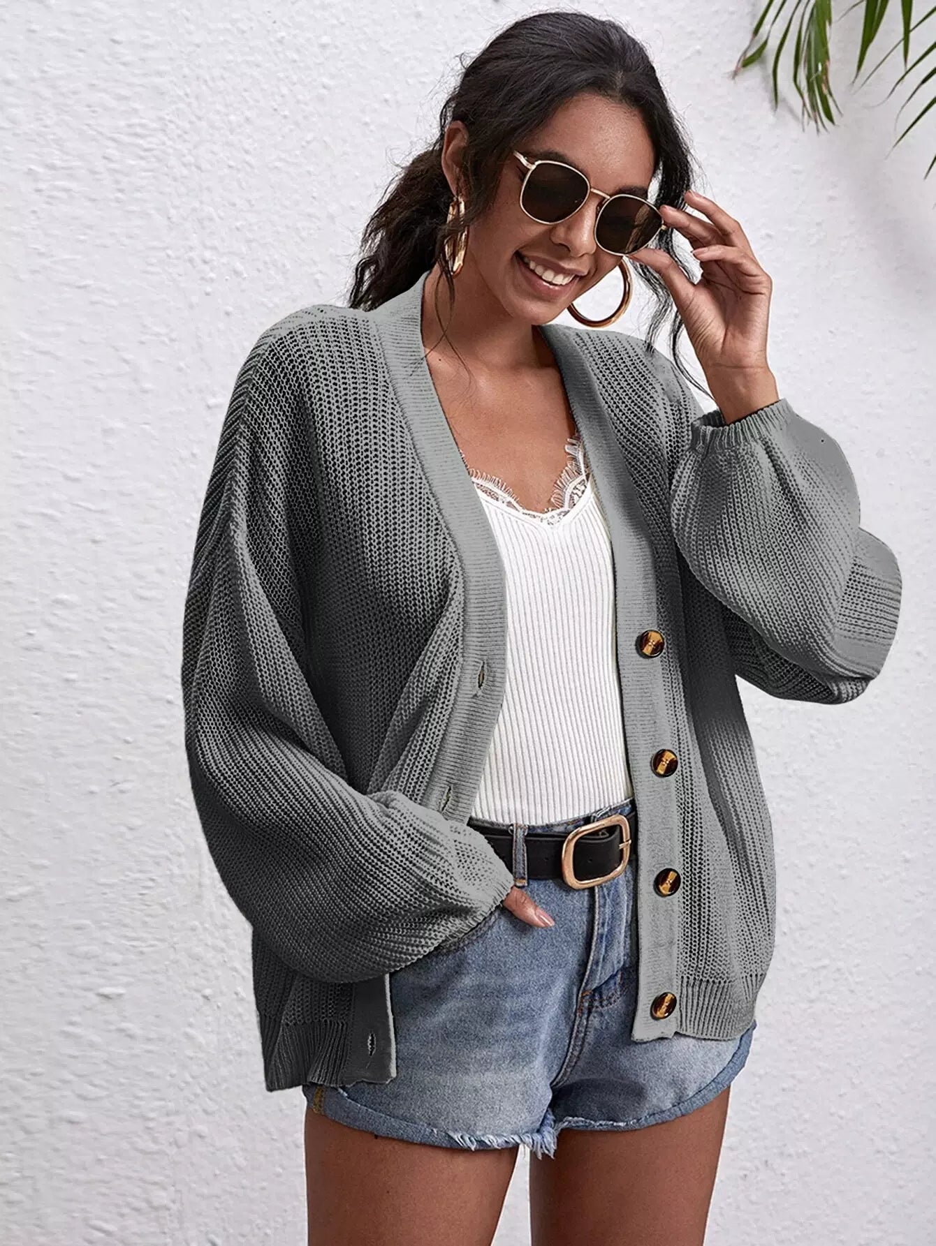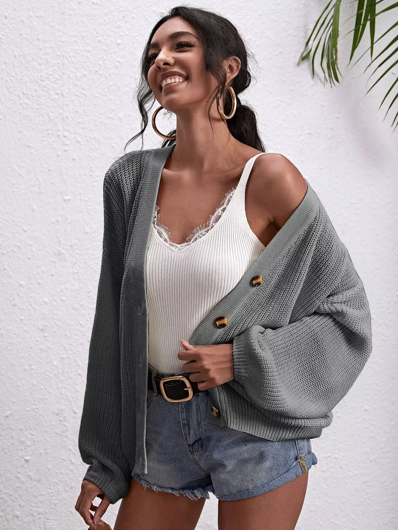 كارديجان بأزرار أمامية منسدلة الكتفين بأزرار منسدلة من الأمام